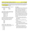 AP Chemistry Holiday Review for Midterm: Due Friday 1/8 This is a TEST GRADE!!! Calculator may be used. CLEARLY SHOW THE METHOD USED AND STEPS INVOLVED IN ARRIVING AT YOUR ANSWERS. It is to your advantage to do this, because you may earn partial credit if you do and you will receive little or no credit if you do not. Attention should be paid to significant figures. Also, cancel out any ions not participating in reaction in chemical equations. Unit 1: Review of the Basics: Mole, Combustion Analysis, Lab Techniques, History of the Atom, Nomenclature, % error, % composition, Stoichiometry 1) The simplest formula for an oxide of nitrogen that is 36.8 percent nitrogen by weight is (A) N2O (D) N2O3 (B) NO (E) N2O5 (C) NO2 2) When a hydrate of Na2CO3 is heated until all the water is removed, it loses 54.3 percent of its mass. The formula of the hydrate is (A) Na2CO3 . 10 H2O (B) Na2CO3 . 7 H2O (C) Na2CO3 . 5 H2O (D) Na2CO3 . 3 H2O (E) Na2CO3 . H2O 3) 1.00 mole of four different compounds containing element X were analyzed and found to contain 36.0 grams, 54.0 grams, 72.0 grams, and 108 grams, respectively. A possible atomic weight of X is a) 13.5 b) 18.0 c) 25.0 d) 72.0 e) 108 4) 4NH3(g) + 5O2(g) 4NO(g) + 6H2O (g) In the reaction above, 3.10g of NH3 reacts with 2.50g of O2. What is the theoretical yield of NO? a) 1.88 g b) 5.46 g c) 8.20 g d) 24.0 g e) 120 g Free Response: The following questions refer to a laboratory activity designed to determine concentration of lead ions in a solution of lead (II) nitrate using gravimetric analysis. In the experiment, a 50.0mL sample of the Pb(NO3)2 solution was added to an excess of potassium iodide solution. The resulting precipitate, PbI2, was collected by vacuum filtration, dried in a drying over, and weighed. Assume that: both solutions were pure; no decomposition took place in the drying oven; the filer did not allow any PbI2 through; all lead is lead (II); an analytical balance was used to weigh the product. a) If 2.310 g of PbI2 were collected, how many grams of lead (II) nitrate must have been in the 50.0mL sample? b) What is the molarity of the lead (II) nitrate solution? c) How many grams of lead (II) ion were in the lead (II) nitrate solution? d) What is the minimum number of moles of potassium iodide that must be present in solution to assure a complete precipitation of all lead from solution? e) If the solid PbI2 on the filer paper was not thoroughly rinsed with distilled water prior to drying, what implications would that have on your answer in question (a)? Defend your response. Unit 2: Reaction Prediction and Acid Base Reactions: Rxn Prediction, AB Stoichiometry, Molarity and Ion Concentrations 1. How many milliliters of 11.6-molar HCl must be diluted to obtain 1.0 liter of 3.0-molar HCl? (A) 3.9 mL 3. A 1.0L sample of an aqueous solution contains 0.10 (B) 35 mL added to the solution in order to precipitate all of (C) 260 mL minimum number of moles of AgNO3 that must be the Cl¯ as AgCl(s) ? (Assume that AgCl is insoluble.) (D) 1,000 mL (A) 0.10 mol (E) 3,900 mL (B) 0.20 mol 2. How many moles of solid Ba(NO3)2 should be added to 300. milliliters of 0.20-molar Fe(NO3)3 to increase the concentration of the NO3¯ ion to 1.0-molar? (Assume that the volume of the solution remains constant.) (A) 0.060 mole (D) 0.30 mole (B) 0.12 mole mol of NaCl and 0.10 mol of CaCl2. What is the (E) 0.40 mole (C) 0.24 mole (C) 0.30 mol (D) 0.40 mol (E) 0.60 mol 4. What is the final concentration of barium ions, [Ba2+], in solution when 100. mL of 0.10 M BaCl2(aq) is mixed with 100. mL of 0.050 M H2SO4(aq)? A) 0.00 M B) 0.012 M C) 0.025 M D) 0.075 M E) 0.10 M Free Response: 1. (a) A 0.1M solution of ammonium chloride is mixed with a 0.1M solution of potassium hydroxide. (i) Balanced equation: (ii) What evidence of a reaction will be observed? Explain. (b) Carbon dioxide is bubbled into water. (i) Balanced equation: (ii) Will the resulting product have a pH < 7, pH > 7, or pH = 7? Explain. (c) A 0.1M solution of potassium iodide is mixed with a 0.1M solution of lead II nitrate. (i) Balanced equation: (ii) What evidence of a reaction will be observed? Explain. (d) drops of liquid dinitrogen trioxide are added to distilled water. (e) solid magnesium carbonate is heated. Unit 3: Redox: Oxidation and Reduction, Predicting, Balancing in an Acid, Balancing in a Base Balance the following equations (atom and charge balance) (1) A concentrated solution of hydrochloric acid is added to solid potassium permanganate. (2) Solutions of tin(II) chloride and iron(III) chloride are mixed. (3) hydrogen peroxide solution is added to acidified potassium iodide solution. (4) a solution containing tin(II) ions is added to an acidified solution of potassium dichromate. Free Response: 1. Answer the following questions about BeC2O4(s) and its hydrate. (a) Calculate the mass percent of carbon in the hydrated form of the solid that has the formula BeC2O4•3H2O. (b) When heated to 220.⁰C, BeC2O4•3H2O(s) dehydrates completely as represented below. BeC2O4•3H2O(s) BeC2O4(s) + 3 H2O(g) If 3.21 g of BeC2O4•3H2O(s) is heated to 220.⁰C calculate (i) the mass of BeC2O4(s) formed (c) A 0.345 g sample of anhydrous BeC2O4, which contains an inert impurity, was dissolved in sufficient water to produce 100. mL of solution. A 20.0 mL portion of the solution was titrated with KMnO 4(aq). The balanced equation for the reaction that occurred is as follows. 16 H+(aq) + 2 MnO4-(aq) + 5 C2O42-(aq) 2 Mn2+(aq) + 10 CO2(g) + 8 H2O(l). The volume of 0.0150 M KMnO4(aq) required to reach the equivalence point was 17.80 mL. (i) Identify the reducing agent in the titration reaction. (ii) For the titration at the equivalence point, calculate the number of moles of each of the following that reacted: MnO4-(aq) and C2O42-(aq) (iii) Calculate the total number of moles of C2O42-(aq) that were present in the 100. mL of prepared solution. (iv) Calculate the mass percent of BeC2O4(s) in the impure 0.345 g sample. U