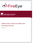 THREAT ANALYTICS PLATFORM (TAP) TAP Scoping Guide- FCAP October 2015 FireEye, Inc., 1440 McCarthy Blvd., Milpitas, CA 95035 | +1 408.321.6300 | +1 877.FIREEYE (347.3393) | info@FireEye.com www.FireEye.com 09/2015 3.0 © 2014 MANDIANT. Proprietary and Confidential. Page 2 1. Table of Contents 2. Executive Summary ............................................................................................................................... 4 3. Survey .................................................................................................................................................... 5 3.1. Contact and Shipping Information ................................................................................................... 5 3.2. FCAP TAP Main Contact/Administrator .......................................................................................... 6 3.3. Timeline ........................................................................................................................................... 6 4. FCAP Partner User Accounts ................................................................................................................ 6 5. Client Network and Physical Infrastructure ............................................................................................ 7 6. 5.1. Internal IPs ...................................................................................................................................... 7 5.2. External (Public) IPs ........................................................................................................................ 7 5.3. OPTIC- Public IPs ........................................................................................................................... 8 Sender:Comm broker/cloud collector .................................................................................................... 8 6.1. Communications Broker .................................................................................................................. 8 6.1.1. Comm Broker Requirements .................................................................................................... 9 6.1.2. Comm Broker Recommendations .......................................................................................... 10 6.2. Cloud Collector Device .................................................................................................................. 11 6.3. Sender Worksheet: cloud collector/comm broker ......................................................................... 12 7. TAP Data Sources ............................................................................................................................... 13 8. Estimated Events per Second (EPS) & Storage.................................................................................. 13 9. Special Cases and Considerations ...................................................................................................... 14 10. Ports, Protocols and Services.............................................................................................................. 14 FireEye, Inc., 1440 McCarthy Blvd., Milpitas, CA 95035 | +1 408.321.6300 | +1 877.FIREEYE (347.3393) | info@FireEye.com www.FireEye.com 09/2015 3.0 © 2014 MANDIANT. Proprietary and Confidential. Page 3 2. EXECUTIVE SUMMARY The Threat Analytics Platform (TAP) allows clients to utilize the vast intelligence gathered by FireEye and Mandiant resources and put context around their event data on Advanced Targeted Attackers. Clients may send all pertinent event data into a Virtual Private Cloud (VPC) that alleviates them of all the management, configuration and maintenance of the infrastructure needed to store, process and archive this data. In addition, TAP provides exceptionally fast response time to event queries allowing for rapid drill-down during the most critical phases of an incident response investigation. The information gathered in the TAP Scoping Guide is required to establish and configure your TAP instance, and a complete Guide must be submitted before any instance will be approved for build. This document can serve as a primary resource for initial conversations about TAP and the TAP startup process. It is intended to facilitate TAP planning discussions and the initial gathering of information. This guide is designed as a foundation for the overall deployment planning process. The other documents that are necessary for a complete installation and deployment are: TAP Deployment Guide – Documents the procedures for installing your TAP instance. TAP User Guide These documents, as well as current versions of the Comm Broker ISO and additional resources, are located in the Securefile share provided by your FireEye Deployment Engineer. If you do not already have access to the Securefile share, please contact your FireEye Deployment Engineer. This document is intended solely for the use of FireEye/Mandiant personnel and the client referenced in this document exclusively. Replication or distribution to other than those individuals listed in this document without the written consent of FireEye/Mandiant is prohibited FireEye, Inc., 1440 McCarthy Blvd., Milpitas, CA 95035 | +1 408.321.6300 | +1 877.FIREEYE (347.3393) | info@FireEye.com www.FireEye.com 09/2015 3.0 © 2014 MANDIANT. Proprietary and Confidential. Page 4 3. SURVEY For FireEye/Mandiant teams to exceed your expectations and conduct the engagement as effectively as possible, we require the following information. If the answer to the question exceeds the space provided, please attach supporting documentation. 3.1. Contact and Shipping Information Please identify a point of contact for our support staff to work with on deployment of the technology. In most organizations this is a person within the IT organization familiar with deployment of enterprise applications and infrastructure. This person needs to be able to coordi