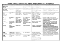 Greater Plains PCORI Consortium Obesity Working Group Quick Reference List