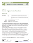 graph. Students extend their knowledge of inverse functions to trigonometric functions, restricting their