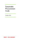 Sustainable Procurement Code October 2013 DRAFT – FOR COMMENT October 2013 Contents E x e c u t i v e S u m m a r y ..................................................................................................................... 1 T h e F l e x i b l e F r a m e w o r k ......................................................................................................... 2 W h y w e n e e d a s u s t a i n a b l e p r o c u r e m e n t c o d e ....................................................... 2 W h o ’ s R e s p o n s i b l e ? ................................................................................................................... 4 D e m a n d R e v i e w a n d W h o l e L i f e C o s t i n g .................................................................... 5 S p e c i f i c a t i o n ................................................................................................................................... 6 P r e - Q u a l i f i c a t i o n Q u e s t i o n n a i r e ( P Q Q ) ...................................................................... 7 I n v i t a t i o n t o T e n d e r ( I T T ) ................................................................................................... 7 C o n t r a c t M a n a g e m e n t .............................................................................................................. 8 T h e L o c a l i s m A c t ......................................................................................................................... 9 S u s t a i n a b l e P r o c u r e m e n t R u l e s ......................................................................................... 9 P r o v i d i n g A d v i c e a n d S u p p o r t .......................................................................................... 12 U s e f u l D o c u m e n t a t i o n a n d W e b s i t e s ........................................................................... 13 A p p e n d i c e s ..................................................................................................................................... 14 October 2013 Executive Summary Sustainable procurement integrates the concept and values of sustainable development into procurement activities. As well as the standard economic considerations; social and environmental impacts are accounted for, allowing procurement and commissioning to address areas such as climate change, healthy living, job creation and stronger communities. Subsequently, authority costs are reduced over the long term, value for money will be achieved, the local economy will be strengthened, and objectives such as the national statutory carbon reduction target (Climate Change Act 2008) are met and ‘Leadership’ in all aspects of the Government’s ‘Flexible Framework for Sustainable Procurement’ can be achieved. The Public Services (Social Value) act 2012 requires local authorities to consider social, economic and environmental issues within their procurement activities. . The ‘Sustainable Procurement Code’ is intended as a guidance document for those staff engaged in procurement activities; giving examples of how the ‘Sustainable Procurement Strategy’ can be actioned in practical terms. Adherence to the ‘Sustainable Procurement Strategy' will ensure that the requirements of this The Public Services (Social Value) act 2012 are met The ‘Sustainable Procurement Strategy” will align with the new ‘Commissioning and Procurement Strategy’ (due for implementation autumn 2012) to be employed by B&NES to incorporate sustainability considerations at appropriate points in the commissioning and procurement cycle. The ‘Sustainable Procurement Strategy” will be actioned, initially, through training and capacity development, which will better enable staff to introduce sustainable thinking into procurement activities and generate support from other procurement and non-procurement professionals within the authority. The strategy should be reviewed periodically to evaluate how effectively sustainable procurement practice has percolated throughout the organisation, whether ‘flexible framework’ ambitions have been met and how to further implement the ‘Sustainable Procurement strategy’ into authority procurement practice. This document is intended for staff members that are engaged in procurement activities across B&NES, in particular; procurement officers and project support officers. It provides guidance and examples, enabling staff members to integrate sustainability thinking into public sector procurement. 1 October 2013 The Flexible Framework The Flexible Framework is a methodology produced by the Government’s Sustainable Procurement Task Force intended to help organisations understand and take the steps needed at an organisational and process level to improve procurement practice and to make sustainable procurement happen. The action plan that sits in-line with the ‘Sustainable Procurement Strategy’ is based on the Flexible Framework and provides a step-by-step approach to addressing various parts of the authority’s procurement activities. In order to achieve a wholly sustainable procurement process, the five key process/behavioural change programmes of the ‘Flexible Framework’ need to be effectively advanced. These are: People, Policy, Strategy & Communications, Procurement Process, Engaging Suppliers and Measurement & Results. It is the ambition of the authority to become a ‘Leader’ in all five process/behavioural change categories. Ambition Lead Enhance Practice Embed Foundation Time Why we need a sustainable procurement code There are a range of social and environmental issues that need to be addressed in order to achieve sustainability, one of the key issues being climate change. For most issues identified, solutions already exist and many of these are relevant to buying goods and the contracting of services and works at local