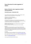 Future directions for native vegetation in Victoria Review of Victoria’s native vegetation permitted clearing regulations Consultation paper, 14 September 2012 Future directions for native vegetation in Victoria – Review of Victoria’s native vegetation permitted clearing regulations Consultation paper Published by the Victorian Government Department of Sustainability and Environment Melbourne, September 2012. © The State of Victoria Department of Sustainability and Environment 2012 This publication is copyright. No part may be reproduced by any process except in accordance with the provisions of the Copyright Act 1968. Authorised by the Victorian Government, 8 Nicholson Street, East Melbourne. ISBN 978-1-74287-616-0 (online) For more information contact the DSE Customer Service Centre 136 186 Disclaimer This publication may be of assistance to you but the State of Victoria and its employees do not guarantee that the publication is without flaw of any kind or is wholly appropriate for your particular purposes and therefore disclaims all liability for any error, loss or other consequence which may arise from you relying on any information in this publication. Accessibility If you would like to receive this publication in an accessible format, such as large print or audio, please telephone 136 186, or email customer.service@dse.vic.gov.au Deaf, hearing impaired or speech impaired? Call us via the National Relay Service on 133 677 or visit www.relayservice.com.au Cover image: DSE, Black Swamp, northeast Victoria 1 Table of contents 1. Minister’s foreward ............................................................................................... 3 2. Purpose of this consultation paper........................................................................ 4 3. Native vegetation and the role for government.................................................... 6 3.1.Benefits of native vegetation ........................................................................... 6 3.2.The role for government .................................................................................. 7 4. Victoria’s native vegetation ................................................................................... 8 4.1.Status of Victoria’s native vegetation .............................................................. 8 4.2.Challenges facing Victoria’s native vegetation ................................................ 9 5. Victoria’s native vegetation policy framework .................................................... 11 5.1.Objectives for native vegetation management ............................................. 11 5.2.Government activities to manage native vegetation .................................... 12 5.3.Performance of the Victoria’s Native Vegetation Management - A Framework for Action .......................................................................................... 14 5.4.Native vegetation permitted clearing regulations ........................................ 16 6. Review of the permitted clearing regulations ..................................................... 19 6.1.Background to the review of the permitted clearing regulations ................. 19 6.2.Principles guiding the review of the permitted clearing regulations ............ 19 6.3.Issues identified with the permitted clearing regulations............................. 19 7. Reform directions for permitted clearing regulations ...........Error! Bookmark not defined. 7.1.Reforms aim to build on the current system .... Error! Bookmark not defined. 7.2.Summary of proposed reforms......................... Error! Bookmark not defined. 7.3.Priority reforms ................................................. Error! Bookmark not defined. 7.4.Supporting reforms ........................................... Error! Bookmark not defined. Appendix 1 – Previous reviews of Victoria’s native vegetation policy Error! Bookmark not defined. Glossary ........................................................................... Error! Bookmark not defined. 2 1. Minister’s foreword Native vegetation is important for Victoria’s biodiversity. It provides habitat for plants and animals and a range of ecosystem services essential for human wellbeing. Managing native vegetation effectively and sustainably is important. Regulations dating back to 1989 have worked to prevent broad scale clearing of native vegetation in Victoria, and have limited the impact of land use change on biodiversity. There has been a succession of reviews and reports into the native vegetation arrangements during the past decade, which have highlighted a range of concerns and areas for improvement. It is timely that the government undertakes a comprehensive examination on how we can improve the system in order to identify opportunities for better and more targeted environmental outcomes, with reduced regulatory burden and lower costs for landholders and the community. The review examines the outcomes of earlier investigations. For example, a 2009 Victorian Competition and Efficiency Commission report, A Sustainable Future for Victoria: Getting Environmental Regulation Right, sought greater clarity on the use of the 'no net loss' principle in the assessment process. We want to measure whether such recommendations were effectively implemented and seek community input to drive further improvements. We are determined to improve the government’s performance as an environmental regulator, while enhancing the integrity of the permitted clearing system. This will mean less red tape, more transparent decision making and increased certainty for landholders. Most importantly, it will mean stronger environmental outcomes. We are now seeking your feedback on ways to streamline and improve native vegetation arrangements to provide greater certainty and clarity. To assist in providing feedback, this consultation paper sets out proposed future directions for native vegetation