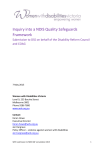 Inquiry into a NDIS Quality Safeguards Framework Submission to DSS on behalf of the Disability Reform Council and COAG 7 May 2015 Women with Disabilities Victoria Level 9, 255 Bourke Street Melbourne 3001 Phone 9286 7800 www.wdv.org.au Contact Keran Howe Executive Director Keran.howe@wdv.org.au Jen Hargrave Policy Officer – violence against women with disabilities Jen.hargrave@wdv.org.au WDV submission to NDIS QSF consultation 2015 1 Table of contents About Women with Disabilities Victoria Introduction List of recommendations 1. Opening Remarks Principles Language 2. Developmental Factors Gendered policy, protocols and codes of practice Include women with disabilities in planning, policy and data Resources for women Peer support Community Participation Employment 3. Preventative Factors Human Rights framework Addressing power imbalances Provider information for participants - Information about services for women Background checks Service review system Independent advocacy and self advocacy Systemic advocacy Service level safeguards - core competencies and workforce development Safeguards for participants managing their own plan - provider registration Family can be a positive or a negative support 4. Corrective Factors Governance Legislation Exclusion list Oversight mechanisms Police Trauma Informed Care and cross sector approaches to responding to violence Data References Appendices Appendix G&D – WDV’s Gender and Disability Workforce Development Program Appendix ILC – WDV’s submission to the ILC consultation WDV violence position paper WDV Fact Sheet 1 – WDV WDV Fact Sheet 2 – Women with disabilities WDV Fact Sheet 3 – Violence WDV Fact Sheet 4 – Health 3 4 5 9 9 9 11 11 12 13 13 14 15 16 16 16 17 17 18 19 19 20 22 23 25 25 25 25 26 28 28 30 32 Women with Disabilities Victoria WDV submission to NDIS QSF consultation 2015 2 Women with Disabilities Victoria is an organisation run by women with disabilities for women with disabilities. Our members, board and staff live across the state and have a range of disabilities, lifestyles and ages. We are united in working towards our vision of a world where all women are respected and can fully experience life. Our gender perspective allows us to focus on areas of particular inequity to women with disabilities; access to women’s health services, gendered NDIS services, and safety from gender-based violence (see Appendix Fact Sheet 2). We undertake research, consultation and systemic advocacy. We provide professional education, representation, information, and leadership programs for women with disabilities. We have dedicated particular attention to the issue of men’s violence against women with disabilities, due to its gravity and prevalence in our lives. Since 2008 we have had a Policy Officer, funded by the Victorian Government, to focus on violence against women with disabilities. This has been a valuable resource for the community sector (for the provision of information and advice) and for the Government (for consultation and input into key documents such as the Personal Safety Act (2010), the Family Violence Common Risk Assessment Framework (2008), the Disability State Plan (2013) the Victoria Police Code of Practice for the Investigation of Family Violence, and Victoria’s Plan to Address Violence Against Women and Children. Under Victoria’s Plan to Address Violence Against Women and Children we were funded to pilot a ground breaking workforce development program in disability services. The Gender and Disability Workforce Development Program commenced in 2013 and the program evaluation will be completed in Augusts 2015. In 2014 we published the Voices Against Violence research project with partners Office of the Public Advocate Victoria and Domestic Violence Resource Centre Victoria. The 7 papers of the project examined the intersecting forms of gendered and disability based violence experienced by women with disabilities, studying literature, Office of the Public Advocate Victoria files, legislation, and interviewing Office of the Public Advocate Victoria staff and women with disabilities. WDV submission to NDIS QSF consultation 2015 3 Introduction This submission is based on research, practice experience, and a focus group of women with disabilities. This was the only focus group held for women for the Quality and Safeguarding Framework consultation. The focus group on the 21st April 2015 was hosted by the Department of Social Services (DSS), Women with Disabilities Victoria and Women with Disabilities Australia – a DSS representative was in attendance. Women from around Melbourne and Geelong (in Barwon) attended the focus group. The women were of various ages and had a diversity of living arrangements, histories, sexualities and cultural backgrounds. The women who attended had a range of disabilities which included cognitive, intellectual, psychosocial, sensory, physical and communication. Quotes from these women are dispersed through this submission as examples of what they raised as important safeguarding and quality issues. All quotes in this submission are from the consultation, unless otherwise noted. We see this as a once-in-a-lifetime opportunity to design safeguards which are responsive to the particular needs of women’s safety. In regards to quality, women require gender sensitive services which are responsive to our sexual and reproductive health, our roles as mothers and carers, our equality of opportunity and gender based violence. The consultation paper notes that the framework is intended to be risk based. There are two key types of risk that need to be considered. There is a risk that people with disability could receive poor quality supports that do not help them achieve their goals. There is also a risk that people with disability could be harmed in some way. Note that our submission focusses primarily on the latter risk, and that in consultation with women with disabilities, safety was a cr