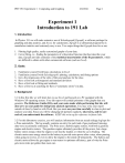 PHY191 Experiment 1: Computing and Graphing 2/8/2016 Page 1 Experiment 1 Introduction to 191 Lab 1. Introduction In Physics 191 we will make extensive use of Kaleidagraph [Kgraph], a software package for graphing and data analysis, and Excel, for calculations. Kgraph is a substantial program but is nonetheless intuitive and extremely easy to use. Two major things that Kgraph does for us are: 1. Plotting high quality, easily customized graphs of your data. 2. Curve fitting, i.e., finding the parameters of a theoretical function that best describe your data. Kgraph provides estimates of the statistical uncertainties of the fit parameters, which are difficult to obtain with other commercial software (such as Excel). 2. Goals: 1. 2. 3. 4. 5. 6. Familiarize yourself with basic calculations in Excel Familiarize yourself with Kaleidagraph's plotting, calculation, and fitting options Get a first impression of the style of labs and analysis for the class Have a first look at histograms and standard deviation Have a first look at fitting and residuals Have a first try at searching for flaws (“systematic errors”) in data. 3. Background 3.1 In this first lab, we will learn how to use Excel and Kgraph on a PC equipped with the Windows XP operating system. Your lab report will contain printouts of the graphs that you generate. The Reference Guide (RG), and your notes made while performing this lab, will also serve as your guide for doing basic analysis operations. You may write your report outside of class by hand or with Word. But you must use your time carefully in class to plot and analyze your data. Since you will be changing lab partners regularly, take turns, and be sure each of you understands the software. KEEP this write-up for reference in future labs. 3.2 For this laboratory exercise, you will analyze information from an actual mileage log kept for a Prius automobile. The log usually contains an entry for each tank of gas purchased (missing data were occasionally estimated). The Prius uses a hybrid engine system, with both a gasoline engine and electric motors. The gasoline engine ultimately provides all the power, but a large battery stores energy when the engine is not heavily loaded, or when the car is braking. The electric motor uses energy stored in the battery to provide extra power after a stop, when passing, when going in reverse, or even to allow the engine to be turned off temporarily. The battery and electric motor allows the gas engine to run nearer its optimum efficiency, part of why the Prius gets more miles per gallon than most cars. PHY191 Experiment 1: Computing and Graphing 2/8/2016 Page 2 The odometer measures the distance (in miles) a car has traveled by counting the number of turns of the tires. The amount of gas purchased is calculated by the gas pump. The Prius has a dashboard meter that displays the miles per gallon (mpg) being obtained at the moment, and since the last reset (in this mileage log, that usually means since the last tank of gas). These readouts use the same distance measurement as the odometer, but the gas consumption estimate is based on the time (measured in microseconds) that the computer has opened the fuel injectors. This assumes that the fuel pressure is constant and therefore the amount of fuel consumed is proportional to the time the injector was open. 4 Excel Data Calculations Goal: print 1st page of modified spreadsheet 4.1 Use the desktop shortcut to the R drive to open R:\exp1_ref\Prius.xls, an Excel file containing the mileage log and some date information. Now SAVE to your computer’s U drive space: File|Save As|U: (in Filename box)|Enter; pick your section folder and the exp1 folder inside it. An alternative to typing U: is clicking the down arrow in the Save in box and selecting bps1263xxxx. The Days column calculates number of days since the last fill-up. The month column calculates the months, starting from the beginning of 2002, so month 7.5 is the middle of July, 2002, and month 20 is the beginning of August, 2003. The Month of year column gives the month, independent of year, so month 9.3 would be early September of 2002, or 2003, or 2004. Click on a cell and the formula used will be displayed. 4.2 Now you will calculate some other quantities from the original data using Excel formulas. See the Reference Guide chapter on Excel if you need help. Calculate Miles (the difference in OD readings from the previous date to the current; use 456 for the miles on the first tank of gas); MPG Calc = miles / gallons; and calc/read = MPG Calc/mpg readout. Print the 1st page (File|Print|Print Page(s) From:1 To:1). Then save and close your file: Kgraph won’t open the file if Excel still has it open. 5. Kaleidagraph: Histograms and Statistics Goal: print 2 histograms and record statistics 5.1 Navigating Kgraph 5.1.1. See the Reference Guide for a terse introduction to basic Kgraph; use as needed. 5.1.2. You can modify an existing graph by double-clicking or right-clicking objects to bring up a menu for that object: for example, the title of a graph, or an axis label. 5.1.3 Kgraph has a good Help system; the >> spins you through successive related entries. 5.1.4. If you want to print out the “Statistics” screen, or anything else you can’t figure out how to print from a Windows program, hold down ALT and hit the Print Screen key. A copy of the active window is now on the clipboard. Then open Word, and paste with Ctrl-V, and print the Word document. The statistics screen or other clipboard contents can also be pasted into a Kgraph Plot, or a Kgraph Layout window. 5.2 Begin your analysis of the mileage data by opening Kgraph, and using Kgraph to open the Prius.xls file you just created. Kgraph properly opens an Excel spreadsheet with column headings as long as the headings are in the first row. 5.3 Make a histogram plot of the MPG Calc column. The plot will consist of bars rising from the x axis. In a histogram, data points are considered 