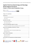 Applied Veterinary Bacteriology and Mycology: Bacteriological Techniques Chapter 6: Antimicrobial Susceptibility Testing Applied Veterinary Bacteriology and Mycology: Bacteriological techniques Chapter 6: Antimicrobial Susceptibility Testing Author: Dr. J.A. Picard Licensed under a Creative Commons Attribution license. TABLE OF CONTENTS INTRODUCTION .......................................................................................................................................... 3 Why should these tests be performed? ................................................................................................... 3 How is it done? ........................................................................................................................................ 3 SELECTION OF BACTERIA........................................................................................................................ 3 Direct sample antimicrobial test............................................................................................................... 3 After culturing the bacteria....................................................................................................................... 4 QUALITATIVE ANTIMICROBIAL SENSITIVITY TESTING ........................................................................ 4 The Kirby-Bauer disc diffusion method as recommended in NCCLS document M31-P ......................... 4 QUANTITATIVE ANTIMICROBIAL SUSCEPTIBILITY TESTING .............................................................. 8 Dilution techniques .................................................................................................................................. 8 Standard Operating Procedures: Antimicrobial Susceptibility Testing .................................................... 8 Interpretation of results .......................................................................................................................... 12 QUALITY CONTROL PROCEDURES ....................................................................................................... 12 Quality control organisms ...................................................................................................................... 12 Bacterial growth control ......................................................................................................................... 13 APPLICATION OF DILUTION METHODS IN VETERINARY MEDICINE ................................................ 15 1|Page Applied Veterinary Bacteriology and Mycology: Bacteriological Techniques Chapter 6: Antimicrobial Susceptibility Testing SELECTION OF ANTIMICROBIAL DRUGS ............................................................................................. 16 SUSCEPTIBILITY TESTING OF ANAEROBIC BACTERIA ..................................................................... 17 REFERENCE .............................................................................................................................................. 18 APPENDIX ................................................................................................................................................. 18 2|Page Applied Veterinary Bacteriology and Mycology: Bacteriological Techniques Chapter 6: Antimicrobial Susceptibility Testing INTRODUCTION Why should these tests be performed? Antimicrobial testing in veterinary practice is an essential tool for the treatment of infectious diseases and for monitoring therapeutic success, especially in livestock. The on-going, dramatic increase in resistant bacterial strains further emphasizes the need for target-orientated therapy rather than a shot-gun approach. How is it done? The two major approaches to antimicrobial susceptibility testing that evolved during the last four decades are the diffusion method and the dilution method. The disk agar diffusion method is a highly standardized and an acceptable qualitative test used for the determination of in vitro susceptibility of most clinical isolates. Many diagnostic laboratories now prefer to report results qualitatively as susceptible (S), intermediate (I) or resistant (R). Broth dilution techniques are regarded as the benchmark, but are not routinely performed by all laboratories due to the cumbersome nature of the tests. Semi-automated microtitration systems have overcome some constraints of broth dilution tests, but their cost will preclude their routine use in veterinary laboratories. There are two basic methods used for doing the disc diffusion test. The Kirby-Bauer method is the method standardized and described by the National Committee for Clinical Laboratory Standards (NCCLS). It is based on the measurement of zones of inhibition of bacterial growth on an agar surface. The Stokes method compares the inhibition zone sizes when the test and control organisms are inoculated on the same plate. The National Committee for Clinical Laboratory Standards (NCCLS), 771 East Lancaster Avenue, Villanova, Pennsylvania, USA, is a non-profitable, educational organization that provides a communication forum for the development, promotion, and use of national and international standards. Founded in 1968 and accredited by the American National Standards Institute, NCCLS is based on the principle that voluntary consensus standards are essential for maintaining the performance of the clinical laboratory at the high level necessary for quality patient care. Universal adoption of the Kirby-Bauer procedure for disk diffusion susceptibility testing in veterinary laboratories should be encouraged. It will contribute to harmonization of antimicrobial susceptibility testing in veterinary medicine. SELECTION OF BACTERIA Direct sample antimicrobial test In emergencies, clinicians may request that a direct sample antimicrobial test be done. It is however, subject to many variables, which should be taken into account when interpreting your results: Sample has a