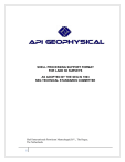 SHELL PROCESSING SUPPORT FORMAT FOR LAND 3D SURVEYS AS ADOPTED BY THE SEG IN 1993 SEG TECHNICAL STANDARDS COMMITTEE Shell Internationale Petroleum Maatschappij B.V., The Hague, The Netherlands i SPS FORMAT CONTENTS INTRODUCTION ................................................................................................................................................ 1 FIELD SYSTEM .................................................................................................................................................. 1 SHELL PROCESSING SUPPORT FORMAT FOR LAND 3D SURVEYS ................................................... 4 GENERAL......................................................................................................................................................... 4 Data record specification.............................................................................................................................. 4 Data record sorting order ............................................................................................................................. 4 Format for land survey data on 9-track tape ................................................................................................ 4 Format for land survey data on floppy disc .................................................................................................. 5 HEADER RECORD SPECIFICATION ............................................................................................................ 5 Instrument code (I) tables ............................................................................................................................. 6 Receiver code (Rx) tables .............................................................................................................................. 7 Source code (Sx) tables. ................................................................................................................................ 7 Quality Control check records ...................................................................................................................... 8 POINT RECORD SPECIFICATION ................................................................................................................ 9 RELATION RECORD SPECIFICATION ...................................................................................................... 10 COMMENT RECORD SPECIFICATION (OPTIONAL) .................................................................................. 11 HEADER RECORD DESCRIPTION ............................................................................................................. 12 Seismic instrument header records ............................................................................................................. 15 Seismic receiver header records ................................................................................................................. 16 Seismic source header records ................................................................................................................... 17 Quality Control check records .................................................................................................................... 18 POINT RECORD DESCRIPTION .................................................................................................................. 19 RELATION RECORD DESCRIPTION .......................................................................................................... 22 APPENDIX 1 - EXAMPLE OF SPS FORMAT .............................................................................................. 24 R FILE ............................................................................................................................................................. 24 S FILE .............................................................................................................................................................. 27 X FILE ............................................................................................................................................................. 30 LIST OF FIGURES FIGURE 1 FIELD ACQUISITION MANAGEMENT SYSTEM ........................................................................................... 2 FIGURE 2 AUTOMATIC RECORDING ......................................................................................................................... 3 FIGURE 3 LAND ELEVATIONS ................................................................................................................................ 20 FIGURE 4 TIDAL ELEVATIONS ................................................................................................................................ 21 Rev: API- 2012 ii INTRODUCTION The purpose of the format is to establish a common standard for the transfer of positioning and geophysical support data from land 3D field crews to seismic processing centres. In principal the format can also be used for land 2D surveys. With the growth and increased complexity of land 3D surveys there is a need to establish a robust and standard procedure for logging, during acquisition, the positioning and geophysical spread relation data in a way that reduces errors, allows the field crews to quality control the data, and hence detect and correct errors before the data is transferred to the seismic processing centres. Currently the quality control is carried out as the first stage in the processing centres. Experience has shown that most errors are only detected when the geophysical and coordinate information are integrated, and that often spread relation errors cannot be corrected, leading to the deletion of otherwise good quality records. Providing the processing centres with checked disk(s) in a standard format, containing all relevant field data will significantly reduce the time spent by the processing cen