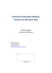 External Evaluation Report: Science in Norwich Day Dr Eric Jensen1 University of Warwick 1. Assistant Professor Department of Sociology University of Warwick e.jensen@warwick.ac.uk http://warwick.academia.edu/EricJensen 7 May 2012 Table of Contents Executive Summary.................................................................................................................... 4 Visitor Profile ................................................................................................................................... 4 Quantitative Results: Visitor Experience and Satisfaction............................................................... 5 Qualitative Results: Visitor Feedback and Impacts.......................................................................... 5 Science Communicator Profile ......................................................................................................... 6 Science Communicator Results........................................................................................................ 6 Introduction: Science Festival-based Public Engagement ..................Error! Bookmark not defined. Methods ..........................................................................................Error! Bookmark not defined. Visitor Evaluation Methods .............................................................. Error! Bookmark not defined. Science Communicator Evaluation Methods .................................... Error! Bookmark not defined. Visitor Evaluation: Quantitative Results ...........................................Error! Bookmark not defined. Visitor Profile .................................................................................... Error! Bookmark not defined. Gender and Age Distribution of Visitors ....................................... Error! Bookmark not defined. Visitor Group Distribution ............................................................. Error! Bookmark not defined. Geographical Distribution of Visitors ............................................ Error! Bookmark not defined. Annual Household Income ............................................................ Error! Bookmark not defined. Education Levels of Visitor Respondents ...................................... Error! Bookmark not defined. Level of Prior Participation in Science in Norwich Day and Duration of VisitsError! Bookmark not de Respondents’ General Interest in Science (Outside of Science Event Context)Error! Bookmark not d Marketing of Science in Norwich Day ........................................... Error! Bookmark not defined. Visitor Satisfaction ............................................................................ Error! Bookmark not defined. Disabled Visitors............................................................................ Error! Bookmark not defined. Visitor Evaluation: Qualitative Results ..............................................Error! Bookmark not defined. Qualitative Aspects of Science in Norwich Day Visitor Experience .. Error! Bookmark not defined. Visitor Understandings of ‘Science’: Pre-Event ............................ Error! Bookmark not defined. Visitor Understandings of ‘Science’: Pre and Post Event ComparisonError! Bookmark not defined. Visitor Impressions of Science in Norwich Day: Pre-Event ........... Error! Bookmark not defined. Visitor Impressions of Science in Norwich Day: Pre and Post Event ComparisonError! Bookmark not Valuing Science in Norwich Day .................................................... Error! Bookmark not defined. Visitor Experiences at Science in Norwich Day ............................. Error! Bookmark not defined. Self-Reported Gains and Losses from Attending the Event.......... Error! Bookmark not defined. Small-Scale Studies of Pre- and Post-Event Visitor Experiences ...... Error! Bookmark not defined. Science Communicator Evaluation: Quantitative and Qualitative ResultsError! Bookmark not defined. Science Communicator Demographic Profile ................................... Error! Bookmark not defined. Age and Gender Distribution of Science Communicators ............ Error! Bookmark not defined. Professional Status and Scientific Career Stage of Science CommunicatorsError! Bookmark not defi Previous Experience of Science Communication at Science in Norwich Day and Elsewhere ...................................................................................... Error! Bookmark not defined. Marketing of the Event to Science Communicators ..................... Error! Bookmark not defined. Quantitative Results: Science Communicator Experience and SatisfactionError! Bookmark not defined Support from Event Organisers .................................................... Error! Bookmark not defined. Satisfaction Levels from Science Communicator Participants...... Error! Bookmark not defined. Dissatisfaction from Science Communicator Participants ............ Error! Bookmark not defined. Self-Reported Science Communicator Achievements through Participating in the Event ............................................................................................. Error! Bookmark not defined. Qualitative Results: Science Communicator Feedback and Impacts Error! Bookmark not defined. Science Communicators’ ‘Best’ Experiences at Science in Norwich DayError! Bookmark not defined Thus, science communicators’ favoured aspects of the experience at Science in Norwich Day centred on the visitors and their enthusiasm for scientific topics.Error! Bookmark not Science Communicators’ ‘Worst’ Experiences at Science in Norwich DayError! Bookmark not define Science Communicators’ Pre-Event Understandings of ‘the Public’Error! Bookmark not defined. Science Communicators’ Understandings of ‘the Public’: Pre- and Post-Event Comparison ................................................................................... Error! Bookmark not defined. Science Communicators
