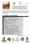 4 Very neat: it is clear you planned your drawing on a another piece of paper before starting; you used pencil to sketch your dig site before tracing over all lines in pen; space is used well and everything has a clear place. Color is effectively used throughout and reflects strong effort.