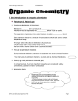 Hwa Chong Institution CHEMISTRY I An introduction to organic chemistry Petroleum & Natural gas Fractional distillation of Petroleum Petroleum (________ oil) is a mixture of ________________. Petroleum must be separated into ___________ before it can be useful. The separation of petroleum into useful fractions is called ___________ the oil. Each petroleum fraction is a mixture of hydrocarbons which boils over a certain temperature range. Principle behind fractional distillation of petroleum: A hydrocarbon with a long carbon chain has a ________________________ than one with a shorter carbon chain. (physical property) The use of petroleum fractions During fractional distillation, petroleum is separated into seven principal fractions. Two main uses of petroleum fractions : as fuels and as chemical feedstocks. Fuels (e.g. coal, petroleum & natural gas) In comparing fuels, four main important properties are considered: safety, convenience, pollution & heat of combustion) Alternative fuels Fossil fuels are non-renewable but fuels obtained from plants and organic wastes are renewable. In future, hydrogen, alcohol, palm oil & biogas may become important sources of fuel, esp when fossil fuels get more expensive as supplies become exhausted. By Mrs. Liew SG/Science Department /HCI Page 1 Hwa Chong Institution CHEMISTRY The supply of coal, petroleum & natural gas is limited. Other possible source of fuel are - palm oil – e.g. Malaysia - alcohol mixed with petrol is used to run vehicle engines. – Brazil (alcohol is produced from sugar cane) - Biogas – is the gas produced when organic matter (waste material from plants or animals) is allowed to decay in the absence of air. Biogas contains about 50% of methane. - hydrogen Homologous series Is a family of organic compounds with similar chemical properties. Compounds of the same homologous series contain the same functional group. Four main homologous series: Alkane, Alkene, alcohol & carboxylic acid. Properties : 1. similar chemical properties 2. gradual change in their physical properties. e.g. the melting point and boiling points rise gradually as the number of carbon atoms in the molecule increases. e.g. the viscosity of members of the same homologous series increases as their size and mass increase. Functional group Any atom or group of atoms that gives the characteristic properties to a molecule Naming organic compounds [Nomenclature] Alkane Full Structural formula Name Methane Alkene Full Structural formula - Name - Ethane Ethene Propane Propene Butane Butene Pentane Pentene Hexane Hexene By Mrs. Liew SG/Science Department /HCI Page 2 Hwa Chong Institution Alcohol Full Structural formula CHEMISTRY Name Carboxylic acid Full Structural Name formula Methanol Ethanoic acid II Organic Chemistry - Alkanes Physical properties 1. melting & boiling points increase as the relative molecular mass ___________. Reason: _______________________________________________________________ _______________________________________________________________ 2. methane – butane are gases, pentane & hexane are liquids. 3. Viscosity increases as the relative molecular mass ___________ . 4. Flammability increases as the relative molecular mass ____________. General formula of alkanes Alkanes are hydrocarbons with the general formula CnH2n+2 Saturated hydrocarbon: Because alkanes contain only ___________________ covalent bonds. Draw “dot and cross” diagram for methane and ethane. Draw full structural formulae for both methane and ethane. By Mrs. Liew SG/Science Department /HCI Page 3 Hwa Chong Institution CHEMISTRY Isomerism Compounds that have the same molecular formula but different structural formulae. Example: C4H10 Draw all the possible structural formulae of the above alkane. Straight-chain alkane Branched-chain alkane Chemical Properties Combustion Alkanes burn readily in air when ignited by a spark or flame. Combustion of alkanes in excess air/oxygen: Equations: 1. Combustion of methane: CH4 (g) + 2 O2 (g) CO2 (g) + 2 H2O(g) 2. Combustion of ethane: Combustion of alkanes in insufficient supply of air/oxygen: Combustion of methane: Substitution Reactions Alkanes react with chlorine in the presence of UV light as a catalyst. ---to give a mixture of products. Methane + chlorine → chloromethane + dichloromethane + trichloromethane + tetrachloromethane + hydrogen chloride By Mrs. Liew SG/Science Department /HCI Page 4 Hwa Chong Institution CHEMISTRY Mechanism: [Free radical substitution] When alkanes react with halogen in the presence of UV light e.g. CH4 react with Cl2 Step 1: Initiation step - Homolytic fission UV Cl Cl 2 Cl ● [chlorine free radical] Step 2: Propagation step CH3 H + Cl● HCl + CH3● [methyl free radical] CH3● + Cl Cl CH3Cl + Cl● …… chain reaction……. where CH2Cl2 , CHCl3 [also known as chloroform] and CCl4 are also produced. Step 3: Termination step – recombination of free radicals Cl● + Cl● Cl2 CH3● + CH3● C2H6 CH3● + Cl● CH3Cl This process produces a mixture of chloromethane, dichloromethane, tricholomethane & tetrachloromethane; they can then be separated by _______________. Read more about Chloroform: http://www.chm.bris.ac.uk/motm/chloroform/chloroformv.htm In the early 19th and early 20th centuries, chloroform was commonly used as an inhaled anaesthetic during surgery. It was banned now due to its toxicity. The fatal oral dose of chloroform is just 10ml due to respiratory or cardiac arrest. Prolonged exposure to chloroform can cause liver damage. By Mrs. Liew SG/Science Department /HCI Page 5 Hwa Chong Institution CHEMISTRY Question: Octane, C8H18, is a hydrocarbon in petrol. Hexadecane, C16H34, is one of the hydrocarbons in ship fuel. (i) Show by calculation that hexadecane contains a higher percentage of carbon by mass than octane. This is the equation for the complete combustion of octane. 2 C8H18 (l) + 25 O2 (g) → 16 CO2 (g) + 18 H2O (g) (ii) Write an equation for the complete combustion of hexadecane