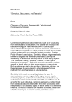 Ellen Seiter “Semiotics, Structuralism, and Television” From: Channels of Discourse, Reassembled: Television and Contemporary Criticism Edited by Robert C. Allen (University of North Carolina Press, 1992) ______________________________ Contemporary television criticism derives much of its vocabulary from semiotics and structuralism. This chapter will introduce the basic terminology of these methods, offer a case study of structuralist methods applied to childrens television, and introduce some of the concepts the so called post structuralists have used to critique and expand upon semiotics and structuralism. The late Paddy Whannel used to joke, "Semiotics tells us things we already know in a language we will never understand" Learning the vocabulary of semiotics is certainly one of its most trying aspects. This vocabulary makes it possible, however, to identify and describe what makes TV distinctive as a communication medium, as well as how it relies on other sign systems to communicate. Both questions are vital to the practice of television criticism, and these terms will be encountered in a broad range of critical methods from psychoanalysis to cultural studies. Semiotics is the study of everything that can be used for communication: words, images, traffic signs, flowers, music, medical symptoms, and much more. Semiotics studies the way such "signs" communicate and the rules that govern their use. As a tool for the study of culture, semiotics represents a radical break from traditional criticism, in which the first order of business is the interpretation of an aesthetic object or text in terms of its immanent meaning. Semiotics first asks how meaning is created, rather than what the meaning is. In order to do this, semiotics uses a specialized vocabulary to describe signs and how they function. Often this vocabulary smacks of scientism to the newcomer and clashes with our assumptions about what criticism and the humanities are. But the special terminology of semiotics and its attempt to compare the production of meaning in a diverse set of mediums--aesthetic signs being only one of many objects of study have allowed us to describe the workings of cultural communication with greater accuracy and enlarged our recognition of the conventions that characterize our culture. The term semiotics was coined by Charles S. Peirce (1839,1914), an American philosopher, although his work on semiotics did not become widely known until the 1930s. The field was also "invented" by Swiss linguist Ferdinand de Saussure. The term he used to describe the new science he advocated in Course in General Linguistics, published posthumously in 1959, was semiology. Structuralism is most closely associated with anthropologist Claude Levi Strauss, whose studies of the logic and worldview of "primitive" cultures were first published in the 1950s. Although it relies on many of the principles of semiotics, structuralism engages larger questions of cultural meaning and ideology and thus has been widely used in literary and media criticism. Semiotics and structuralism are so closely related they may be said to overlap semiotics being a field of study in itself, whereas structuralism is a method of analysis often used in semiotics. 1 Structuralism stresses that each element within a cultural system derives its meaning from its relationship to every other element in the system: there are no independent meanings, but rather many meanings produced by their difference from other elements in the system. Beginning in the 1960s, some leading European intellectuals applied semiotics and structuralism to many different sign systems. Roland Barthes carefully analyzed fashion, French popular culture from wrestling to wine drinking, and a novella by Balzac. Umberto Eco turned his attention to Superman comic strips and James Bond novels. Christian Metz set out to describe the style of Hollywood cinema as a semiotic system. By addressing the symbolic and communicative capacity of humans in general, semiotics and structuralism help us see connections between fields of study that are normally divided among different academic departments in the university. Thus they are specially suited to the study of television. The Sign The smallest unit of meaning in semiotics is called the sign. Semiotics begins with this smallest unit and builds rules for the combination of signs. Fredric Jameson has pointed out that this concern with discerning the smallest unit of meaning is something that semiotics shares with other major intellectual movements of the twentieth century, including linguistics and nuclear physics, but it is an unusual starting point for criticism, which has tended to discuss works as organic wholes. Taking the definition of the smallest unit as a starting point indicates a shift in the sciences from perception to models: "where the first task of a science henceforth seems the establishment of a method, or a model, such that the basic conceptual units are given from the outset and organize the data (the atom, the phoneme). ,2 Saussure conceptualized the sign as composed of two distinct parts, although these parts are separable only in theory, not in actual communication. Every sign is composed of a signifier, that is, the image, object, or sound itself the part of the sign that has a material form and the signified, the concept it represents. In written language, the sign rain is composed of the grouping of four letters on this page (the signifier) and the idea or concept of rain (the signified)that is, the category of phenomena we reserve for water falling from the sky. Saussure stressed that the relationship between the signifier and the signified in verbal language was entirely conventional, completely arbitrary. There is no natural or necessary connection between rain and the concept for which it stands. Furthermore, words have no positive value. A word's meaning derives entirely from its difference from other words in the si