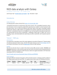 NGS data analysis with Galaxy CRG Master Course 2014 - 10 th October 2014 Jean-François Taly – Bioinformatics Core Facility – CRG – Barcelona – Spain Introduction Galaxy Rationale The following text has been extracted from Goeks et al. Genome Biol. 2010. “Computation has become an essential tool in life science research. This is exemplified in genomics, where first microarrays and now massively parallel DNA sequencing have enabled a variety of genome-wide functional assays, such as ChIP-seq and RNA-seq (and many others), that require increasingly complex analysis tools. However, sudden reliance on computation has created an 'informatics crisis' for life science researchers: computational resources can be difficult to use, and ensuring that computational experiments are communicated well and hence reproducible is challenging. Galaxy helps to address this crisis by providing an open, web-based platform for performing accessible, reproducible, and transparent genomic science. “ Tutorial – DNA-seq Introduction This tutorial aim to reproduce a part of the results obtained in the article of Zhang et al. “Genetic analysis of Leishmania donovani tropism using a naturally attenuated cutaneous strain”, Plos Pathogen 2014. As any member of the CRG you can access to galaxy.crg.es with your CRG credentials. Material Note that we will work only on a subset of the initial raw data (SRA accession number: SRS484822 and SRS484824). Moreover, for this tutorial, we will work only on the chromosome 36 of Leishmania donovani BPK282A1. The genomic sequence in FASTA format as well as the cognate annotations in GFF have been downloaded from the TritrypDB server: http://tritrypdb.org/common/downloads/release-8.0/LdonovaniBPK282A1. Results expected Among the different outcome of this paper is the fact that the strain CL is showing a specific mutation in the coding sequence gene Ras-like GTPase. The supplementary table S1 gives the following information: Chrom 36 Position 2280763 Change G/A Gene ID LdBPK_366140.1 Size 364 Site R231C Gene product Ras-like small GTPases, putative NGS data analysis with Galaxy 1 The Figure 2 gives a multiple sequence alignment of close orthologs, showing that the mutation is found in a very conserved region (“-“ indicates sequence identity). Method given in the article Alignments - text extracted from the supplementary file Page 1 “Paired-end reads were aligned against the reference genome using BWA (version 0.7.3a-r367), configured to allow a maximum of two mismatches (-k 2) in a 23 bases long seed sequence (-l 23) and its sampe module, with expected maximum insert size of 1000 bases (-a 1000), was used to generate the alignments in sam format. The default values were accepted for all other BWA parameters. Single-end reads were aligned using samse module with similar alignment stringency. SAMtools (v0.1.18) was used to convert sam files into binary format (samtools view), sort (samtools sort) and index (samtools index) bam files.” Variant Prediction calling - Text extracted from the supplementary file Page 2 “The RealingerTargetCreater script from the GATK suite was used to identify all intervals from bam files that contained indels. Then IndelRealigner script extracted reads from these regions and performed a local alignment (smith-waterman based) creating a new bam file with realigned indel regions. Variants were called by inputting alignment files (bam) from all the libraries together into the UnifideGenotyper script from the GATK suite. Both single nucleotide polymorphisms and small indels were called simultaneously using the – genotype_likelihood_models=BOTH option. Identification of high quality variants was enforced by (a) restricting our identification to regions with a combined coverage of 250 (all 4 libraries; dcov=250), (b) bases with a phred-scaled quality score of 21 or more (min_base_quality_score=21), (c) variants with a phred-scaled confidence of at least 30, (stand_emit_conf=30) and (d) --sample_ploidy=8.” Method employ in this tutorial 1. Input data quality check with FASTQC 2. Convert FASTQ to the proper format with FASTQ groomer 3. Filter for bad quality reads 4. Aligned reads to the reference genome with BWA 5. Call SNPS with GATK 6. Annotate SNPs with snpEFF 7. Align protein sequences with ClustalW 2 NGS data analysis with Galaxy Step-by-step Loading input data 1. The main screen (“Analyze Data”) is divided in 4 blocks. The letters B, T, H and D will give the location of the item described in the text. a. Header bar (B) b. Tool panel on the left (T) c. History panel on the right (H) d. Display box in the center (D) 2. Getting the FASTQ files from the ENA web sites a. Note that we won’t work on this dataset b. In the tool panel (T). GOTO: “Get Data” > “EBI SRA” c. In the display box (D). Type “SRS484822” in the box asking for an ENA accession number and click on search. d. (D) In the “Read Files” box, click on the link “File 1” in the line corresponding to the run “SRR1254937” and the column “FASTQ files (galaxy)” e. In the history panel (H), a new dataset appears in grey. The dataset will turn yellow while downloading and change color to green when finished. f. (H) Click on to stop the download and delete the dataset in order to avoid wasting the limited resources of the server. 3. Import a published history. The inputs FASTQ of this tutorial have been pre-loaded into Galaxy. a. In the header bar (B). Go to “Shared Data” > “Published Histories” > “LdoX36 SNP Calling” b. (D) 7 datasets are displayed: i. Two for the paired end (pe) data from the Cutaneous Leishmaniasis (CL) sample ii. Two for the paired end (pe) data from the Visceral Leishmaniasis (VL) sample iii. One for the single end (se) data from the Cutaneous Leishmaniasis (CL) sample iv. One for the single end (se) data from the Visceral Leishmaniasis (VL) sample v. One bed files containing the coordinates of the genes annotated