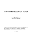 Title VI Handbook for Transit Indiana Department of Transportation Office of Transit Section 5310/5311 Grant Program All entities who receive Federal Transit Administration (FTA) grant dollars either directly from the FTA or through the Indiana Department of Transportation are subject to Title VI of the Civil Rights Act of 1964 (42 U.S.C. 2000d) and the U.S. Department of Transportation’s implementing regulations. This handbook provides technical assistance of the Title VI compliance requirements. July 1, 2015 Title VI Handbook for Transit 2014 Contents A. BACKGROUND B. TITLE VI DEFINITIONS C. RECIPIENT TYPES AND RESPONSIBILITIES D. GENERAL TITLE VI REQUIREMENTS E. SPECIFIC REQUIREMENTS F. TITLE VI PLAN DETAILS AND EXAMPLES 1. Evidence of Approval of Title VI Plan 2. Title VI Notice to the Public 3. Title VI Complaint Procedure 4. Title VI Complaint Form 5. List of Transit-Related Title VI Investigations, Complaints and Lawsuits 6. Public Participation Plan 7. Language Assistance Plan 8. Minority Representation Information G. RESOURCES H. APPENDICES 2 Title VI Handbook for Transit 2014 A. BACKGROUND Any entity receiving federal dollars, either directly from the Federal Transit Administration (FTA) or through the Indiana Department of Transportation (INDOT), Office of Transit, must not discriminate based on factors which include, but are not limited to, race, color, religion, sex, sexual orientation, gender identity, or national origin, age, or disability status. This handbook specifically addresses discrimination prohibited based on Title VI of the 1964 Civil Rights Act, a federal statute. If an agency is found in violation of Title VI, that agency may lose its federal funding. The exact language prohibiting discrimination in Title VI reads: “No person in the United States, shall, on the grounds of race, color, religion, sex, sexual orientation, gender identity, or national origin, be excluded from participation in, be denied the benefits of, or be subjected to discrimination under any program or activity receiving federal financial assistance.” B. TITLE VI DEFINITIONS Color: Skin color or complexion Title VI Discrimination: Refers to any action or inaction, whether intentional or unintentional, in any program or activity of a Federal aid recipient, sub-recipient, or contractor that results in disparate treatment, disparate impact, or perpetuating the effects of prior discrimination based on race, color, or national origin. National Origin: A person’s, or his or her ancestor’s, place of birth. May also refer to the physical, cultural or linguistic characteristics associated with ethnicity or ancestry. Race (as defined by the U.S. Census): A social classification of people which includes, at a minimum, White, Black or African American, American Indian or Alaska Native, Asian, Native Hawaiian or Other Pacific Islander. (Based on the demographics for your area, other races may be included.) C. RECIPIENT TYPES AND RESPONSIBILITIES Designated Recipient: An entity designated by the chief executive officer of a state, responsible local official, or publicly owned operators of public transportation to receive and apportion grant funds made available by Congress and FTA. Sub-recipient: An agency receiving grant funds through the Indiana Department of Transportation, Office of Transit. The Indiana Department of Transportation, Office of Transit, as a Designated Recipient of FTA funds for the State of Indiana, receives, administers, and allocates funds to sub-recipients. Responsibilities include monitoring sub-recipients’ compliance with Title VI, collecting Title VI plan documents, and providing Title VI reports directly to FTA. 3 Title VI Handbook for Transit 2014 Grantees and/or Sub-recipients - Many of INDOT Office of Transit grantees receive FTA funds through INDOT. These grantees and/or sub-recipients must submit a Title VI plan and program documents to the entity that provided them with FTA funds. Note: Sub-recipients are responsible for ensuring their third party contractor (transit provider), lessee or any participant at any tier of the FTA funded Project follows its respective Title VI plan and complies with Title VI provisions. A third party contractor (transit provider), lessee or any other participant at any tier of the Project is not required to prepare or submit a Title VI plan. At a minimum, however, such entities are obligated to be familiar with and adhere to the subrecipient’s Title VI Plan and should post the sub-recipient’s Title VI Notice to the Public (Appendix 2) in their vehicles, if applicable. Designated Recipient’s Monitoring of Sub-recipient’s Title VI Plan It is important to note that if a sub-recipient (you) is not in compliance with Title VI, then the designated recipient (INDOT), is also not in compliance. The Designated Recipient is responsible for documenting that the sub-recipient is in compliance with Title VI, unless the sub-recipient also receives funds directly from FTA (is a Direct Recipient) in which case the Title VI oversight responsibilities belong to FTA. To track compliance with Title VI, INDOT will: Document that the sub-recipient is complying with the general requirements of Title VI and any other specific requirements that apply to that sub-recipient. Collect and store sub-recipient’s Title VI plan documents on a schedule set by the Designated Recipient (INDOT). Submit complaints and other Title VI information to FTA as requested. D. GENERAL TITLE VI REQUIREMENTS If any of your programs or activities receives federal funding, then all of your programs and activities must comply with Title VI. Any agency receiving federal dollars either directly from FTA, indirectly through INDOT, or both, must: Ensure that the level and quality of public transportation service is provided in a nondiscriminatory manner; Promote full and fair participation in public transportation decision-making without regard to race, color, religion, sex, sexu