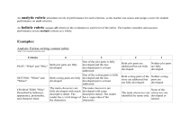 An holistic rubric assigns all criteria in the evaluation to each level of the rubric. The teacher considers and assesses