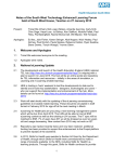 Notes of the South West Technology Enhanced Learning Forum held at South West House, Taunton on 27 January 2015 Present: Tricia Ellis (Chair), Nick Jupp (Notes), Amanda Gunning, Carly Knill, Clive Gage, Hazel Lear, Jo Bishop, Ken Stafford, Nichola Pallett, Paul Tilley, Pip Bedingfield, Rachel McConnell, Will Bladon, Will Tempest. Apologies: Ed Iles, Julie Fisher, Karen Stringer, Nick Napper, Nicki Healey, Paul Grimes, Paul Norrish, Paula Spokes, Rebecca Holden, Ryan Swallow, Steve Downs, Tenzin Wangdi, Yvonne Glenn. 1. Welcome and Apologies 1.1 Tricia Ellis welcomed everyone to the meeting. 1.2 Apologies were noted. 2. National eLearning Update 2.1 The development and launch of the Health Education England (HEE) national TEL hub (http://hee.nhs.uk/work-programmes/tel/tel-faqs/) is ongoing with a plan to launch it in June 0215. The hub will be an online portal and repository for TEL information and resources – initially in the areas of simulation, eLearning and m-Learning (mobile learning). 2.2 HEE is hosting a ‘hack’ weekend to test the developments to date and to identify and involve key stakeholders - designers, technologists and users – who can support the implementation and enhancement of the hub. More details can be found at: http://hee.nhs.uk/work-programmes/tel/tel-hack-day2015/ 2.3 Work will start shortly with the updating of the eLearning commissioning guidelines to included mobile learning. These should be circulated in draft format in February 2015 for sign-off at the next meeting in March. 2.4 eLearning for Healthcare are procuring a new learning management system which will be live from April 2015. The LMS will be able to host all ESR eLearning content as well as the existing e-LfH courses. The IT spec will be matched to ESR. 7% of users have IE7 so will be dropped as over ten years old and usage decreasing. New content from 2015 may not work on IE7. 2.5 Repository was hacked recently twice and now been restored. additional funding has been provided to support the enhancement to the Drupal platform to prevent repeats of the downtime. 2.6 In 2013, Skills for Health was awarded a Section 64 Grant by the Department of Health, through which Skills for Health were commissioned to make a range of products available to the NHS, including Skills for Health’s elearning products. Through this grant, Skills for Health continued to provide 1 access to core skills e-learning training programmes to NHS users free of charge. The Section 64 Grant is not being renewed and will end on 31st March this year and the implication of this is that, as of 1st April, 2015, Skills for Health will charge users for its e-learning products using its standard elearning pricing structure. Skills for Health have discussed potential actions, which could be taken to mitigate the impact on this for NHS providers and have decided to offer discounted provision to high volume users. The Skills for Health team are now in the process of contacting all users, to discuss how they can best manage the transition to these new arrangements. However, in the interim we are investigating the use of alternative courses that will be able to provide a free national solution for the NHS workforce to access. The forum expressed their concern with the short timescale of the contract termination. The affected courses are: Being Open BOC Medical Gases - Nurses BOC Medical Gases - Porters Cancer Information Prescriptions Conflict Resolution Dysphagia: Nutrition and Hydration Equality and Diversity - General Awareness Equality and Diversity - Pre-Assessment Equality and Diversity - Promoting Understanding Fire Safety Food, Nutrition & Hydration Health, Safety and Welfare Immunisations and Vaccinations Infection Control: Infection Prevention and You Infection Control: Principles of Infection Prevention Infection Control: Vascular Access Devices Information Prescriptions Infusion Devices Mixed Messages Moving and Handling Patient Moving and Handling Personalised Care Planning Public Health Awareness 2.7 Health Education South West (HESW) has a contract with Capita Consulting for Learning4Health, the e-learning platform that supports continuing professional development (CPD) in our area. The initial term of the contract runs until 31 March 2016 and HESW is required to notify Capita no later than 28 February 2015 if we intend to extend the contract. In order to arrive at a considered and appropriate decision, all organisations in 2 the South West and those within the Salisbury and Dorset footprint which currently have access to the platform were invited to participate in one of three focus groups. The purpose was to discuss and consider their experiences of using Learning4Health and their recommendations for the future of the provision. The summary of the focus groups discussions and their recommendations were taken to the two Membership Council meetings which took place on 2nd December 2014 in Exeter and 4th December 2014 in Bristol. The recommendation from both Membership Councils was that the contract should not be extended after 31 March 2016. HESW Governing Body met 13 January 2015 and supported the Membership Councils’ recommendation. Please be reassured that HESW and Capita will continue to work jointly to ensure that the full contractual arrangements will continue until 31 March 2016 and that all e-learning content, diploma places and organisation support will remain available free at the point of use until then. HESW requests that you maximise your use of the Learning4Health platform during the final year of the contract to ensure best value for money for the NHS. HESW is working closely with Health Education England (HEE) colleagues to ensure that from April 2016 there will continue to be free access to the most heavily used e-learning courses via HEE’s own e-learning platform known as “e-Learning for Healthcare” and can be found at www.e-lfh.org.uk . Course topics that are available now or during the 2015/16 f