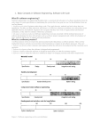 1. Basic Concepts in Software Engineering, Software Life-Cycle What is software engineering? Software engineering is an engineering discipline that is concerned with all aspects of software production from the early stages of system specification to maintaining the system after it has gone into use. In this definition, there are two key phrases: 1. Engineering discipline Engineers make things work. They apply theories, methods and tools where these are appropriate,. but they use them selectively and always try to discover solutions to problems even when there are no applicable theories and methods. Engineers also recognize that they must work to organizational and financial constraints, so they look for solutions within these constraints. 2. All aspects of software production Software engineering is not just concerned with the technical processes of software development but also with activities such as software project management and with the development of tools, methods and theories to support software production. What is a software process? A software process is the set of activities and associated results that produce a software product. There are four fundamental process activities (covered later in the book) that are common to all software processes. These are: 1. Software specification where customers and engineers define the software to be produced and the constraints on its operation. 2. Software development where the software is designed and programmed. 3. Software validation where the software is checked to ensure that it is what the customer requires. 4. Software evolution where the software is modified to adapt it to changing customer and market requirements. Figure 1.2 Software engineering activity cost distribution So what is design exactly, what sort of activities does it involve, and what can we observe about the products of that process? Perhaps a good starting point is to consider the words of one of the pioneering design methodologists, J. Christopher Jones, taken from his classic work, Design Methods: Seeds of Human Futures (Jones, 1970). ‘The fundamental problem is that designers are obliged to use current information to predict a future state that will not come about unless their predictions are correct. The final outcome of designing has to be assumed before the means of achieving it can be explored: the designers have to work backwards in time from an assumed effect upon the world to the beginning of a chain of events that will bring the effect about.’ n postulate a solution; n build a model of the solution; n evaluate the model against the original requirement; n elaborate the model to produce a detailed specification of the solution ‘If, as is likely, the act of tracing out the intermediate steps exposes unforeseen difficulties or suggests better objectives, the pattern of the original problem may change so drastically that the designers are thrown back to square one.’ In other words, the act of elaborating the original model might reveal its inadequacies or even its total unsuitability, so making the whole process of design essentially unstable. CASE STUDY 1 Moving house The design process itself then involves trying to identify the ‘best’ positions for the pieces of card on the plan of the new house. There is really no analytical form that can be used to do this, since it is usually necessary to trade off different factors in making the choices. However, there are various strategies that can be adopted: for example, determine which rooms will take greatest priority, and then seek to find ways of producing a well-matched set of furniture for those rooms. This strategy may lead to greater mismatches in the remaining rooms than would occur if the owner tried for an overall best match. Some of the constraints that apply to the various possible solutions will be more significant than others. Most people would not wish to place kitchen equipment in the living-room, for example, but might be prepared to position surplus fireside chairs in a bedroom. Other factors that might constrain the choice could be colour matches, style and so on. Equally, it is undesirable to obstruct power outlets – a point that leads on to our next issue. The decisions that result from this process can then be regarded as providing a plan for use by the removal team on the removal day. Indeed, not only will it determine just where in the house the various items are to be placed when the removal van arrives, but it may also affect the way that the removal process is to be organized, since the removers might choose to pack their van in a particular way in order to make the unloading process easier. CASE STUDY 2 The garden shed The Lotsalogs timber company is chiefly concerned with operating sawmills and with producing various standard sizes of timber. As a sideline, they are developing a new production unit that will use the timber to construct a small range of garden sheds. These sheds will all need to be constructed by using a set of prefabricated panels, so that they can be assembled at the customer’s home with relative ease. Apart from the cost of the timber, the main cost to consider in developing a new shed is the cost of fabricating the parts. Since sawing timber is very time-consuming, the amount of sawing needs to be kept to a minimum. Consideration of this factor has therefore led to the following set of design constraints. n A shed should be assembled from a set of prefabricated panels for the sides and roof. n Assuming that the boarding on the sides runs horizontally, each panel should be of a height that allows it to be constructed from a whole number of boards. n Where possible, the panels used in one shed should be of a size that allows them to be used in another: for example, the side panel for a small shed could also be used as the back panel for a larger model. n Windows and doors should be of standard dimensions, and again the height of each should correspond