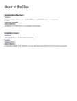 Word of the Day: remarkable (adjective) Definition: worthy of attention; likely to be noticed, especially as being uncommon or extraordinary Synonyms conspicuous, noticeable USAGE EXAMPLES Competing in the Olympics is a remarkable achievement. brouhaha (noun) Definition: great excitement or concern about something Synonyms hubbub, uproar; USAGE EXAMPLES A brouhaha erupted in the cafeteria over her statements about the new movie coming out tonight. Word of the Day: terse (adjective) Brief and to the point , concise Synonyms brief, compact, monosyllabic, succinct USAGE EXAMPLES Your last email was extremely terse, and I thought it verged on being rude. alleviate (verb) DEFINITION 1. to relieve or lessen; 2. to make easier SYNONYMS mitigate, assuage, allay, lighten, ease USAGE EXAMPLES The medication instantly alleviated the patient's pain. Jon's weekly phone calls were able to alleviate some of his mother's worry while he was stationed overseas. luminous (adjective) 1. giving off light, shining, producing or seeming to produce light 2. enlightening SYNONYMS beaming, bedazzling, clear, dazzling, effulgent, fulgent, glowing, incandescent, radiant, splendid USAGE EXAMPLES The sun shone softly, even the clouds were luminous and joyful. aesthetic (adjective, noun) DEFINITION (adj.) concerning or characterized by an appreciation of beauty or good taste; (n.) a theory as to what is beautiful SYNONYMS (adj.) tasteful, pleasing, cultured, refined, artistic USAGE EXAMPLES It wasn't the prettiest web site, but its user-friendly interface made up for the lack of aesthetic images. Gourmet food should look aesthetic as well as taste wonderful. Word of the Day: abstract (adjective) DEFINITION 1. not specific or concrete; 2. based on general theory rather than something specific; 3.nonrepresentational (in art SYNONYMS (adj.) theoretical, notional, hypothetical, nonspecific, nonrepresentational, USAGE EXAMPLES I don't like abstract painting because it doesn't look like anything I can recognize. The professor's argument was so abstract that no one in the room could understand it. candid (adjective) DEFINITION 1. honest, without reserve; 2. informal and natural SYNONYMS forthright, frank, guileless, straightforward, earnest, ANTONYMS deceitful, devious USAGE EXAMPLES She was very candid with the journalist during the interview and revealed many personal details of her life. grueling (adjective) Definition trying or taxing to the point of exhaustion : punishing SYNONYMS arduous, backbreaking, challenging, demanding, difficult, rigorous, rough USAGE EXAMPLES My sister finished a grueling Triathlon this weekend. censure (noun, verb) DEFINITION (n.) harsh criticism or condemnation; (v.) to criticize severely or to condemn SYNONYMS (n.) rebuke, disapproval, (v.) castigate, reprove, denounce USAGE EXAMPLES The committee issued a censure of the legislature's questionable activities. Those who refused to strike were censured by the union Word of the Day: conspicuous (adjective) DEFINITION 1. easily seen--noticeable; 2.trying to attract attention through being unusual or remarkable SYNONYMS obvious, blatant, evident, apparent, obtrusive, overt USAGE EXAMPLES If you continue your conspicuous and odd behavior, she will know you are planning a surprise party for her. benevolent (adjective) DEFINITION a tendency to do good or generous things SYNONYMS kind, generous, altruistic, charitable ANTONYMS malevolent, evil, selfish, insensitive USAGE EXAMPLES He was a benevolent man, determined to do what he could to make life easier and happier for others. dispel (verb) DEFINITION to cause to disappear, drive away, disperse SYNONYMS clear out, disband, scatter, disperse, dissipate, squander USAGE EXAMPLES When I woke in the night, my mom did her best to dispel my bad dream. banal (adjective) DEFINITION 1. boring and lacking in originality; 2. repeated too often and therefore overly familiar SYNONYMS trite, insipid, common, hackneyed USAGE EXAMPLES He thinks his ideas are creative and original, but I find them to be rather banal austere (adjective) DEFINITION 1. stern, strict, or harsh in manner; 2. bare or unadorned; 3. indicating self-denial or lack of comfort SYNONYMS severe, plain, simple, forbidding, stringent, ascetic, solemn ANTONYMS luxurious, self-indulgent USAGE EXAMPLES: With the recession, many families faced increased austerity in their home lives. Word of the Day: augment (verb) DEFINITION to increase or make greater by adding something SYNONYMS supplement, expand, intensify, enlarge, enhance USAGE EXAMPLES The senator's salary was augmented by funds obtained from illegal bribes. deft (adjective) DEFINITION skillful; adroit SYNONYMS artful, dexterous, expert, masterful, practiced, virtuoso USAGE EXAMPLES Any home could use the deft touch of a good interior designer. ascetic (noun, adjective) DEFINITION (n.) a person who practices self-denial; (adj.) practicing abstinence SYNONYMS (n.) abstainer, hermit, puritan, (adj.) abstemious, austere, restrained, severe ANTONYMS (n.) hedonist, (adj.) self-indulgent, sensuous USAGE EXAMPLES Sarah is ascetic in her lifestyle; she doesn't allow herself any luxuries, and her home is very simple and plain. apathy (noun) DEFINITION 1. the absence of emotion or enthusiasm 2. lack of interest SYNONYMS unconcern, indifference, stoicism, listlessness ANTONYMS passion, enthusiasm, zeal, curiosity USAGE EXAMPLES His apathy toward his job eventually got him fired. tactic (noun) DEFINITION an action that is planned to achieve a goal; a method of employing forces in combat SYNONYMS method, device USAGE EXAMPLES Using forensic science is an effective tactic for solving crimes. Word of the Day: anarchy (noun) DEFINITION a state of disorder and chaos, usually resulting from the absence of government or formal control SYNONYMS lawlessness, chaos, disorder, disarray, pandemonium, confusion USAGE EXAMPLES Without any leadership, our company will slowly slide into a state of anarchy. jut (verb) DEFI