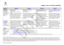 English II Year-at-a-Glance (SAMPLE) Purpose of Planning Build students’ knowledge: Illustrate how knowledge builds through texts within and across grades Increase text complexity1: Illustrate how text complexity increases within and across grades Integrate standards around texts: Provide multiple opportunities for students to develop their literacy Unit One (pg. 2-3) The Book Thief Markus Zusak (Literary, Appendix B Exemplar, 730L) Students will explore the following questions: Are the voices from history that we hear those of the victors? What happens when cultures collide or merge? They will learn more about colonization. Unit Two Unit Three Unit Four (pg. 4-5) Into the Wild, Christopher McCandless (nonfiction 1270L) (pg. ) To Kill a Mockingbird, Harper Lee (fiction, Appendix B Exemplar) (pg. ) The Tragedy of Macbeth, William Shakespeare (Literary, Appendix B Exemplar) Students will consider the meaning of courage and reflect on the challenges that emerge in the face of life experiences such as war, journey, loss, or even everyday difficulties. Students will learn the various means that people use to expose hypocrisy or ignoble motives of society and individuals. Students will engage with texts that have persuasive power. In related texts, students will examine how argument is created. The quantitative measures of many of these texts range towards the higher end of the recommended range for the 9-10 grade band, which moves students naturally towards the expectations of college and career readiness. Students will explore the ideas of ambition and failure, good and evil. They will learn about motivation, internal and external conflicts, and complex characters and consider lessons learned from the texts. The anchor text is an exemplar from The readability of these texts is The texts in this unit vary in Appendix B. While the readability appropriate for grade 10, and the complexity but generally measure falls below the band, it contains content of the texts is complex and toward the end of the 9-10 grade complex features, which make it provides opportunities for rich band. Each text will initially require suitable for grade 10. The related instruction of analytical reading some scaffolding, but students texts provide a range of complexity skills. should be able to move toward that meets the requirements for the independence by the conclusion of 9-10 grade band. the unit. The PARCC Model Content Frameworks provide an overview of how the standards can be integrated and centered around the reading of complex texts. The frameworks include: A sample visual of how a year might be organized, An overview of the Common Core State Standard expectations in grade 10, Writing standards progression from grade 8 to grades 9-10, and Speaking and Listening standards progression from grade 8 to grades 9-10. The plan below provides a sample of the specific year-long content for English I based on the PARCC Model Content Frameworks. 1 By the end of grade 10, students should demonstrate the ability to read and understand texts in the 9-10 grade band independently and proficiently (RL.9-10.10, RI.9-10.10). This plan provides direction for whole-class instruction with opportunities for student collaboration and rereading. Support for students outside of whole-class instruction should build student proficiency with reading grade-level texts. This might involve: for weaker readers—continued fluency work and reading of easier, related texts to support, not substitute or replace, the whole-class text; for on-level readers—continued support for students in reading the whole-class text (i.e., additional readings of specific passages with text-dependent questions); or, for advanced readers—extension work with more challenging texts. Students should also engage in regular independent reading of self-selected texts. 1 Sample Draft 5/20/2013 English II Year-in-Detail (SAMPLE) Unit One Theme: Are the voices from history that we hear those of the victors? What happens when cultures collide or merge? Anchor Text The Book Thief Markus Zusak (Literary, Appendix B Exemplar, 730L) Alternate Anchor Texts: The Kite Runner Khaled Hosseini (840L) Things Fall Apart Chinue Achebe (Literary Appendix B Exemplar, 890) Divergent Veronica Roth (700L) Little Bee Chris Cleave Text Complexity Rationale The anchor text is an exemplar from Appendix B. While the readability falls below the band, it contains complex characters with competing motivations, which make it suitable for grade 10. The related texts provide a range of complexity that meets the requirements for the 9-10 grade band. Related Texts Literary Texts Excerpts from The Poisonwood Bible, Barbara Kingsolver “The Second Coming,” William Butler Yeats “Languages,” Carl Sandburg “The Tower of Babel,” Genesis 11, The Holy Bible Persepolis: The Story of a Childhood, Marjane Satrapi Informational Texts “Aria,” Richard Rodriguez “Mother Tongue,” Amy Tan (Appendix B Exemplar) “Take the Tortillas Out of your Poetry,” Rudolfo Anaya (Appendix B Exemplar) “Chinua Achebe: The Art of Fiction No. 139,” Jerome Brooks, The Paris Review, Issue #133, Winter 1994 (Interview) “An African Voice,” Katie Bacon, The Atlantic Online, August 2, 2000 (Interview) Nonprint Texts (Media, Website, Video, Film, Music, Art, Graphics) Endangered Language Project website Building Student Understanding Students will learn that history is often an imperfect record of events and is subject to the biases of those who record it, especially when those voices are the victors. Students will learn what happens when cultures collide or merge from the perspective of the “other.” They will come to understand the effects of globalization, cultural diffusion, and the struggle between tradition and change when accompanied by the domination and marginalization of cultures. Students will also learn to discuss the literary merits of various texts by talking about their form, theme, language,