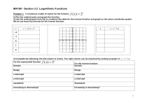 4) Complete the following, the left column is review. The right column can be answered by looking at graph of y f 1 ( x)