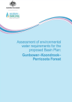 Published by Murray-Darling Basin Authority Postal Address GPO Box 1801, Canberra ACT 2601 Office location Level 4, 51 Allara Street, Canberra City Australian Capital Territory For further information contact the Murray-Darling Basin Authority office Telephone (02) 6279 0100 international + 61 2 6279 0100 Facsimile (02) 6248 8053 international + 61 2 6248 8053 E-Mail info@mdba.gov.au Internet http://www.mdba.gov.au MDBA Publication No: 22/12 ISBN: 978-1-922068-30-9 (online) © Murray–Darling Basin Authority for and on behalf of the Commonwealth of Australia, 2012. With the exception of the Commonwealth Coat of Arms, the MDBA logo, all photographs, graphics and trademarks, this publication is provided under a Creative Commons Attribution 3.0 Australia Licence. http://creativecommons.org/licenses/by/3.0/au The MDBA’s preference is that you attribute this publication (and any material sourced from it) using the following wording: Title: Assessment of environmental water requirements for the proposed Basin Plan: Gunbower-Koondrook-Perricoota Forest Source: Licensed from the Murray–Darling Basin Authority, under a Creative Commons Attribution 3.0 Australia Licence. The MDBA provides this information in good faith but to the extent permitted by law, the MDBA and the Commonwealth exclude all liability for adverse consequences arising directly or indirectly from using any information or material contained within this publication. Australian Government Departments and Agencies are required by the Disability Discrimination Act 1992 (Cth) to ensure that information and services can be accessed by people with disabilities. If you encounter accessibility difficulties or the information you require is in a format that you cannot access, please contact us. Murray Region Assessment of Gunbower-Koondrook-Perricoota Forest environmental water requirements 1. Introduction The Water Act 2007 (Cwlth) established the Murray‐Darling Basin Authority (MDBA) and tasked it with the preparation of a Basin Plan to provide for the integrated management of the Basin’s water resources. One of the key requirements of the Basin Plan is to establish environmentally sustainable limits on the quantities of surface water that may be taken for consumptive use, termed Sustainable Diversion Limits (SDLs). SDLs are the maximum long‐term annual average volumes of water that can be taken from the Basin and they must represent an Environmentally Sustainable Level of Take (ESLT). The method used to determine the ESLT is described in detail within ‘The proposed “environmentally sustainable level of take” for surface water of the Murray-Darling Basin: Method and Outcomes,’ (MDBA 2011). A summary of the main steps undertaken to determine the ESLT is presented in Figure 1. The assessment of environmental water requirements including specification of site-specific flow indicators at a subset of hydrologic indicator sites (Step 3 of the overall ESLT method) is the focus of this document. The work described herein is the MDBA’s current understanding of the environmental water requirements of Gunbower-Koondrook-Perricoota Forest. It is not expected that the environmental water requirements assessments will remain static, rather it is intended that they will evolve over time in response to new knowledge or implementation of environmental watering actions. Within this context, feedback is sought on the material presented within this document whether that be as part of the formal draft Basin Plan consultation phase or during the environmental watering implementation phase within the framework of the Environmental Watering Plan. 1.1. Method to determine site-specific flow indicators Assessment of environmental water requirements for different elements of the flow regime using the hydrologic indicator site approach is one of the key lines of evidence that has informed the proposed SDLs. Effort focussed on regions and parts of the flow regime with greatest sensitivity to the scale of reduction in diversions necessary to achieve environmental objectives, an ESLT and a healthy working Basin. Within the overall framework of the ESLT method (Figure 1) the MDBA used an iterative process to assess environmental water requirements and develop site-specific flow indicators. The hydrologic indicator site approach uses detailed eco-hydrological assessment of environmental water requirements for a subset of the key environmental assets and key ecosystem functions across the Basin. Effort focused on high flow (freshes, bankfull flows and overbank flows) requirements reflecting the prioritisation of effort on parts of the flow regime that are most sensitive to the determination of the ESLT and SDLs. Gunbower-Koondrook-Perricoota Forest is one of the key environmental assets where a detailed assessment of environmental water requirements was undertaken. 1 Figure 1: Outline of method used to determine an Environmentally Sustainable Level of Take (Source: MDBA 2011). Detailed environmental water requirement assessments lead to the specification of site-specific flow indicators to achieve site-specific ecological targets. Flow indicators were expressed at a hydrologic indicator site or sites. Environmental water requirements specified at hydrologic indicator sites are intended to represent the broader environmental flow needs of river valleys or reaches and thus the needs of a broader suite of ecological assets and functions. This report provides a description of the detailed eco-hydrological assessment of environmental water requirements for the Gunbower-Koondrook-Perricoota Forest including information supporting the development of site-specific flow indicators for the site (with reference to flows gauged on the River 2 Murray downstream of Torrumbarry Weir). More information on how the site-specific flow indicators for Gunbower-Koondrook-Perricoota Forest were used within the Basin-wide modelling process to inform the ESLT (i.e. Step 5 an