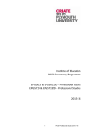 Institute of Education PGCE Secondary Programme EPGS615 & EPGS615SD - Professional Issues EPGS719 & EPGS719SD - Professional Studies 2015-16 1 PIoE Professional Studies 2015 -16 Contents Page Introduction 3 Weekly Programme 4 Assignments 7 This document is available on the relevant module site. Trainees or staff who require copies of this or other programme documents in a different format or medium should contact the Programme Leaders or Subject Pathway Leader. 2 PIoE Professional Studies 2015 -16 EPGS615/EPGS615SD and EPGS719/EPGS719SD – Professional Studies Introduction The aims of the modules are: to introduce you to general professional issues in education to introduce some of the fascination, complexity and need for personal beliefs in teaching and learning to develop your understanding of education as an academic discipline The modules are designed to provide a framework for based on theory and research for you to combine with your reading, writing, and thinking on and in practice. You are expected to reflect actively upon current issues in education and relate them to teaching and to your own subject area. Professional Studies (the modules and the assignments) focus on issues that are pupil centred as well as organisational and structural. Taught sessions will include investigative and structured activities through presentations, seminars and group work. Observations and mentor sessions in schools will extend, enrich and contextualise your understanding of the issues covered, as well as give you real opportunities for reflection on practice. Specifically you are encouraged to follow up your chosen assignment theme by investigating the theme in practice in your first placement school. A range of relevant reading is indicated on the Professional Studies Moodle site. Whilst this reading is not always explicitly used in sessions, it is implicit throughout and you should consult any appropriate resources available on the Professional Studies Moodle site prior to and after the weekly sessions. Teaching sessions for Professional Studies The structure of the weekly sessions is designed to introduce you to relevant professional issues by supporting your engagement with up to date literature and research and providing you with opportunities to explore the application of ideas. Each week will vary according to topic. The general structure is: 1000 - 1200 Professional Studies Seminar: the emphasis will be on developing critical reflection on theory and practice. 1300-1500 Professional Studies Seminars: you will be introduced to different professional issues in interactive sessions. Weeks 14, 27 and 30 Tutorials in small group will be arranged with your Professional Studies Group Tutor to support your assignments. See Moodle for room details. 3 PIoE Professional Studies 2015 -16 Weekly Programme Below is an outline programme for the sessions this year. Sessions are in the following rooms: Group A Rolle 114 Group B Rolle 212 Group C Rolle 214 PU week 9 Date Topic 21/9/15 1000-1200 Professional Studies Seminar Pre-reading: What is education? What is learning? Education debates: Do computers improve results? 1300-1500 Professional Studies Seminar • Module introduction, assignments and overview Teacher as professional - including standards, e safety (online identity) 10 28/9/15 Introduction to reflective writing; re-visit pre-course task/ Postcard to yourself 1000-1200 Professional Studies Seminar Open forum for discussion and reflection on practice: why “it” happened; what questions would you like to ask; what would you want others’ perspective on? Introduction to reflective writing; re-visit pre-course task/paragraph on OECD report 1300-1500 Professional Studies Seminar Perspectives on behaviour management – Below the Radar; Withitness Behaviour management scenarios Reading for next week: The future of education Ken Robinson: http://www.ted.com/talks/ken_robinson_changing_education_paradigms https://www.thersa.org/globalassets/pdfs/videos/2010/10/rsa-animate--changing-paradigms/rsa-lecture-ken-robinson-transcript.pdf Blog that argues against Robinson’s ideas: https://pragmaticreform.wordpress.com/2013/10/12/what-sir-ken-got- 4 PIoE Professional Studies 2015 -16 wrong/ Khan Academy: https://www.youtube.com/watch?v=zxJgPHM5NYI https://www.khanacademy.org/ 11 5/10/15 1000-1200 Professional Studies Seminar Open forum for discussion and reflection on first days in school Beginning to build an argument; presentation/activity based on reading on the future of education 1300-1500 Professional Studies Seminar The history of education activity 12 12/10/15 Education and the future: education for sustainable development Reading on SEND Code of Practice for next week. 1000-1200 Professional Studies Seminar Open forum for discussion and reflection SEN&D code of practice; implications for teachers. Discussion informed by weekly preparation reading, school policies and practice 1300-1500 Professional Studies Seminar The dyslexia debate Reading for next week: Black, P. and Wiliam, D (1998) “Inside the Black Box: Raising Standards Through classroom Assessment.” Phi Delta Kappa http://www.spd.dcu.ie/site/teaching_today/documents/raisingstandardst hroughclassroomassessment.pdf 13 19/10/15 1000-1200 Professional Studies Seminar Open forum for discussion and reflection Education for sustainable development in practice PT1 briefing inc PDP 1300-1500 Professional Studies Seminar Assessment: using assessment formatively and summatively 14 26/10/15 Prepare for tutorials for next week. Ensure you have planned two answers and drafted at least one. 1000-1200 Assignment tutorials in small groups for EPGS615 1300-1500 Assignment tutorials in small groups for EPGS615 15 2/11/15 Complete your action points from tutorials. 1000-1200 Professional Studies Seminar Open forum for discussion and reflection Paired presentations on critical reading: building an argument on 5 PIoE Professional Studies 2015 -16 assessme