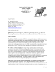 GALLATIN WILDLIFE ASSOCIATION P. O. Box 3979 Bozeman, MT 59772 (406) 586-1729 March 7, 2012 Dr. Donald E. Herriott USDA-APHIS Veterinary Services ATTN: Evaluation of GonaConTM EA 208 North Montana Ave, Suite 101 Helena, MT 59601 EAComments@aphis.usda.gov Sent via electronic mail Subject: Evaluation of GonaConTM, an Immunocontraceptive Vaccine, as a Means of Decreasing Transmission of Brucella abortus in Bison in the Greater Yellowstone Area Dear Dr. Herriott The Gallatin Wildlife Association (GWA) is a non-profit volunteer wildlife conservation organization representing hunters and anglers in Southwest Montana and elsewhere. Our mission is simply to protect habitat and conserve fish and wildlife. GWA supports sustainable management of fish and wildlife populations through fair chase public hunting and fishing opportunities that will ensure these traditions are passed on for future generations to enjoy. Thank you for the opportunity to comment on the subject EA. No Federal Action is justified: On behalf of our members please consider these concerns we have about APHIS proceeding with a Greater Yellowstone wild bison sterilization study on some of the most rare and genetically important North American bison left in the world (Halbert et al. 2012). We are particularly concerned that this project would involve capturing Greater Yellowstone wild bison, confining them in captivity for several years, subjecting them to intensive testing, handling and management, and eventually slaughtering them. The carcasses would then be disposed of by incineration or landfill burial. We see no evidence in the EA that justifies such extreme actions to such rare and genetically important wild animals. In particular we can find no evidence that this study will produce any tangible benefits for Greater Yellowstone wild bison, bison advocates around the world or the local domestic cattle industry. Indeed, to date there have been no documented transmissions of brucellosis from Greater Yellowstone bison to cattle due to a variety of natural as well as 1|P age management induced factors (White et al. 2011). Transmission risk from Greater Yellowstone bison to cattle is already low by June 1 and extremely low by June 15 (Aune et al. 2007; Kilpatrick et al. 2009; USDI Yellowstone National Park. 2009; Jones et al. 2010) even though sero-prevalence in adult female bison has increased or remained constant at about 60% (Hobbs et al. 2009) . On the other hand, additional habitat outside the Park is being recognized as a critical factor in preserving and enhancing the Greater Yellowstone bison population(s) (Geremia et al. 2011). As well, two genetically distinct and clearly defined subpopulations were recently identified based on both genotypic diversity and allelic distributions (Halbert et al. 2012). The importance of preserving these subpopulations cannot be overstated. Therefore, we urge APHIS not to sterilize any of these bison and to select the “no action” alternative as laid out in the EA. Please divert the time, personnel, energy and funding necessary to complete this project to better address the site specific habitat conflicts that may occur between free-ranging bison and private land livestock within the Greater Yellowstone Ecosystem. Securing additional habitat for these bison within the GYE is critical. Forgo Intrusive Government Intervention and Protect Habitat: Furthermore, this APHIS proposal is at odds with one of the primary goals of the Interagency Bison Management Plan, which APHIS is a signatory partner, specifically, the goal of “maintain[ing] a wild, free-ranging bison population” in the GYE. Capturing, confining and sterilizing bison works against that goal. As well, the processes for long-term conservation of free-ranging ungulates such as bison operate on a large landscape scale over long periods of time (White et al. 2011). Thus, access to habitat over a larger landscape is critical for Greater Yellowstone bison conservation, while the risk of transmission to cattle is already very low and is indeed manageable. We are concerned that instead of working to further manage the cattle/bison interface in a manner that works for everyone, APHIS proposes to unilaterally capture, confine, sterilize, intensively test, feed and handle wild bison, essentially treating them like domestic livestock rather than a free-ranging wildlife population as directed by the IBMP’s mission. Of further concern and as noted in the EA, bison injected with GonaConTM would be unfit for human consumption. Thus, APHIS proposes to end the study with the wasteful slaughter and disposal or incineration of these genetically important bison. This intensive and intrusive project is in direct conflict with Montana Fish, Wildlife & Park’s goal of restoring and conserving these bison as valued native wildlife in Montana, again working counter to the IBMP goal of maintaining a wild, free-roaming bison population within the GYE. We are also concerned about the loss of public viewing and hunting opportunities these bison might otherwise provide in southwest Montana if they were allowed to migrate, expand their range, reproduce and establish new home ranges over time. Failure to Secure Consensus Agreement from the IBMP Partners: As well, how did this project originate? We are concerned this was not a consensus driven agreement between all the IBMP partners. Regarding bison management, we have been told the IBMP partners work on a consensus driven basis. GWA members have faithfully 2|P age attended all or nearly all IBMP meetings over the years, and we have no recollection that this project was publicly reviewed and approved through the IBMP partner consensus and public process. If it exists, please provide the documentation that this project resulted as a consensus driven agreement of the IBMP partners. In particular, did the Montana FWP, Gallatin National Forest and tribal representatives from the Nez Perce, Salish-Kootenai and I