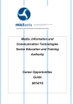 Media, Information and Communication Technologies Sector Education and Training Authority Career Opportunities Guide 2014/15 Our Vision: To be recognised as the leader in the development of a highly skilled knowledge-based information society. Our Mission: The MICT SETA generates, facilitates and accelerates the processes of quality skills development at all levels in the MICT sector. Table of Contents 1 Introduction .......................................................................................................................................1 2 Sector Profile ....................................................................................................................................2 2.1 MICT SETA Sub-sectors.................................................................................................2 2.2 Number of employers .....................................................................................................2 2.3 Number of employers per sub-sector per size .................................................................3 2.4 Number of employees per sub-sector .............................................................................3 2.5 Racial distribution per sub-sector ....................................................................................4 2.6 Employees by Occupation Group ...................................................................................5 3 Demand and Supply of Skills ............................................................................................................8 3.1 Introduction .....................................................................................................................8 3.2 Labour demand ..............................................................................................................8 3.3 Scarce Skills demand .....................................................................................................8 3.4 Approach to identifying scarce and critical skills .............................................................9 3.5 Overview of scarce skills............................................................................................... 10 3.5.1 Advertising ........................................................................................................... 11 3.5.2 Film and Electronic Media .................................................................................... 12 3.5.3 Electronics ........................................................................................................... 13 3.5.4 Information Technology........................................................................................ 14 3.5.5 Telecommunications ............................................................................................ 16 3.6 Overview of critical skills ............................................................................................... 17 3.7 Supply of Skills into the MICT Sector ............................................................................ 21 3.7.1 FET/HET landscape and enrolments in relevant qualifications ............................. 21 3.7.2 Other providers .................................................................................................... 23 3.8 Learning Programmes .................................................................................................. 23 3.9 PIVOTAL programmes.................................................................................................. 24 3.10 Registered qualifications ............................................................................................... 26 3.11 Utilisation of Qualifications ............................................................................................ 30 3.12 Training Conducted in the Sector.................................................................................. 31 4 Summary ........................................................................................................................................ 32 5 Conclusion ...................................................................................................................................... 32 6 Contact us....................................................................................................................................... 33 Sector Skills Planning: ....................................................................................................................... 33 Learning Programmes ....................................................................................................................... 33 ETQA .......................................................................................................................................... 33 1 Introduction The purpose of the Career Opportunities Guide is to provide an overview of the MICT sector skills requirements within the South African context. The information for developing the Guide was gathered through multiple data sources and research methods: – Desk research was conducted by sourcing and reviewing documents and data from several institutions including Statistics South Africa (Stats SA), the South African Revenue Service (SARS), the South African Reserve Bank (SARB), and the Bureau for Economic Research (BER). This data is complemented by other desktop and online research reports that are subsector specific and those that are generic about the South African economy. – An ICT skills survey report developed by the Joburg Centre for Software Engineering in conjunction with MICT SETA and supported by the Computer Society of South Africa, the Information Technology Association of South Africa and ITWeb. – An analysis of the workplace skills plans (WSP) and annual training report (ATR) submissions was conducted to determine the level of skills need and supply amongst employers submitting these documents periodically to MICT