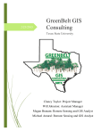 2/23/2015 GreenBelt GIS Consulting Texas State University Clancy Taylor: Project Manager Will Johnston: Assistant Manager Megan Branam: Remote Sensing and GIS Analyst Michael Amaral: Remote Sensing and GIS Analyst The Efficacy of Residential Tree Plantings in Mitigating Urban Heat Island: An Analysis of the NeighborWoods Program in Austin, Texas Prepared by: GreenBelt GIS Consulting II Table of Contents Introduction ................................................................................................................................................. 1 Summary ................................................................................................................................................... 1 Purpose ...................................................................................................................................................... 1 Scope ......................................................................................................................................................... 1 Literature Review ....................................................................................................................................... 2 Proposal ....................................................................................................................................................... 3 Data ........................................................................................................................................................... 3 Methodology ............................................................................................................................................. 4 Budget ....................................................................................................................................................... 6 Timeline .................................................................................................................................................... 7 Final Deliverables ..................................................................................................................................... 8 Conclusion ................................................................................................................................................... 8 Participation ................................................................................................................................................ 9 Appendix .................................................................................................................................................... 10 Bibliography .............................................................................................................................................. 11 III 1.1 INTRODUCTION 1.2 Summary According to the Environmental Protection Agency (EPA), the Urban Heat Island effect explains the phenomena that developed areas are hotter than the surrounding rural areas. The heat from the urban areas negatively impacts cities, most specifically through increasing energy use and demand to cool down structures, air pollution, greenhouse gas emissions, human health issues relating to heat and pollution, as well as having a negative impact on water quality (Environmental Protection Agency, 2013). Many cities have implemented programs to mitigate the Urban Heat Island effect while still allowing development to occur, one of those being Austin, Texas. Austin, Texas is a rapidly growing major city in central Texas, currently home to 885,000 people with an approximate population growth rate of 2.8%. With more people, comes more development. This development often means more concrete and other surfaces that contribute to the Urban Heat Island effect (UHI effect). In order to mitigate the UHI effect and reap other tree planting benefits, the City of Austin, Austin Energy, and the non-profit TreeFolks have implemented a tree planting program called NeighborWoods. In order to determine the effectiveness of the NeighborWoods program in UHI mitigation, the City of Austin has partnered with Greenbelt GIS Consulting. Greenbelt GIS Consulting will measure the effectiveness of the NeighborWoods program using ArcGIS, remote sensing, and statistical analysis, as well as make recommendations for future studies of this program. 1.3 Purpose This study will analyze the effectiveness of the NeighborWoods program in mitigating the UHI effect. Using GIS to analyze tree planting locations, and ERDAS to analyze surface temperature, the study will help determine the cooling and other mitigating effects of trees. Furthermore, the study will analyze energy reduction benefits of NeighborWoods trees. 1.4 Scope This study will analyze the city limits of Austin, Texas, with a special emphasis on locations with NeighborWoods Tree Plantings. These locations are shown in Figure 1. The 1 NeighborWoods tree plantings began in 2002. The study will analyze surface temperature imagery over the 13 years since NeighborWoods began. 2.1 LITERATURE REVIEW There is a large amount of research that has been conducted into studying what the urban heat island (UHI) effect is, its causes, and its impacts on the environment. In urban locations, much of the land that once contained vegetation is replaced by impervious surfaces like concrete and asphalt. The roads and buildings that are constructed in urban areas absorb more of the suns energy during the day and release that energy into the air at night (Gallo et al., 1993). Other attributing factors to the UHI effect are reduced airflow due to large buildings, as well as a reduced amount of moisture involved in evapotranspiration in the atmosphere located in these urban zones (Coutts, et al. 2007). With the replacement of the natural earth surface with impervious concrete, there is also a larger amount of runoff from rain water (Carlson, 1986). As temperatures rise in highly urbanized areas, the amount of e