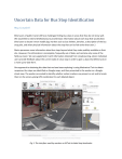 Uncertain Data for Bus Stop Identification Meg Campbell Blind users of public transit still face challenges finding bus stops in areas that they do not know well. We would like to extend OneBusAway to provide basic information about each stop that would allow blind users to locate it more readily (eg: markers such as bus shelters, benches, a description of the bus stop pole, and other physical information about the stop that can be felt rather than seen.) Metro possesses some information about bus stops beyond what they make publicly available on their site. However, this information is incomplete, frequently out of date, and contains only some of the fields we need. We can supplement it with information obtained from crowdsourcing, where individual users provide feedback about the current state of a bus stop in order to give us data that Metro lacks in a more up-to-date form. One approach to obtaining this data that we have been exploring is using Mechanical Turk to obtain responses. Bus stops are identified on Google maps, and then presented to the worker as a Google street view. The workers are asked to identify whether certain markers are present or not and to locate them on the screen, giving GPS coordinates for each labeled object. Fig 1: The interface used by workers on MTurk to label stop landmarks Responses from many workers are then collected as an aggregate to give probabilistic results (eg: 75% of workers believe there is a bus shelter at a particular stop.) This MTurk study was performed as a joint project between UW and the University of Maryland, covering a subset of bus stops in the DC and Seattle areas. It does not provide comprehensive data for every Seattle bus stop but serves as a preliminary data source to evaluate MTurk as a means of obtaining this information. Data Collection Because this project is a continuation of outside research the early part of my work was focused on completing data collection. We chose audit areas around UW, downtown Seattle, Washington DC, and College Park, Maryland to use as the initial test of the MTurk data collection method. A several square mile radius was chosen in advance for each area. Then all positions marked on Google Maps as being bus stops were used as data points and presented as panoramic views to the workers on MTurk. Additionally, we visited each stop on the list in person and took photos exhaustively documenting the current state of the bus stop. There were two goals to this phase of the data collection. Firstly, we wanted to evaluate how accurate the MTurk workers were at applying labels to the given Google Maps image. Secondly, we wanted to evaluate how accurately the Google data reflects the current state of the bus stops in those areas. In order to accomplish this for each stop three sets of data were collected: the MTurk worker’s labels from the interface, the researchers’ labels from the same MTurk interface, and a dataset representing “ground truth” of the researchers manually counting bus stop attributes from current photos. We found the labels produced by the MTurk workers to be largely accurate against the Google Maps data when enough workers labeled a single stop; this will be discussed in further detail below. On average, I found that about 17.6% of Seattle bus stops identified by Google maps were false positives that were not present in Google street view. Of the bus stops found in the physical survey, 93.7% were identified on Google maps. MTurk Data Data collection on MTurk is conducted as individual assignments to workers for which workers are paid when the whole assignment is completed. A single “assignment” in the BusStopLabeler was defined as being 14-16 randomly chosen labeling tasks, where each labeling task refers to completely labeling a single stop. The full schema of this data is provided in the appendix below. Fig 2: Subset of the relevant tables and fields from the MTurk data tables For the purposes of aggregating the data afterwards, the fields shown in Figure 2 are the most relevant ones. For each bus stop the specific labeling task that produced data for it can be found by PanoramaID. These tasks are part of a larger assignment, which may or may not have been completed (meaning all tasks in the assignment were finished and submitted). For the purposes of our study we only considered labels from completed assignments in order to avoid cases in which some labels had been placed but the worker had not finished the full task. Each labeling task is associated with some number of labels, which contain both a GIS location and the type of label used. A label may also be flagged as deleted if the user placed the label but withdrew it prior to submission. Only undeleted labels are considered for the purpose of this study. In order to produce a full table of the probabilistic traits of a bus stop, first all labels for each LabelingTask must be collected into a single row representing that specific task’s view of the bus stop. The null columns— meaning no labels were placed for a given attribute—must be replaced with explicit 0s in order to preserve the overall counts when using aggregation on all rows. Once rows of data representing each labeling task have been generated, these can be grouped by the internal bus stop ID and processed into the overall probabilistic expectations for the stop. At this step I kept only the most common guess for each trait. For example, if the beliefs stated that there was a 60% probability of being 2 shelters and a 40% probability of being 1 shelter, I did not preserve any information about the distribution other than the most likely choice and its probability. Ties were broken arbitrarily by the max function. (These were very uncommon; with more than 15 respondents most bus stops tended towards pronounced trends of certainty, with exceptions discussed in more detail below.) Fig 3: MTurk probability table (subset of columns) MTurk and Metro With the table o