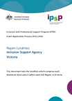 u Inclusion and Professional Support Program (IPSP) Grant Application Process 2013-2016 Region Localities Inclusion Support Agency Victoria This document lists the localities which comprise each Statistical Area Level 2 within each ISA Region in Victoria. Description This document provides greater detail on the Australian Bureau of Statistics, Statistical Areal Level 2 boundaries within each ISA Region. The localities listed in this document are the ‘gazetted locality boundaries’ supplied by the state or territory government and may differ from commonly used locality and/or suburb names. This document does not provide a definitive list of every suburb included within each ISA Region as this information is not available. Postcodes are provided for those localities which either: cross ISA boundaries or where the same locality name appears in more than one ISA region within the same state or territory. IPSP 2013-2016: ISA Region Localities – Victoria ISA Region 19 – Barwon – Localities Aire Valley Aireys Inlet Alvie Anakie Anglesea Apollo Bay Avalon Balintore Bambra Bamganie Bannockburn Barongarook Barongarook West Barrabool Barramunga Barunah Park Barunah Plains Barwon Downs Barwon Heads Batesford Beeac Beech Forest Bell Park Bell Post Hill Bellarine Bellbrae Bells Beach Belmont Benwerrin Berringa Big Hill (Postcode: 3231) Birregurra Boonah Breakwater Breamlea Buckley Bungador Cambrian Hill Cape Clear Cape Otway Carlisle River IPSP 2013-2016: ISA Region Localities – Victoria Ceres Chapple Vale Clifton Springs Colac Colac East Colac West Connewarre Coragulac Corindhap Corio Cororooke Corunnun Cressy Cundare Cundare North Curlewis Deans Marsh Dereel Dreeite Dreeite South Drumcondra Drysdale Durdidwarrah East Geelong Eastern View Elliminyt Enfield Eurack Fairhaven Ferguson Forrest Freshwater Creek Fyansford Garibaldi Geelong Geelong West Gellibrand Gerangamete Gherang Gheringhap Glenaire Gnarwarre Grenville Grey River Grovedale Haddon Hamlyn Heights Happy Valley (Postcode: 3351) Herne Hill Hesse Highton Hordern Vale Illabarook Indented Head Inverleigh Irrewarra Irrewillipe Irrewillipe East Jan Juc Johanna Kawarren Kennett River Lara Larpent Lavers Hill Leopold Lethbridge Linton Lorne Lovely Banks Manifold Heights Mannerim Mannibadar Marcus Hill Marengo Marshall Maude Meredith Modewarre Moggs Creek Moolap Moorabool Moriac ISA Region 19 – Barwon – Localities Mount Duneed Mount Mercer Mount Moriac Mount Sabine Murgheboluc Murroon Nalangil Napoleons Newcomb Newtown (Postcode: 3220) Newtown (Postcode: 3351) Nintingbool Norlane North Geelong North Shore Ocean Grove Ombersley Ondit Paraparap Pennyroyal Petticoat Creek Piggoreet Pirron Yallock Pitfield Pittong Point Lonsdale Point Wilson IPSP 2013-2016: ISA Region Localities – Victoria Portarlington Queenscliff Rippleside Rokewood Rokewood Junction Ross Creek Russells Bridge Scarsdale Separation Creek She Oaks Shelford Skenes Creek Skenes Creek North Smythes Creek Smythesdale South Geelong Springdallah St Albans Park St Leonards Staffordshire Reef Staughton Vale Steiglitz Stonehaven Stonyford Sugarloaf Sutherlands Creek Swan Island Swan Marsh Tanybryn Teesdale Thomson (Postcode: 3219) Torquay Wallinduc Wallington Wandana Heights Warncoort Warrion Waurn Ponds Weeaproinah Weering Wensleydale Werneth Whittington Whoorel Willowvale Winchelsea Winchelsea South Wingeel Wongarra Wurdiboluc Wye River Wyelangta Yeo Yeodene Yuulong ISA Region 20 – Bayside – Localities Arthurs Seat Aspendale Aspendale Gardens Balnarring Balnarring Beach Baxter Beaumaris Bentleigh Bentleigh East Bittern Black Rock Blairgowrie Bonbeach Boneo Braeside Brighton Brighton East Cape Schanck Carnegie Carrum Carrum Downs Caulfield Caulfield East Caulfield North Caulfield South Chelsea Chelsea Heights Cheltenham Clarinda Clayton South Crib Point IPSP 2013-2016: ISA Region Localities – Victoria Dingley Village Dromana Edithvale Elsternwick Fingal Flinders Frankston Frankston North Frankston South Gardenvale Glen Huntly Hampton Hampton East Hastings Heatherton Highett Hmas Cerberus Langwarrin Langwarrin South Main Ridge Mccrae Mckinnon Mentone Merricks Merricks Beach Merricks North Moorabbin Moorabbin Airport Moorooduc Mordialloc Mornington Mount Eliza Mount Martha Murrumbeena Oakleigh South Ormond Parkdale Patterson Lakes Point Leo Portsea Red Hill Red Hill South Rosebud Rosebud West Rye Safety Beach Sandhurst Sandringham Seaford Shoreham Skye Somers Somerville Sorrento St Andrews Beach St Kilda East Tootgarook Tuerong Tyabb Waterways ISA Region 21 – Central Highlands Wimmera – Localities Addington Albacutya Alfredton Allendale Amphitheatre Antwerp Apsley Arapiles Ararat Areegra Armstrong Ascot (Postcode: 3364) Aubrey Avoca Avon Plains Bacchus Marsh Bakery Hill Bald Hills Ballan Ballarat Central Ballarat East Ballarat North Balliang Balliang East Ballyrogan Bangerang Banyena Barkly Barkstead Barrys Reef Basalt Bayindeen Beaufort Beazleys Bridge Bellellen Bellfield (Postcode: 3381) Benayeo Beremboke Beulah Black Hill IPSP 2013-2016: ISA Region Localities – Victoria Black Range Blackheath Blackwood Blakeville Blampied Blowhard Bo Peep Bolangum Bolwarrah Bonshaw Boolite Bornes Hill Brewster Brim Brimpaen Bringalbert Broomfield Broughton Brown Hill Buangor Bulgana Bullarook Bullarto Bullarto South Bunding Bungal Bungalally Bungaree Buninyong Bunkers Hill Burnbank Burrumbeet Cabbage Tree Callawadda Campbells Bridge Campbelltown Canadian Cannum Carapooee Carapooee West Cardigan Cardigan Village Cargerie Carngham Carranballac Cathcart Chapel Flat Charam Chepstowe Chetwynd Chute Clarendon Claretown Clarkes Hill Clear Lake Clunes Clydesdale Coghills Creek Coimadai Colbrook Concongella Connewirricoo Coomoora Coonooer West Cope Cope Creswick Creswick North Cross Roads Crowlands Crymelon Dadswells Bridge Dales Creek Dalyenong Darley Daylesford Dean Deep Lead Delacombe Denicull Creek Denver Dergholm Dimboola ISA Region 21 – Central Highlands Wimmera – Localities Dobie