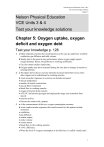 Chapter 5 e Lactid acid accumulation would not occur at times of steady state. f The lactid acid accumulation would not occur because the athlete would be working aerobically and additional lactic acid would not be produced. g Oxygen consumption remains elevated (4 litres/min) at the end of the exercise and is higher than oxygen consumption at rest (0.5 litres/min). h The student’s oxygen levels may have remained high because additional oxygen is needed for recovery of energy systems, restoration of creatine phosphate stores, conversion of lactic acid to pyruvic acid and conversion of pyruvic acid to glucose in the liver. The pattern shown in the figure represents the oxygen debt – the volume of oxygen used during recovery from exercise in excess of resting oxygen consumption.