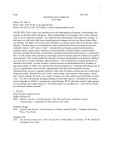 1 Kent Fall 2014 HUMANS AND ANIMALS ANT 390C, Office: CN 106 M Hours: M-F: 9:30-10:30; or, by appointment Phone: 556-2933 or 556-3167 (dept.); e-mail: kentj@msudenver.edu OVERVIEW This course is an introduction to the anthropology of humans’ relationships with animals, in all times and in all places. Those relationships have changed. But, so have humans. And, so have non-human animals. It is likely that the relationships will continue to change. In this class, we will look at the factors underlying such changes and see how these factors affect one another. We begin with a discussion of humans as animals, again both in the present and in the past. We then move to a consideration of how animals have been and are perceived crossculturally, both as “self” and as “other”. Included here are human-animal transformations, animals as prey, origin stories, animals as sacred ancestors, spiritual helpers, animal-related proverbs and other moral tales, and animals as political and commercial resources. Connected to this is a look at how some animals are seemingly useful to humans and how humans are useful to some animals. This would include the concepts of taming, domestication, pet-keeping, Biblical do’s and don’ts, witches' familiars, and food taboos. Also considered are animals perceived or defined as not useful. In some societies, a process known as domestication led to nomadic or agro-pastoralism; in others, the result has been the development of ranching and farming; and, in a few, to agribusiness, factory farms, supermarkets, fast food, and the global economy. Simultaneously, however, animals continue to play roles in human societies that are continuously being reinvented. Included here are "toons", comic strips, team mascots, video games, virtual pets, service animals, fur coats, zoos, nursery rhymes, sex, and vampire and lycan films, to name a few. We also will examine changing attitudes toward some species. Included here are topics such as dog shows, ASPCA, contemporary sport hunting, PETA and other animals rights groups, service animals, and vegan practices. An ultimate topic we can address is: what will our future be, with (and without) animals? 1. TEXTS There are three required texts: Bulliet, Richard W. 2005 Hunters, Herders, and Hamburgers: The Past and Future of Human-Animal Relationships. Columbia University Press, New York. DeMello, Margo 2012 Animals and Society: An Introduction to Human-Animal Studies. Columbia University Press. New York. Shipman, Pat 2011 The Animal Connection: A New Perspective on What Makes Us Human. W.W. Norton & Company, New York. 2 2. OTHER REQUIRED READINGS: The following articles are required (see Schedule section for when each is assigned). They are available by going to the Blackboard page for the course. Bloch, Linda-Renée and Dafna Lemish 1999 Disposable Love: The Rise and Fall of a Virtual Pet. New Media & Society 1(3):283303. Cohen, Joel B. 2000 Playing to Win: Marketing and Public Policy at Odds over Joe Camel. Journal of Public Policy & Marketing, 19 (2): 155-167. Dobney, K. and Greger Larson 2006 Genetics and animal domestication: new windows on an elusive process. Journal of Zoology 269: 261 – 271. Driscoll, Carlos A., David W. Macdonald, and Stephen J. O’Brien 2009 From wild animals to domestic pets, an evolutionary view of domestication. Proceedings of the National Academy of Sciences, 106 ( suppl. 1): 9971–9978. Evans, Erin 2010 Constitutional Inclusion of Animal Rights in Germany and Switzerland: How Did Animal Protection Become an Issue of National Importance? Society and Animals 18: 231-250. Franklin, Adrian 1999 Animals and Modern Cultures (chapter 7: “Animals and the Agricultural Industry”, pp. 128 – 144 + bib). Sage Publications, Ltd., London. Foltz, Richard 2010 Zoroastrian Attitudes Towards Animals. Society and Animals 18: 367 – 378. Kent, Jonathan D. 1987 The Most Ancient South: a Review of the Domestication of the Andean Camelids. In Studies in the Neolithic and Urban Revolutions, edited by Linda Manzanilla, pp. 169-184. BAR International Series No. 349. Oxford, England. Larsen, Clark Spencer 2003 Animal Source Foods and Human Health during Evolution. Journal of Nutrition 133 (supplement 1): 3893S–3897S. Neal, Arthur G. 1985 Animism and Totemism in Popular Culture. Journal of Popular Culture 19 (2): 15-23. Phillips, Barbara J. 3 1996 Advertising and the Cultural Meaning of Animals. Advances in Consumer Research 23: 354- 360. Savage-Rumbaugh, Sue, Kanzi Wamba, Panbanisha Wamba & Nyota Wamba 2007 Welfare of Apes in Captive Environments: Comments On, and By, a Specific Group of Apes. Journal of Applied Animal Welfare Science 10 (1): 7 – 19. Serpell, James A. 1995 From Paragon to Pariah: Some Reflections on Human Attitudes to Dogs. In The Domestic Dog: its Evolution, Behavior, and Interactions with People, edited by James Serpell, pp. 245 – 256. Cambridge University Press, England. _____ 2002 Guardian Spirits or Demonic Pets: the Concept of the Witch’s Familiar in Early Modern England, 1530 – 1712. In The Animal/Human Boundary: Historical Perspectives, edited by Angela N.H. Creager and William Chester Jordan, pp. 157 – 190. University of Rochester Press. Sutton, Mark Q. 1988 Insects as Food: Aboriginal Entomophagy in the Great Basin (Chapters 1 and 2, pp. 1-22 + bib). Ballena Press Anthropological Papers No. 33 (Series editor Thomas C. Blackburn). Ballena Press, Menlo Park, CA. GRADES: The student's grade will be based on: a. internet research assignments and write-ups (2 @ 50 pts each) = 100 points b. presentation (50 pts) = 50 points c. midterm and final exams (60 pts each) = 120 points d. participation = 20 points TOTAL 290 points The following point totals and percentages will be used at the end of the semester to determine the student's letter grade: A = 243 or more points -- 90-100% B = 216 – 242.5 " -- 80-89% C = 189 – 215.5 " -- 70-79% D = 162 – 188.5 " -- 60-69% F = less than 150 po