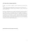 Native spider silk as a biological optical fiber N. Huby1, V. Vié1, A. Renault1, S. Beaufils1, T. Lefèvre2,F. Paquet-Mercier2, M. Pézolet2 and B. Bêche1 1 Institute of Physics of Rennes UMR CNRS 6251, 263 avenue Général Leclerc, Rennes, France Centre de Recherche sur les Matériaux Avancés, Département de Chimie, Université Laval, Québec, Canada G1V 0A6 2 In this study we demonstrate the use of eco-friendly native spider silk as an efficient optical fiber in air, in highly bent fibers and in physiological liquid. We also integrated the silk filament in a photonic chip made of polymer microstructures fabricated by UV lithography. The molding process is non-destructive for silk and leads to an efficient micro-optical coupling between silk and synthetic optical structures. This optical performances, combined with the unique biocompatibility, bioresorbability, flexibility and tensile strength of silk filaments paves the way for new applications in biological media and for original biophotonic purposes. Keywords: biopolymer, optical fiber, integrated optics, spider silk. 1 The development of optical fiber technology has increased the demand for new biological devices where light plays the role of sensor, actuator or laser beam carrier 1,2,3. Implanted sensors are currently scarce, due to the challenges of miniaturization and biocompatibility. However, many examples of biological materials in nature show optimized structures and properties that are superior to synthetic materials4,5. Silk fibers produced by worms and spiders are among the most interesting materials for medical applications and for the development of new materials. They have a high degree of biocompatibility6 and they are bioresorbable, ecologically friendly, and offer excellent mechanical properties7,8,9. Native silk fibers are used in textiles and surgical procedures but not yet in photonics. Despite higher optical losses in plastic than in glass fiber, light weight, fracture tolerance and pliability are keys parameters explaining the interest in plastic fibers and their commercialization. Besides all these properties available for data transmission over short distances, fiber connections10 and sensing applications11, natural silk fiber combines unique advantages: it can be directly harvested from spiders or can potentially be obtained from renewable resources and in mild conditions (aqueous solvent, room temperature and moderate pressure), it exhibits a combination of strength and extensibility superior to any industrial material, and the natural production process leads to a diameter of 5 microns homogeneous over long distances. This is much thinner than conventional fibers, which creates a significant interest for minimally invasive medical applications involving light transmission, imaging or sensing in biological environments. Regenerated silkworm silk has been intensively studied and already applied in several fields12,13. Recent decades have seen the appearance of regenerated Bombyx mori silk-based devices14,15,16,17, as either free-standing macroscopic elements such as lenses or microstructures patterned by thin-film processes18,19,20. In this letter, we demonstrate the efficient optical fiber behavior of pristine dragline silk from the spider Nephila clavipes. Spider silk was chosen because it has superior mechanical properties and homogeneity to any other natural and synthetic silk fibers21. By manipulating the silk fibers in air, the attenuation coefficient of the straight fiber was estimated about 10.5 dB/cm. Light propagation in a silk loop was also validated. Then, optical propagation was proved in silk fibers immersed in physiological liquid, confirming the potential and promising use in biological media. Finally, we demonstrated the integration of the pristine silk fiber into photonic chips and working optical hybrid devices containing synthetic polymers (photoresist) and natural silk fibers. The investigation of the light propagation ability has been performed on a micro-optical bench (Fig. 1). Thanks to their long length, we developed a protocol to manipulate the silk fibers. The silk spinning process leads to fibers 5 µm in diameter over centimeters in length with a neat, smooth homogeneous surface as confirmed by Scanning Electron Microscopy (SEM) images (Fig. 1a). Sparse droplets visible on the silk fiber may be due to the presence of lipids, which can be removed 2 by immersion in an organic solvent22. During light propagation, these non-uniformities may be responsible for diffusion spots, although their influence is minimized by their presence only on one side of the fiber. Figure 1. Set-up for light injection and detection in pristine spider silk fibers. a) SEM image of 5 µm diameter silk fiber. b) Top view of a micro-beam profile of a silk fiber during light injection. c) Top view imaging by a CCD camera of the microlensed fiber for light injection in silk. Major ampullate (dragline) silk fibers from the orb-weaving spider Nephila clavipes came from adult female individuals collected in Florida and raised in the laboratory at 60% relative humidity and 24°C. The spiders were fed small crickets four times a week and 3 drops of 10% w/v glucose solution per week. The pristine silk fibers were forcibly reeled around test tubes from awake spiders at a linear speed of 1 cm/s. Without any particular treatment, silk fibers were positioned on an SiO2 substrate, chosen to ensure the light confinement required for total internal reflection necessary for light propagation in optical fiber. The refractive index of this dragline spider silk was previously determined to be about n1=1.5023, conferring a refractive index difference of n=0.05 with the lower SiO2 cladding layer and n=0.5 with the upper air layer (n2=1). Due to the dimension of the fiber, air acts as the main cladding layer since the contact area between SiO2 and silk is small. The modal behavior of an optical fiber can be anticipated with the