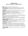 Paws’n Train Rules and regulations for Doggie Daycare AGE: All dogs must be 4 months of age or older SEX: All dogs over the age of 7 months must be spayed or neutered VACCINATIONS: All dogs must have current vaccinations (Distemper, Parvovirus,). Owners are required to provide proof of current vaccinations. PARASITES: all dogs must be on flea/lice/tick preventative from March to September. All dogs must be free from parasites. HEALTH: All dogs must be in good health and must not have been ill with a communicable condition within the last 30 days. BEHAVIOR: All dogs must be non-aggressive and not food or toy protective. FEES: As of Nov. 1, 2011. Full day is $20 Per day. Half day is $12 Per day. 5 day pkg is $85. 20 day pkg is $300. A 2nd dog is ½ price. Packages will expire if the dog doesn’t attend for 12 months. HOURS: Monday through Friday from 7:00 a.m.- 5:30 p.m. All dogs are expected to be picked up on time. There will be a late pick up charge fee of $5 For every extra 15 minutes. RESERVATIONS: Required, 12 hours notice of dog coming to daycare. CANCELLATIONS: 12 Hour notice of cancellation is required. Less than 12 hour notice will be charged 50% of the fees. NO SHOWS: If a reservation was made and no cancellation notice given you will be charged full fees. DISCIPLINE: if a dog is bullying, barking excessively, mounting other dogs, peeing in the building, etc. we will try to distract the dog with verbal commands and if that does not work, the dog will be kenneled for a short time out. We like all dogs to be comfortable in our building and if a dog is barking excessively is can stress other dogs, not to mention what it does to our ears! CRATE TRAINED: all dogs coming to daycare must be crate or kennel trained. 1 Things to Watch for in a New Daycare Dog Sore Pads Running amok may be rough on your dog’s feet, and they may get sore and abraded pads. This will go away as their pads get thicker and used to running on different surfaces. Sore Muscles Your dog will be having so much fun playing at Doggie Daycare, that they may forget to pace themselves and get sore muscles. Over time this will fade as you see them get stronger and more in shape. Exhausted The new social interaction your dog will encounter while being at Doggie Daycare will be both physically and mentally exhausting. Expect your dog to need a lot of rest when they get home. Enthusiasm Your dog’s enthusiasm to enter the group will grow as they get more used to being at Doggie Daycare. Eventually they will be just as excited to get to Daycare as they are when you pick the up at night. Working on keeping them calm when entering and exiting Doggie Daycare is important to prevent fights between excited dogs. Wet Coat Your dog’s coat may be wet when you pick them up during the summer – on hot summer days they may have been lounging in the pool. Not to worry, the water is changed frequently to keep them clean and healthy. Happy Dog Their tail will be wagging and you may even see a smile on their face. It’s their way of saying “THANKS” for bringing them to Doggie Daycare. 2 Kennel Cough also known as - Canine infectious tracheobronchitis & Canine Cough Canine infectious tracheobronchitis (kennel cough) is one of the most prevalent infectious diseases in dogs. Fortunately, the majority of cases are not serious resolving on their own in 1 to 2 weeks . The main cause of kennel cough is the airborne bacteria, Bordetella bronchiseptica. Typically, more than one of these pathogens (disease-causing agents) must bombard the dog at once to trigger illness. Kennel Cough can be also be caused by a number of viruses. Clinical cases of Kennel Cough are usually caused by several infectious agents working together to damage and irritate the lining of the dog's trachea and upper bronchi. The damage to the tracheal lining is fairly superficial, but exposes nerve endings that become irritated simply by the passage of air over the damaged tracheal lining. Once the organisms are eliminated the tracheal lining will heal rapidly. A dog with Kennel Cough will develop a coarse, dry, hacking cough about five to ten days after being infected. It sounds as if the dog needs to "clear it's throat" and the cough will be triggered by any extra activity, drinking water, exposed to change of temperature or exercise. Many dogs that acquire Kennel Cough will cough every few minutes, all day long. They will wretch and sometimes vomit a white foamy looking matter. Their general state of health and alertness are usually not affected, they usually have no rise in temperature, and do not loose their appetite. Some dogs also develop conjunctivitis (inflammation of the membrane lining the eyelids), rhinitis (inflammation of the nasal mucous membrane), and a nasal discharge. The signs of Canine Cough usually will last from 7 to 21 days and can be very annoying for the dog and the dog's owners. If you suspect your dog has kennel cough, isolate your dog and visit your veterinarian for medical advice. It is always a good idea, though, to have any dog examined if coughing is noticed because some very serious respiratory diseases and even cardiac disease might display similar sounding coughing. Your veterinarian, through a careful physical exam and questioning regarding the dog's recent environment, will be able to establish if the dog's respiratory signs are from kennel Cough or some other respiratory insult. First and foremost, isolate your dog. Do not take your dog to public places in order to prevent the spread of infection. If your dog has recently been to dog school, boarding or any other place where your dog was exposed to other dogs, notify the correct individuals to advise that your dog is coughing. Call your veterinarian and schedule an examination. When you arrive at the Animal Hospital, keep your dog in your vehicle until the Doctor is ready to see you. At the end of your examination, take your dog directly to your vehicle and return to the clinic 