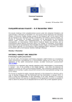 EUROPEAN COMMISSION MEMO Brussels, 29 November 2013 Competitiveness Council – 2-3 December 2013 The second meeting of the Competitiveness Council under the Lithuanian Presidency will meet formally in Brussels on December 2-3. The Council will be chaired by the Lithuanian Minister of Economy, Evaldas Gustas, except for the Research part of the Council which will be chaired by the Lithuanian Minister of Education and Science, Dainius Pavalkis. On Monday 2nd December, the European Commission will be represented by Vice-President Antonio Tajani (Industry and Entrepreneurship), by Vice-President Joaquin Almunia (Competition), by Commissioner Michel Barnier (Internal Market and Services) and by Commissioner Neven Mimica (Consumer Policy). On Tuesday 3rd December, the European Commission will be represented by Vice-President Antonio Tajani, by Vice-President Neelie Kroes (Digital Agenda), by Commissioner Máire Geoghegan-Quinn (Research, Innovation and Science) and by Commissioner Günther Oettinger (Energy). Monday, 2 December INTERNAL MARKET AND INDUSTRY E-invoicing in public procurement On 26 June 2013, the European Commission proposed a draft directive on e-invoicing in public procurement, accompanied by a communication setting out its vision for the full digitisation of the public procurement process, so-called 'end-to-end e-procurement' (IP/13/608). E-invoicing is an important step towards paperless public administration (e-government) in Europe – one of the priorities of the Digital Agenda - and offers the potential for significant economic as well as environmental benefits. The Commission estimates that the adoption of e-invoicing in public procurement across the EU could generate savings of up to €2.3 billion. The Council is expected to adopt a General Approach on the proposal for a Directive with a view to starting trilogues with the Parliament and the Commission in January 2014. In order to allow the stakeholders to take advantage of the many benefits of e-invoicing, Commission Barnier will urge the co-legislators to find agreement as quickly as possible in order to allow the Directive to be adopted before the end of the current legislative period. MEMO/13/1071 More information: http://ec.europa.eu/internal_market/publicprocurement/e-procurement/e-invoicing/index_en.htm Revision of the European Trademark system On 27 March 2013, the European Commission presented a package of initiatives to make trade mark registration systems all over the European Union cheaper, quicker, more reliable and predictable (IP/13/287). The proposed reform will, if adopted, improve conditions for businesses to innovate and to benefit from more effective trade mark protection against counterfeits, including fake goods in transit through the EU's territory. The Council Working Group has been examining the Commission proposals and while Member States have largely welcomed the objectives of the reform, technical discussions are complex and are not finished yet. The Council is expected to take note of a Presidency report on the progress of discussions on the file. Commissioner Barnier will welcome this report as important progress, but at the same time urge the Council to make every effort to conclude this important reform under the current legislature. More information: http://ec.europa.eu/internal_market/indprop/tm/ Policy debate on contribution to the European Semester and upcoming European Council meetings The Commission will present the Annual Growth Survey and its annual Report on Single Market Integration. The Annual Growth Survey launches the 2014 European Semester for economic policy coordination, which ensures that Member States align their budgetary and economic policies with the Stability and Growth Pact and the Europe 2020 Strategy. The key message of the Annual Growth Survey 2014 is the importance of strengthening the recovery that is already underway. The second annual Report on Single Market Integration assesses the functioning of key single market sectors across Member States and on that basis identifies policy priorities for national reforms. The key sectors covered by the Report are: services, financial services, energy, transport, digital single market. In particular, Ministers will discuss how to foster industrial competitiveness in Europe and potential areas of closer coordination of economic policies, including monitoring of progress in the structural reforms which have the most prominent positive effects on competitiveness. The European Council on industrial competitiveness in February 2014 will provide a unique opportunity to define the course for re-industrialising Europe at the highest political level. The Competitiveness Council is expected to send a strong message to the European Council by adopting three sets of Council conclusions on European Industrial Policy, Internal Market Policy and on Smart Regulation. More information: http://ec.europa.eu/europe2020/making-it-happen/ http://ec.europa.eu/enterprise/policies/industrial-competitiveness/index_en.htm 2 Defence For the EU's Common Security and Defence policy (CSDP) to be credible, Europe needs a strong defence industrial and technological base. To achieve this objective, it is crucial to develop a European Defence Industrial Policy. The defence industry is not only of strategic importance for Europe’s security, it also plays a crucial role in the wider European economy. Its cutting-edge research has created important indirect effects in other sectors, such as electronics, space and civil aviation and provides growth and thousands of highly skilled jobs. To maintain a competitive industry capable of producing at affordable prices the capabilities we need, it is essential to strengthen the internal market for defence and security and to create conditions which enable European companies to operate freely in all Member States. In July, the Commission adopted a Communication to promote the competitiveness and efficiency of the 