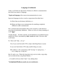 Language (Continued) Today, we’ll finish our discussion of barriers to effective communication that result from nature of language. *Equivocal language often causes miscommunication to occur. Equivocal language involves words or expressions that either have: (A) More than one dictionary definition, or… (B) Mean one thing to one communicator & something completely different to other communicator. We’ve already discussed problems that can be caused by words that have more than one dictionary definition…When we went over many meanings of word “bent.” Usually though… fact that word has several definitions not problem because usually the word is surrounded by other words that make it obvious what word means. Ex. Take word “ship…s-h-i-p.” Now if you were born after 1970, a ship is that thing floats on ocean. If you were born before 1970, ship could be thing on ocean… Or could be a verb, synonymous with “leaving” or “going away…” …As in “Shape up, or ship out.” But if I said to you, “When the long shore men went on strike, cargo ships were not allowed into Long Beach Harbor…” …It would be obvious which “ship” I was talking about *So Equivocal Words are usually not very troublesome… But equivocal expressions…Or expressions that mean one thing to one person and something completely different to another person… …Are more likely to cause communication problems. Text gives interesting example of this when it mentions expressions that women use when they don’t want a physical interaction to go any further. According to study in book, when women mean “NO,” they say things like: “I’m confused about this…” Or “I’m not sure we’re ready for this yet…” Or “Are you sure you want to do this…” Or even “That tickles…” Interesting part of study was that men who were exposed to these messages said that if they were in situation where women said: “I’m confused,” or “that tickles…” They would not automatically take such expression as meaning “STOP” or “NO.” On other hand, women who read or heard the expressions viewed them as equivalent to saying “NO.” So, remember that indirect or equivocal statements can often be ambiguous… Never assume other person knows what you mean in important situation! And when in doubt, use the most direct statement possible. Relative words can also get you into trouble. *Relative words gain their meaning by comparison. We know something is warm, for instance, because it isn’t cool. We know something is expensive by comparing it to something cheap. We know someone’s attractive by comparing him/her to someone who isn’t. The problem, as you already know, is that there is no set standard for “warmth,” “expensiveness,” or “attractiveness.” Ex. You might be visiting friend in Chicago and ask: “Is it warm or cold this time of year…” Friend says… “You know, its been pretty warm, actually” But “warm” to your friend in Chicago means anything above 50 degrees! Or take “Attractiveness.” Guys, have you ever had a friend tell you, “Dude, I met this hot chick…” …And when you meet her… *Bottom line is, when it matters, don’t use relative language! Ex. If you’re giving someone directions to your house…don’t say… “Turn left at second major street,” say “Turn left at Chapman or Nutwood.” And, of course, when someone gives you relative information about something important, make sure they clarify exactly what they mean. Also, be careful about using slang words… …Particularly in professional situations or in situations where other person isn’t familiar with your particular slang words. “Slang” is language used by the members of a particular subculture or group. When we think of slang, we usually think of particular groups people like teenagers or gangs, but slang is often regional as well. In other words, each area of the country has its own expressions and sayings that are unique to that part of the United States. There are two problems with slang: First, it can make you look childish in professional situations: So if you grew up at beach, leave the “Dude,” “Bro,” in back of your monster truck… If you grew up inland…leave the What up playa,” or “I’m chillin” in the back of your lowered Honda. Second problem w/slang is it can exclude people. *So if you’re in situation where you’re doing your best to make somebody new feel welcome… …If you and your friends use slang expressions… you might alienate person you’re trying to befriend. Jargon, is specialized or technical language of a particular group. Doctors have their own jargon… Lawyers have their own jargon… Engineers have their own jargon… Computer geeks have their own jargon… Jocks have their own jargon…And so on. Jargon can be good or bad when it comes to communication. Jargon can be good if makes you look like expert. Ex. Research has shown that if a receiver views the jargon used by sender As a “communication relevant distraction…” …jargon can make sender more persuasive. Ex. If you take you’re car to mechanic… …he starts spewing mechanical jargon at you… …you don’t know what the hell he’s saying… …but if he seems sincere and “looks honest,” …you might be impressed by the jargon, even if you couldn’t understand it. So because jargon can make you look like an expert…Sometimes using it is a good idea. However, be careful: If receiver thinks you’re using Jargon to appear smarter than them or to avoid being honest with them, using jargon can decrease persuasivness. Obviously, in friendships and other interpersonal relationships… …Using jargon can make you seem like an arrogant bastard. So avoid jargon usage in intimate relationships. And finally, we must be careful to avoid using overly abstract language. Obviously, any person, place, thing or idea can be described with varying spec