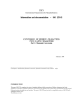 ISO International Organization for Standardization Information and documentation – ISO 259-3 CONVERSION OF HEBREW CHARACTERS INTO LATIN CHARACTERS Part 3: Phonemic Conversion February, 1999 _____________________________________________________________________ Descriptors: transliteration, phonemic conversion, phonemic (structural) script, Hebrew script INTRODUCTION This part of ISO 259 completes the series of standards dealing with the conversion of Hebrew characters into Latin characters. It provides a complete solution for conversion of non-pointed script, which can be reconstructed into the original Hebrew characters by both man and machine. This part of ISO 259 may be used in a simplified version, as ISO 259 has a simplified version: 259-2. The difference is that: (a) with some limitations, a cluster of two identical consonants (4.2) may be written in the simplified version by one character. (b) Some on-phonemic vowels (4.3), which are not written in the main version, may be introduced. For details, see section 5. The main version of this part of ISO 259 (not simplified) is also in compliance with pointed Hebrew script, which may also be reconstructed from the converted text by either a man or a machine. Moreover, pointed Hebrew texts may be reconstructed from the converted texts according to this part of ISO 259 (main version) even when the conversion stems from non-pointed Hebrew texts. Conversion of pointed Hebrew script according to this part of ISO 259 can be performed automatically by either a man or a machine. No profound knowledge of the language is needed. For reliable conversion of non-pointed Hebrew texts, the user should be somewhat acquainted with the Hebrew language, or be able at least to use a Hebrew dictionary and a grammar manual. However, the non-pointed scripts is the method mostly used in modern Hebrew, while pointed script serves mainly for poetry, prayer-books and children’s literature. Some exceptions where the non-pointed script is used may be found even in these areas. Non-pointed script lacks essential ingredients of the word. Most vowels are not written, gemination of consonants is written with one character and small particles are attached to the subsequent word, with no blank space between them. Mechanical transliteration of the characters in non-pointed script into Latin characters does not help a reader who does not know Hebrew and is a heavye burden on a reader who does know it. The conversion system of this part of ISO 259 is seemingly based on the transliteration approach (see documents ISO 2592:1994(E), clause 2.2 or ISO 250:1984(E) clause 0.2.1.2). But it is not a transfer of the given signs in the pointed Hebrew script to signs in Latin characters nor of the signs in the non-pointed script. The basis for conversion according to this part of ISO 259 is the structure of the Hebrew word and not the method in which it is written in one of the Hebrew script systems, nor the manner in which it is pronounced. The conversion of this part is a phonemic conversion. Therefore, even though this part of ISO 259 provides a solution mainly for conversion of non-pointed script, it can be adapted to all the types of Hebrew script: pointed, quasi-pointed and non-pointed script. 2 Figure 1 shows the connections between a word and its written forms. The present approach (259-3) can be seen as a circumvention of the tedious problems which stem from the various realisations of the language in the various methods of writing. ISO 259-3 phonemic script Structure of the word Tiberian pointed Palestinian pointed Babylonian pointed The word as we hear it (different pronunciations) Tanscription, tourist lexicons (diverse methods according to dialect and/or pronunciation of reader’s language) The pointed Script system Hebrew in Latin characters transliteration (259, 259-2) The non-pointed Script system conversion of letters Figure 1 – The Hebrew word and its script systems This part of ISO 259 aims at achieving the following goals: (1) To obtain true representation of every structural element, either a consonant or a vowel; (2) To present clear and easy rules for writing; (3) To enable simple re-conversion to both pointed and not-pointed versions of original Hebrew script. By using the conversion system described in this part of ISO 259, not only a non pointed Hebrew text can be perfectly constructed by a person or a computer, but also a pointed Hebrew text (even if it was not pointed in its original form) 3 1 SCOPE This part of ISO 259 may be used by anyone who has to write Hebrew words in Latin characters, for example in electronic mail and telegrams, and especially for catalogue files of libraries, geographic maps, indices and various types of books. Some knowledge of Hebrew, or ability to use a Hebrew dictionary and a grammar manual, may facilitate the conversion. 2. NORMATIVE REFERENCES ISO 259:1984(E): Documentation – Transliteration of Hebrew Characters in Latin characters. ISO 259-2:1994(E): Information and documentation – Transliteration of Hebrew characters into Latin characters, Part 2 : Simplified transliteration. ISO 10646-1: 1993(E): Information technology – Universal Multiple-Octet Coded Character Set (UCS) – Part 1: Architecture and Basic Multilingual Plane. 4 3 DEFINITIONS AND TABLES OF CONVERSION 3.1 Consonants: Each one of the signs in the left column, in Table 1 below, with the corresponding Latin character alongside it. Table 1 (The short identifier of each character, derived from ISO 10646-1 appears in parenthesis, next to the character) I Hebrew Char. (identifier from ISO 106-46) II Latin char. (identifier from ISO 106-46) ( א05D0) ` (02BE) ’ (02C0) b (0062) ( ב05D1) ( ּב05D1+05BC) III Notes (on pointing etc.) or I Hebrew Char. (identifier from ISO 106-46) II Latin char. (identifier from ISO 106-46) ( ן05DF) ( נ05E0) n (006E) ( ס05E1) s (0073) III Notes (on pointing etc.) (1) ( ג05D2) ( ּג05D2+05BC) (ד05D3) ( ּד05D2+05BC) 