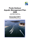 Poole Harbour Aquatic Management Plan 2006 Coordinated and written by Project Officer, William Drake Amended 2011 Luke Bennett, Borough of Poole Produced by the Poole Harbour Steering Group Dorset County Council Environment Agency Borough of Poole Natural England Poole Harbour Commissioners Purbeck District Council Southern Sea Fisheries District Committee Wessex Water Services Ltd Acknowledgements The preparation of this Aquatic Management Plan was overseen by the Poole Harbour Steering Group; their support and constructive comments have been invaluable. Considerable thanks go to Mr Richard Appleton who, as Chairman, oversaw the process and to Miss Sally Porter, Poole Harbour Commissioners’ Environmental Adviser for her help and guidance. The Poole Harbour Commissioners are also acknowledged for providing the meeting venues and administration support and the Borough of Poole are thanked for providing cartographic assistance. Photographs courtesy of Borough of Poole, Kevin Cook, Kitchenham Ltd and Wessex Archaeology The financial assistance of the following organisations is also recognised: Dorset County Council Borough of Poole Natural England Environment Agency Poole Harbour Commissioners Purbeck District Council Southern Sea Fisheries District Committee The Crown Estate Wessex Water Services Ltd 1 Page issue V2, Feb 2011 Issue Control This Management Plan will be updated to reflect changing conditions, management and information known about the Harbour. To ensure the content of this document remains up-to-date additional pages will be produced as required. Amendments will be issued as complete page(s) and will include the date and amendment number on each page. Amendment /Revision Number Date Description Pages Affected 1 Feb 2011 Section 1.1 updated legislation p. 9 2 Feb 2011 Objective 4 updated p. 9 3 Feb 2011 Section 3.1 updated legislation p. 11 4 Feb 2011 Section 5.2 Poole Core Strategy reference p. 15 5 Feb 2011 Sections 5.6 and 5.7 updated legislation p. 18 – 20 6 Feb 2011 Section 5.8.4 Includes monitoring strategy p. 21 – 22 7 Feb 2011 Section 5.8.5 Bird Sensitive Areas p. 22 8 Feb 2011 Section 5.9 Controlled grazing conservation benefits p. 23 9 Feb 2011 Figure 2 updated Bird Sensitive Areas p. 24 10 Feb 2011 New Section 5.15 Lagoon habitat and threats p. 28 11 Feb 2011 New Section 5.16 EMS risk review reference p. 28 12 Feb 2011 Chapter 7 Managing the Shoreline rewritten p. 34 – 37 13 Feb 2011 Section 8.2.1 Fishery within the Harbour updated p. 39 14 Feb 2011 Section 9.5.1 updated legislation p. 45 15 Feb 2011 Section 9.5.2 Sediment Management Plan dredging p. 45 16 Feb 2011 Sections 11.1.1/2/3 updated p. 55 – 56 17 Feb 2011 Section 12.4 Poole Core Strategy reference p. 58 18 Feb 2011 Section 14.2 Swash Channel Wreck rewritten p. 62 19 Feb 2011 Management Matrix rewritten p. 64 – 78 20 Feb 2011 Updated legislation Appendix 1 21 Feb 2011 Updated Environment Agency Information Appendix 2 22 Feb 2011 Updated Relevant National Body (MMO was MCEU) Appendix 2 23 Feb 2011 Updated charts Appendix 5 24 Feb 2011 Poole Harbour Monitoring Strategy added Appendix 10 25 Feb 2011 New Matrix Lead Authority Websites Appendix 12 26 Feb 2011 Draft Site Plan for the Poole Harbour EMS Appendix 13 Page issue V2, Feb 2011 2 Authorised By: Contents Acknowledgements ........................................................................................................... 1 Issue Control ...................................................................................................................... 2 Contents ............................................................................................................................. 3 Executive Summary ........................................................................................................... 5 Section 1 Base Document ..................................................................... 9 Chapter 1 Introduction ............................................................................................. 10 1.1 1.2 The Poole Harbour Aquatic Management Plan ................................................................................. 10 Mission Statement .............................................................................................................................. 10 Chapter 2 Background ............................................................................................. 11 Chapter 3 Management Framework ........................................................................ 12 3.1 3.2 3.3 Management Structure for the Poole Harbour Aquatic Management Plan ....................................... 12 Background Documents & Plans ....................................................................................................... 12 Plan Revision / Review ...................................................................................................................... 13 Chapter 4 Guiding Principles .................................................................................. 14 Chapter 5 Nature Conservation and Landscape.................................................... 16 5.1 5.2 5.3 5.4 5.5 5.6 5.7 5.8 5.9 5.10 5.11 5.12 5.13 5.14 Overview ............................................................................................................................................ 16 Local Plans and Policies .................................................................................................................... 16 Site of Special Scientific Interest, (SSSI) ........................................................................................... 18 Ramsar site ........................................................................................................................................ 18 Special Protection Area, (SPA) .......................................................................................................... 18 Management of SPAs and Ramsar s