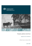 TRADE ADVICE NOTICE Apiguard Gel for Beehives APVMA Product Number 65570 JULY 2015 © Australian Pesticides and Veterinary Medicines Authority 2015 ISSN ISBN 2200-3894 (electronic) 978-1-922188-91-5 (electronic) Ownership of intellectual property rights in this publication Unless otherwise noted, copyright (and any other intellectual property rights, if any) in this publication is owned by the Australian Pesticides and Veterinary Medicines Authority (APVMA). Creative Commons licence With the exception of the Coat of Arms and other elements specifically identified, this publication is licensed under a Creative Commons Attribution 3.0 Australia Licence. This is a standard form agreement that allows you to copy, distribute, transmit and adapt this publication provided that you attribute the work. A summary of the licence terms is available from www.creativecommons.org/licenses/by/3.0/au/deed.en. The full licence terms are available from www.creativecommons.org/licenses/by/3.0/au/legalcode. The APVMA’s preference is that you attribute this publication (and any approved material sourced from it) using the following wording: Source: Licensed from the Australian Pesticides and Veterinary Medicines Authority (APVMA) under a Creative Commons Attribution 3.0 Australia Licence. In referencing this document the Australian Pesticides and Veterinary Medicines Authority should be cited as the author, publisher and copyright owner. Use of the Coat of Arms The terms under which the Coat of Arms can be used are set out on the Department of the Prime Minister and Cabinet website (see www.dpmc.gov.au/pmc/publication/commonwealth-coat-arms-information-and-guidelines). Disclaimer The material in or linking from this report may contain the views or recommendations of third parties. Third party material does not necessarily reflect the views of the APVMA, or indicate a commitment to a particular course of action. There may be links in this document that will transfer you to external websites. The APVMA does not have responsibility for these websites, nor does linking to or from this document constitute any form of endorsement. The APVMA is not responsible for any errors, omissions or matters of interpretation in any third-party information contained within this document. Comments and enquiries regarding copyright: Director Public Affairs and Communication Australian Pesticides and Veterinary Medicines Authority PO Box 6182 KINGSTON ACT 2604 Australia Telephone: +61 2 6210 4701 Email: communications@apvma.gov.au This publication is available from the APVMA website: www.apvma.gov.au. CONTENTS iii CONTENTS PREFACE IV About this document iv Making a submission iv Further information v 1 INTRODUCTION 1 2 RESIDUES 2 2.1 Proposed Australian use pattern 2 2.2 Thymol residues in honey and comb honey 2 3 RESIDUES-RELATED ASPECTS OF TRADE 5 3.1 Potential risk to trade 5 3.2 Trade advice statement 5 4 CONCLUSIONS 6 LIST OF TABLES Table 1: Proposed use pattern for Apiguard Gel for Beehives 2 iv TRADE ADVICE NOTICE – APIGUARD GEL FOR BEEHIVES PREFACE The Australian Pesticides and Veterinary Medicines Authority (APVMA) is an independent statutory authority with responsibility for assessing and approving agricultural and veterinary chemical products prior to their sale and use in Australia. In undertaking this task, the APVMA works in close cooperation with advisory agencies, including the Department of Health, Office of Chemical Safety, Department of the Environment, and State Departments of Primary Industry. The APVMA has a policy of encouraging openness and transparency in its activities and of seeking stakeholder involvement in decision making. Part of that process is the publication of Trade Advice Notices for changes to the MRL Standard where there may be trade implications. The information and technical data considered by the APVMA to assess the safety of new chemical products and the methods of assessment must be undertaken according to accepted scientific principles. Further details can be found on the APVMA website: http://www.apvma.gov.au About this document This is a Trade Advice Notice. It indicates that the Australian Pesticides and Veterinary Medicines Authority (APVMA) is considering an application to register a new veterinary chemical product. It provides a summary of the residues and trade assessment. Comment is sought from industry groups and stakeholders on the information contained within this document. Making a submission The APVMA invites any person to submit a relevant written submission as to whether the application to provide a “shelf” registration for Apiguard Gel for Beehives should be granted. Submissions should relate only to matters that the APVMA is required by legislation to take into account in deciding whether to grant the application. These grounds relate to the trade implications of the use of the product. Submissions should state the grounds on which they are based. Comments received outside these grounds cannot be considered by the APVMA. Submissions must be received by the APVMA by close of business on Tuesday 11 August 2015 and be directed to the contact listed below. All submissions to the APVMA will be acknowledged in writing via email or by post. Relevant comments will be taken into account by the APVMA in deciding whether to grant the application and in determining appropriate conditions of registration and product labelling. PREFACE When making a submission please include: Contact name Company or Group name (if relevant) Postal Address Email Address (if available) The date you made the submission. All personal and confidential commercial information (CCI)1 material contained in submissions will be treated confidentially. Written submissions on the APVMA’s proposal to grant the application for registration that relate to the grounds for registration should be addressed in writing to: Australian Pesticides and Veterinary Medicines Authority PO Box 6182 Symonston ACT 2609 Ph