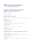 Historic Preservation Program Weekly E-mail Newsletter March 26, 2011 Announcements Upcoming Inquiry: HP lectures: Memory, Urbanization, and Preservation: The Once and Future New York Randall Mason Wednesday March 30, 6:30pm Avery Hall, Room 114 Columbia University Preservation, Cultural Heritage and the Third World Jyoti Hosagrahar Wednesday April 6, 6:30pm Location TBD Local or Global? The Politics of Preservation Ned Kaufman Tuesday April 19, 6:00pm Buell East Gallery Columbia University Additional lectures on international preservation in April: Thursday, April 7 Cultural Heritage: Roots and Rights Carsten Paludan-Muller, Director of the Norwegian Institute for Cultural Heritage 200 Fayerweather Hall, 6:30 pm Friday, April 8 How Heritage is being used to mediate social conflict across Europe 1 Carsten Paludan-Muller, Director of the Norwegian Institute for Cultural Heritage Note: Held at the Pratt Institute, 144 West 14th Street, New York, Room 213; Reception at 5:30 pm, lecture at 6 Learning from Texas: The Power of Oral Histories Tuesday, April 5, 2011, 6:30 p.m. Join the New York Preservation Archive Project and the New York Restoration Project in an evening that looks outside our own backyard with an exploration of the inspirational Texas Legacy Project. Beyond its Longhorns, oil, and barbeque, Texas has a rich yet little known history of environmental activism. In a vast series of over 200 videotaped oral histories, this project by the Conservation History Association of Texas has chronicled the inspiring stories of Texans who felt compelled to preserve and protect their rich natural legacy. These grassroots conservationists range from humble farmers to environmental attorneys, many of whom risked their reputations, their finances, and even their lives in their quests. Through the personal stories and unique voices of these dedicated Texans, an array of conservation battles come to life on video, all of which have been archived online (www.texaslegacy.org) alongside audio, text and various other supplemental materials. In conjunction with this archive's creation, a book entitled The Texas Legacy Project: Stories of Courage and Conservation, was published featuring excerpts from over 60 of these oral histories. David Weisman, documentary filmmaker and co-editor of The Texas Legacy Project: Stories of Courage and Conservation, will join us in a discussion of this fascinating undertaking, including the project's genesis, the role and use of oral histories and the importance of archiving our preservation battles. Joining Mr. Weisman in conversation will be Anthony C. Wood, preservation activist, author, and founder of the New York Preservation Archive Project. Could this project be a model to document the history of grassroots preservation and environmental activism in New York City? The histories of both New York's historic preservation movement and the conservation movement are in danger of being lost. Don't miss this opportunity to learn valuable lessons from such an inspirational project! Come join us and learn from Texas! 2 This event will take place at: World Monuments Fund Empire State Building 350 Fifth Avenue, Suite 2412 New York, NY 10118 Admission is $5 (payable by PayPal or at the door) and free for Friends of NYPAP, Friends of NYRP and students. Because of strict security at the Empire State Building, RESERVATIONS ARE REQUIRED and identification must be presented at the security desk; only those that RSVP will be able to attend. To RSVP call 212-988-8379 or email mcoody@nypap.org. Conferences and Symposia March 31-April 1, 2011 The American Historic Cements Conference March 31 - April 1, 2011 American Museum of Natural History, New York, New York Hosted by the Society for the Preservation of Historic Cements and co-sponsored by the National Park Service, the Historic Preservation Training Center and APT Northeast Chapter. Day One will be at the American Museum of Natural History and Day Two on Roosevelt Island and Governor’s Island. General Registration: $256 ($155 for a single day) Student Registration: $77 ($57 for a single day) Registration includes lunch. If you have any questions, please contact Michael Edison at: sphc2011@ gmail.com For a detailed schedule and to register, please go the following conference link. April 13-17, 2011 Registration for SAH Annual Meeting in New Orleans is Now Open 3 Register for the 64th Annual Meeting of the Society of Architectural Historians in New Orleans, April 13-17, 2011. A full brochure detailing the meeting is available on the meeting homepage. This online-only program provides up to date information about scheduled events, paper sessions and tours, as well as links to all paper abstracts. For the first time, abstracts may be viewed online for free Calls for Papers April 29, 2011 The Social Life of Port Architecture: History, Politics, Commerce and Culture The architecture of port cities is entangled in the social, political, economic and cultural histories of these places. Historically, major architectural projects afforded the commissioning merchant class the capacity to materialize their status in prominent urban spaces in a way which embedded trade and commerce in a set of broader civilizational values. Architecture was one of the key sites for referencing the cultures of other places with historicist styles, civilizational discourses, 'exotic' motifs and - crucially - representations of the local. Architecture also housed the social interactions crucial for knitting together trading networks within and beyond the city, while the configuration of internal building spaces revealed assumptions about the ordering of wider social relationships and hierarchies. Architecture provides a lens through which to study the economic, political and cultural practices of port-cities. How did the social practices and values (whether religious or secular) crucial for assembling trading networks shape the architecture of port-cities? Whic