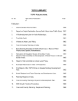 TCPO LIBRARY TCPO Publications. Sl. No. Title of the Publication of Year Publication 1. Interim General Plan for Delhi. 1956 2. Report on Origin-Destination Survey-Delhi Urban Area Traffic Study 1957 3. A Redevelopment plan for Kotla Mobarakpur. 1959 4. The Ninth Delhi. 1961 5. A Note on Urban Land Policy 1962 6. Town & Country Planning in India. 1962 7. Manufacturing Industries in Delhi Urban Area: A Study of Their Physical and Spatial Characteristics. 1963 8. 9. Relocation of Slaughter Houses & Ancillary Trade. 1964 Report of the Committee on Development of Small Towns in Hill and Border Areas. 1965 10. Report of the Committee on Urban Land Policy. 1965 11. Municipal Revenues in India: A Prospective. 1965 12. First Report of the TCPO Panel on Greater Bombay Development Plan. 1965 13. Model Regional and Town Planning and Development Law. 1966 14. Planning Regions in India. 1968 15. Town & Country Planning: City and its Development Plan. 1968 16. NCR Growth Trends of Industries. 1968 17. Town and Country Planning: People and Planning. 1968 18. NCR Plan Study – Growth Patterns of Public Sector Offices in Delhi and its Environs. 1969 19. Land Values in Delhi. 1970 20. South East Resource Region Development Plan. 1970 21. Visakhapatnam Steel City Plan. 1970 22. National Capital Region Plan. 1971 23. South East Resource Region Plan: Development Plan – First Report 1971 24. South East Resource Region: Report on Industrial Development. 25. South East Resource Region: Report on Social Services and Welfare Including Tribal Welfare. 1971 26. Seminar on Development of Connaught Circus: Working Paper. 1971 27. Krishna-Tungabhadra Resource Region: A Factual Summary. 1971 28. South East Resource Region: Report on Iron and Steel Industry. 1972 29. Planning Parameters Connaught Place. CBD. 1972 30. Demographic Trends and Holding Capacity Delhi, 1981. 1972 31. Industrial Development Data Source & Sweep. 1972 32. Manual for Preparation of Town & Regional Planning Maps. 1972 33. Metropolitan City Centre of Delhi: Report and Recommendations. 1972 34. Development Plan for Agra-Bharatpur-Morena: A Sub Region of Chambal Region. 1972 Guide to Survey of Industrial Establishments for the Preparation of Development Plans. 1972 Guide to Preliminary Planning Survey for Small & Medium Size Towns. 1972 37. Guide to Demographic Survey for Regional and Urban Planning. 1972 38. National Capital Region - Cropping Pattern: Linear Programming. 1973 35. 36. 1971 South East Resource Region – Report on Rural and Urban Settlements. 1973 40. South East Resource Region Plan. Vol. I. 1973 41. Redevelopment Proposals Hailey Road Area Report. 1973 42. Industrial Development Potential Survey of Selected Cities in India. 1973 43. Structural Plan for Shimla Urban Area. 1973 44. South East Resource Region – Report on Economic Development. 1973 45. South East Resource Region – Report on Forest Development. 1973 46. South East Resource Region – Report on Mining and Minerals. 1973 47. Jhuggi-Jhonpari Settlements in Delhi (Pt. II). 1973 48. Guide to analyzing Industrial Development in Connection with Regional Planning. 1973 49. Guide – Land Use Classification for Planning Purposes. 1973 50. Delhi Urban Area Mass Rapid Transit System: Land Use of Traffic Studies MRTS Network and Traffic. 1973 51. Redevelopment Proposals DIZ Zone Sector I & II. 1974 52. Dandkaranya Development Plan: Area Plan for Malkangiri SubDivision. 1974 53. Kshetria Saransh Yojana Tatha Vikas Karyakaram (Hindi). 1974 54. Census Abstract on Urbanization 1971. All India States and Union Territories. 1974 55. Seminar on Redevelopment of Shahjahanabad – Working Papers. 1974 56. Redevelopment of Shahjahanabad – The Walled City of Delhi: Resume of Seminar. 1974 Delhi Urban Area Mass Rapid Transit System: Land Use of Traffic Studies DUA-2001, Concept Plan, MRTS Network and traffic. 1974 39. 57. 58. Report on Norms and Space Standards for Planning of Public Sector Project Towns. 1974 National Urbanization Policy: Proceeding of the Meeting of Expert Group on NUP. 1975 60. Redevelopment Proposals DIZ Zones, Sector III, IV, V. 1975 61. Selected Urban Statistics of India. 1975 62. Rajasthan Sub-Regional Plan for National Capital Region. 1975 63. Short Range Programme on Integrated Intra Urban Public Mass Transport Services for Delhi Urban Area. 1975 Physical Environment Structure and Industrial Potential of Public Sector Towns. 1975 65. Towards a Human Settlement Policy in India 2001. 1975 66. Planning Regions of Karnataka: A Scheme of Regionalization for Planning Purposes. 1975 67. Perspective Plan for Dandkaranya Region: Summary. 1975 68. Guide to Classification of Industries on the Basis of Their Sustainability for Different Land Use Zones in Urban Areas. 1975 69. Guide to Survey of Industrial Establishment for the Preparation of Development plans. 1975 Guide to analysis of Industrial Development in the Context of Regional Planning. (Hindi). 1975 Kshetria Niyojan Ke Vishay Me Audhyogic Niyojan Ka Vishletion Karne Ke Marg Darshi Siddhanth. (Hindi) 1975 72 Regional Plan NCR: Summary and Development Programmes. 1975 73. Planning Regions of Bihar. 1975 74. Report of the Task Force on Planning and Development of Small & Medium Towns and Cities. 1975 TCPO Annual Report, 1975-76 1976 59. 64. 70. 71. 75. 76. Delhi Master Plan Mid Term Appraisal Transport Sector. 1976 77. Guide to Demographic Survey for Urban and Regional Planning. 1976 78. Guide to Industrial Zoning. 1976 79. Guide to Industrial Regionalization. 1976 80. Pondicherry Comprehensive Development Plan – Draft. 1976 81. Development Plan for Silvasa, Dadra and Nagar Haveli, UT. 1976 82. Development Plan for Badami. 1976 83. Development Plan for Aihole. 1976 84. Development Plan for Pattadakal. 1976 85. Development Plan for Nalanda. 1976 86. Development Plan for Kushinagar. 1976 87. Development Plan for Konark. 1976 88. Report of the Expert Group on Sarbhang-Geylegphug Area Development and Other Projects. 19