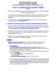 SAN DIEGO MESA COLLEGE SCHOOL OF NATURAL SCIENCES General Biology (BIO107); Instructor: Elmar Schmid, Ph.D. Chapter 14: CAUSES OF EVOLUTIONARY CHANGE - Part II - “The only unchangeable and fixed truth we can relay on is the continued change on planet Earth…” To cope with the ever happening changes and continued transformation of the face of the Earth, all forms of life have to follow these changes by a process called adaptation Today we know, that two major processes account for most of the evolutionary changes observed in living organisms 1. Factors that contribute to genetic change in individual biological organisms due to our modern understanding of molecular genetics and heredity we know that evolutionary change of phenotypic characteristics and development of new species requires change or new assortment of the genetic material the sequence of nucleotides on the DNA molecule has to be changed in order bring out a new gene product, i.e. a protein or enzyme, and (in a long term) to lead to a new phenotype of a species change or new assortment of genetic material (= DNA) within an individual living organism is achieved by two major processes: II.. M Muuttaattiioonn different forms of mutations can occur within the DNA molecule each with different consequences for the targeted cell and the affected organisms a. Point mutation one nucleotide within the DNA molecule is changed (replaced or lost); depending which nucleotide is affected or replaced the resulting protein function can be either left unharmed or is changed point mutations within the DNA can be caused by different means, most of all by so-called mutagens e.g. certain chemicals, such as nitrosamines, benz(a)pyrene, natural or artificial radiation (= radon, UV light, X-ray) usually most of the point mutations either remain “silent” or are discovered by the cell’s endogenous surveillance and repair system (see: Molecular Biology: DNA repair mechanisms) and immediately repaired; but some mutations which change a proteins biological function may escape these surveillance mechanisms and lead to a novel cellular characteristics 1 SAN DIEGO MESA COLLEGE SCHOOL OF NATURAL SCIENCES General Biology (BIO107); Instructor: Elmar Schmid, Ph.D. b. Deletion a short piece of DNA gets lost or becomes actively excised out of the DNA strand mutation by deletion usually has dramatic effects on the resulting protein structure and function; it can leads to proteins with sometimes completely new features DNA deletions are often caused as a consequence of the life cycle of certain viruses which insert into the cellular genome of organisms; many viruses take a piece of host-DNA with them (DNA thieves!) c. Insertion a short piece of DNA integrates into the DNA molecule it usually also leads to a massive stir-up of the flow of the genetic information within a cell many DNA insertions are caused by viruses which integrate into the genetic material of their host cells scientists suspect that several mutation events over long times are necessary to change a genome in a way that its bearer profits from an improved adaptation to its environment or from a more favorable trait (usually asexually reproducing) organisms with very short generation spans can adapt very quickly by means of mutations alone e.g. in prokaryotes, which multiply very fast, a favorable mutation can increase its frequency within the descendant bacterial population in a matter of hours or days moreover, prokaryotes have only one single allele, which means that the altered gene can show its novel effect immediately without being obscured by the compensatory effect of the second (unaffected) allele diploid eukaryotic organisms with their usually long generation times would take long periods of times and multiple DNA events (= mutations) to bring out favorable genetic variation therefore, most genetic variation in higher organisms (= animals and plants) comes from sexual recombination during the so-called crossing over event during the formation of egg and sperm cells (see meiosis!) IIII.. G Geenneettiicc R Reeccoom mbbiinnaattiioonn genetic recombinations are changes of the sequence of chromosomal DNA due to rearrangement of larger stretches of DNA (= chromosomal fragments including thousands of genes) in cells of higher organisms, this can happen by two major cellular processes 1. by crossing over during meiotic cell division in specialized cells, so-called germ cells located in the gonads or reproductive structures 2 SAN DIEGO MESA COLLEGE SCHOOL OF NATURAL SCIENCES General Biology (BIO107); Instructor: Elmar Schmid, Ph.D. 2. by transposons (= movable genetic elements) with the help of special enzymes these so-called translocations (= movement of larger chromosomal fragments) are in most cases harmful to the organisms, but in rare cases they may bring out beneficial new characteristics in the affected individual summarized, mutations and rearrangement of DNA by recombination and/or transposons lead to a tremendous increase in genetic variation and diversity amongst the individuals of a population the huge diversity of the human population is explained by the large genomic material (approx. 40,000 genes and 3 billion base pairs!) and its vast gene pool (approx. 5 billion individuals!) which both contribute to the enormous genetic variety of the species Homo sapiens some of the variations are phenotypic and anatomically visible, e.g. skin color, eye color, hair color, ear lobes, freckles, height, etc., but most of the “hidden diversity” between individuals of a population, such as the ABO blood group, Rhesus factor, blood cell number, etc., can only be detected and studied with the help of sensitive biochemical techniques, such as electrophoresis, singlenucleotide polymorphism, antibodies, PCR, DNA sequencing, etc. gene mutations and recombinations result in new alleles, and are the ultimate source of variation within populations M Muuttaattiioonn R Raattee & &M Miiccrroo--E Evv