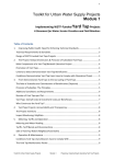 1 Toolkit for Urban Water Supply Projects Module 1 Implementing WSTF-Funded Yard Tap Projects A Document for Water Service Providers and Field Monitors Table of Contents 1. Improving Public Health: Need for Enforcing Technical Standards ................................... 3 Technical Requirements & Standards .................................................................................... 3 Design of WSTF-Funded Yard Taps Projects .......................................................................... 3 2. The Project: Network Extensions & Provision of Subsidized Yard Taps ............................ 4 Main Components of a Yard Tap/Network Extension Project .............................................. 4 Promotion of Yard Taps ......................................................................................................... 4 Criteria to Select Demonstration Yard Tap Beneficiaries ...................................................... 4 Conditions Demonstration Yard Tap Users have to Comply with (Operation Phase) ........... 5 3. From Demonstration Yard Taps to the Up-scaling of Yard Taps ....................................... 5 The Role of Subsidies and Contributions of Beneficiaries (Deposits) .................................... 5 Provision of Subsidies: The Principles .................................................................................... 5 Additional Conditions and Requirements .............................................................................. 6 Number of Yard Taps per Plot................................................................................................ 6 Yard Taps: Overall Costs & Investment Costs per Beneficiary............................................... 7 Who Constructs the Yard Tap? .............................................................................................. 7 4. Yard Taps Projects: Accountability and Transparency ....................................................... 8 The Project Inventory ............................................................................................................ 8 Impact Monitoring: MajiData ................................................................................................ 8 5. Metering, Tariffs and Operation ........................................................................................ 8 Metering and Meter Reading ................................................................................................ 8 Tariffs, Tariff Bands and Disconnections ............................................................................... 8 Sale of Yard Tap Water (Neighbourhood Sales) .................................................................... 8 6. Operation & Maintenance ................................................................................................. 9 Conditions Yard Tap Users/Owners have to Comply With .................................................... 9 The Yard Tap Maintenance Poster......................................................................................... 9 Toolkit for Urban Water Supply Projects Module 1 Preparing, Implementing & Operating Yard Tap Projects 2 7. The (Yard Taps) Project Proposal Submitted by the WSP ................................................. 9 8. Disbursements of Project Funds by the WSTF ................................................................... 9 9. Forms of Support Provided by the WSTF ......................................................................... 10 List of Abbreviations ................................................................................................................ 10 Yard Tap Maintenance Poster.................................................................................................. 11 Improving public health by constructing better yard taps Toolkit for Urban Water Supply Projects Module 1 Preparing, Implementing & Operating Yard Tap Projects 3 1. Improving Public Health: Need for Enforcing Technical Standards Technical Requirements & Standards In many urban low income areas water kiosks are not sustainable as residents have higher expectations and are able and willing to pay for a better service level. A large number of unplanned and planned low income areas are best served through yard taps (see Module 1, Section 4, Document 1). Unfortunately, most of the existing yard taps are poorly constructed and do not provide easy access and the necessary levels of hygiene. Many yard taps are in fact health hazards as their surroundings are dirty and muddy. There is need, therefore, to ensure that all yard taps, constructed within the framework of WSTF-funded projects are metered, are easy to keep clean, user-friendly and well-constructed. The WSTF has developed technical standards for the yard tap. Drawings and bills of quantities (BoQs) were prepared for an insitu yard tap and for a pre-cast yard tap. These standards have been adopted by the sector. Design of WSTF-Funded Yard Taps Projects The following principles, agreements and activities are key elements of a WSTF-funded yard taps project: The WSTF has developed 2 new yard tap designs; one improved insitu yard tap and one improved pre-cast yard tap. These designs have been adopted by the Water Sector as the new technical standard for yard taps. The new standards contribute to improved public health as they prevent contamination of water during fetching. All new yard taps must meet the specifications embedded in the new standard. New yard taps can exceed (be better than) the new technical standard, but not be worse. The Water Service Provider (WSP) should refuse - and has the right to refuse1 - to connect a plot or premises if the landlord or household is unable or unwilling to meet the technical standard for yard taps (see document 2 in this folder). The WSP should only connect a yard if a yard tap has been constructed or installed which meets the requirements of the WSP, the Water 