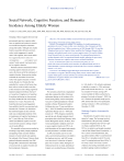 RESEARCH AND PRACTICE Social Network, Cognitive Function, and Dementia Incidence Among Elderly Women | Valerie C. Crooks, DSW, James Lubben, DSW, MPH, Diana B. Petitti, MD, MPH, Deborah Little, MS, and Vicki Chiu, MS Emerging evidence suggests that social supObjectives. We examined whether social networks had a protective association port networks may have a positive influence on cognition and a protective association with the development of dementia among older adults. Although some studies found no association between social networks,1social engagement,2or marital status3,4with cognition, more-recent studies with incidence of dementia among elderly women. Methods. We prospectively studied 2249 members of a health maintenance organization who were 78 years or older, were classified as free of dementia in 2001, and had completed at least 1 follow-up interview in 2002 through 2005. We used the Telephone Interview for Cognitive Status–modified, the Telephone Dementia Questionnaire, and medical record review to assess cognitive status. We used the Lubben Social Network Scale–6 to assess social network. We estimated hazard ratios for incident dementia with Cox proportional hazards models, adjusting for age at entry, education, hormone use, cognitive status scores, and health conditions. have suggested the protective effect of social engagement,5–7 10 social support, social 8,9 contact, social network, and social activities12on cognitive function. Dementia cannot be determined without assessing cognitive function and can be seen as the lowest end of the continuum of cognitive function. Some previous studies examined the association of social networks with cognitive function or with dementia. Bassuk et al.13found, after they controlled for a variety of risk factors, that those with no social ties had a more than 2-times increase in risk of being cognitively impaired compared with those who had 5 or 6 social ties. Fratiglioni et al. found that living alone and having no close personal ties nearly doubled the risk of developing dementia over 3 years.14Saczynski et al. found that decreased social engagement from midlife to late life was associated with dementia risk.15Seeman et al. determined that emotional support at entry into their study was an independent predictor of better maintenance of cognitive functioning at the 7.5-year follow-up.16Each of these studies used different cognitive tests and social network measures, making comparison of results difficult. We expanded on these previous studies by recruiting a large elderly sample population and applying widely used and validated measures of social network and cognition. Our substudy of the Women’s Memory Study gathered information annually from 2001 through 2005 to determine the relationship of social network to cognitive function and the development of dementia. July 2008, Vol 98, No. 7 | Results. We identified 268 incident cases of dementia during follow-up. Com- 11 pared with women with smaller social networks, the adjusted hazard ratio for incident dementia in women with larger social networks was 0.74 (95% confidence interval = 0.57, 0.97). Conclusions. Our findings suggest that larger social networks have a protective influence on cognitive function among elderly women. Future studies should explore which aspects of social networks are associated with dementia risk and maintenance of cognitive health. (Am J Public Health. 2008;98:1221–1227. doi:10.2105/AJPH.2007.115923) METHODS Participants We recruited a cohort from a longitudinal study that examined the effect of hormone replacement therapy on the incidence of dementia among elderly women. Participants were part of a defined population of female members of Kaiser Permanente Southern California who were 75 years and older on July 1, 1998. We identified current hormone replacement therapy users (n = 3058) and nonusers (n = 3958), frequency matched by age and zip code, through computer-stored prescription data in the Kaiser Pharmacy Information Management System. Of these, 3924 women participated in telephone interviews to assess cognitive function in 1999. A detailed description of the original study population and procedures is available elsewhere.17 In 2001, the baseline year for our substudy, social network questions were added to the telephone interview, and 2602 women were interviewed. At that time, all participants were 78 years or older. During the enrollment process for our study, potential participants were excluded because of dementia American Journal of Public Health (n = 64), death (n = 44), refusal to participate or inability to contact (n = 228), and incomplete social network interviews (n = 17). Thus, we excluded 353 women, leaving 2249 women available for follow-up from the beginning of our study on January 1, 2002. Figure 1 illustrates the potential sample pool in 2001 and the final status of our participants, starting on January 1, 2002, and ending on December 31, 2005. Multistage Cognitive Assessment for Dementia Classification of cognitive status was conducted in 3 stages. The first stage involved administration of the previously validated18 23-question Telephone Interview for Cognitive Status–modified (TICS–m). The TICS–m is similar to and strongly correlated with the Mini-Mental Status Examination.19–22 The 12 areas scored included name, date, age, phone number, ability to count backward from 20 to 1, immediate recall of 10 words, serial 7s (counting backward from 100 by 7), the naming of objects and concepts, repetition of phrases, the naming of president and vice president, tapping on phone mouthpiece 5 Crooks et al. | Peer Reviewed | Research and Practice | 1221 RESEARCH AND PRACTICE FIGURE 1—Final dementia status of a cohort of women 78 years and older followed in 2001–2005. times, naming opposites of common words, and delayed recall of 10 words (maximum score = 50 points). The psychometric properties of the computerized TICS–m in this