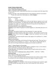 Grade 7 Science Study Guide Unit 1 Interactions and Ecosystems Topic 1- Interactions Within Ecosystems There is a growing need to understand more about our environment and what impacts that we have on it. Ecology: the study of the relationship between living organisms and their environment. People who study these relationships are called ecologists. What all living things need: -food -water -habitat -air (gas exchange) Adaptation: Is an inherited characteristic or behavior that helps an organism survive and reproduce in its environment. Ex. Birds bones are hollow which makes them able to fly. Ecosystem: the complex set of interactions between living and non-living things in a particular environment. Ex. A rotting log Interactions Between Living Things in an Ecosystem Symbiosis: occurs when two species live closely together in a relationship that lasts over time. Three Types: Mutualism: each partner benefits form the relationship. Ex remora and shark Parasitism: one partner benefits and the other is harmed. The benefactor is known as the parasite and the victim is known as the host. Ex tapeworm, mosquito, leech (or you and your parents. Ha) Commensalism: one partner benefits and the other appears to be unaffected. Ex. Orchid plant and tree trunk. Impacts on Ecosystems As mentioned, relationships exist between the living and non-living. These can have a major impact on an environment. Ex. Beaver – water. Beavers (living) build dams to stop water (non-living) dramatically changing the environment around them. Topic 2 – Human Impacts on Ecosystems Human beings also belong to the animal kingdom and happen to have a more dramatic effect on the Earth’s ecosystems than any other animal. Natural Resources: The materials or products that are found in nature and are used to meet our basic needs. *Know Flow Chart on Gathering Food in Alberta (buffalo – small farm – feedlot) Needs and Wants Want: things that make our lives more enjoyable Needs: The lack of something necessary. Ex. Food is a need but having food from distant locations year round is a luxury (want). It is primarily the wants of humans that causes the biggest ecological footprint. Topic 3 – Environmental Choices Ecological Footprint: is a calculation of the total area of land and water needed to supply all of the materials and energy that you use as well as absorb all of the waste you produce. Sustainability: a term describing a system in which the resources of nature are being renewed at least as quickly as they are used, and that all wastes are able to be completely absorbed. Ways to Help the Environment The three R’s Reduce: the amount of garbage you produce Reuse: reuse products rather than throwing them away Recycle: find other ways to make use of products if they cannot be reused. Topic 4 – How Organism Interact Biotic: living parts of the ecosystem. (plants, animals) Abiotic: non-living parts of the ecosystem. (Rocks, wind, sun, water) Niche: the role of an organism in its ecosystem Producers: make food for themselves using photosynthesis. E.g. plants Consumers: eat and consume things made by producers, or other consumers. E.g. humans Herbivores: are animals that eat consumers and fill the plant-eating niche. E.g.. Cows, horses. Carnivores: are animals that eat other consumers and fill the meat-eating niche. E.g.. Wolves, coyotes, sharks Predators: kill and eat other animals ( cougar, etc) Prey: get killed and eaten by predators (mouse, feeder guppies) Omnivores: Eat both producers and consumers (e.g. Raccoon, Skunk, and humans) Food Chain is a model that shows how energy is stored in food passes from organism to organism. (See figure 1.30 in text) Food Webs are even more complex than food chains, they show all of the relationships between predator and prey in an ecosystem (they are a combination of several food chains) Food Chains and Webs show how food energy moves throughout the system but not how many organisms it involves. To solve this, scientists invented the pyramid of numbers, which states how many organisms are involved at each level. Biomass: the total mass of all the organisms in an ecosystem Clean-Up Squads Scavengers: are organisms that feed on dead or decaying plant and animal matter. Decomposers: don’t actually eat dead material, instead they grow on or in dead material, absorbing some nutrients into their own cells. Topic 5 – Cycles in the Environment Evaporation: is the process in which a liquid changes into water vapour. Liquid water evaporates to form invisible water vapour. Transpiration: is the process in which water that is taken in through a plants roots evaporates from the plant’s leaves, stem, and flowers. Condensation: is the process in which water vapour changes into a liquid. Precipitation: is the process in which liquid water forms from condensation occurring inside clouds and then falls as rain, sleet, snow, and hail. Ground Water: is water in the soil. Plant roots can grow down to reach ground water. People can reach ground water by digging wells. Run-off: is water that runs off the ground into lakes, rivers, or streams. Pollution: occurs when a substance is added to the environment at such a fast rate that it cannot be broken down, stored, or recycled in the air, land, or water in a non-damaging form. Acid rain: occurs when pollutants containing sulfur and nitrogen are found in high levels in the air. The Movement of pollution: *Chemicals like DDT and PCB (polychlorinated biphenyl) take a very long time to breakdown in the environment, this causes a great deal of damage plants and animals. Bioaccumulation: When pollutants move from level to level in the food chain. (see figure 1.46) Topic 6 – Succession and Change in Ecosystem Succession: the gradual process by which some species replace others in a ecosystem. Primary Succession: is the gradual growth of organisms in an area that was bare, such as rock. E.g.. Lichens produce acids that breakdown the rocks, then ferns and mo