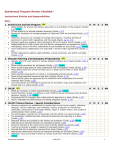 Semiannual Program Review Checklist i Institutional Policies and Responsibilities Date: 1. Animal Care and Use Program A* M S C NA A* M S C NA A* M S C NA Meets as necessary to fulfill responsibilities (Guide, p 25) [must] IACUC Members named in protocols or with conflicts recuse themselves from protocol decisions (Guide, p 26) [must] Continuing IACUC oversight after initial protocol approval is in place (Guide, p 33) IACUC evaluates the effectiveness of training programs (Guide, p 15) 4. IACUC Protocol Review - Special Considerations C NA Disaster plans for each facility to include satellite locations are in place (Guide, p 35, p 75) [must] Plans include provisions for euthanasia (Guide, p 35) [must] Plans include triage plans to meet institutional and investigators’ needs (Guide, p 35) Plans define actions to prevent animal injury or death due to HVAC or other failures (Guide, p 35) Plans describe preservation of critical or irreplaceable animals (Guide, p 35) Plans include essential personnel and their training (Guide, p 35) Animal facility plans are approved by the institution and incorporated into overall response plan (Guide, p 35) Law enforcement and emergency personnel are provided a copy and integration with overall plan is in place (Guide, p 35) 3. IACUC S Responsibility for animal well-being is assumed by all members of the program (Guide, p 1) [must] IO has authority to allocate needed resources (Guide, p 13) Resources necessary to manage program of veterinary care are provided (Guide, p 14) [must] Sufficient resources are available to manage the program, including training of personnel in accord with regulations and the Guide (Guide, pp 11, 15) Program needs are regularly communicated to IO by AV and/or IACUC (Guide, p 13) Responsibilities for daily animal care and facility management are assigned to specific individual(s) when a full-time veterinarian is not available on site (Guide, p 14) [must] Inter-institutional collaborations are described in formal written agreements (Guide, p 15) Written agreements address responsibilities, animal ownership, and IACUC oversight (Guide, p 15) 2. Disaster Planning and Emergency Preparedness A* M Humane endpoints are established for studies that involve tumor models, infectious diseases, vaccine challenge, pain modeling, trauma, production of monoclonal antibodies, assessment of toxicologic effects, organ or system failure, and models of cardiovascular shock (Guide, p 27) For pilot studies, a system to communicate with the IACUC is in place (Guide, p 28) For genetically modified animals, enhanced monitoring and reporting is in place (Guide, p 28) Restraint devices are justified in the animal use protocols (Guide, p 29) [must] Alternatives to physical restraint are considered (Guide, p 29) Period of restraint is the minimum to meet scientific objectives (Guide, p 29) Training of animals to adapt to restraint is provided (Guide, p 29) Animals that fail to adapt are removed from study (Guide, p 29) Appropriate observation intervals of restrained animals are provided (Guide, p 29) Veterinary care is provided if lesions or illness result from restraint (Guide, p 30) [must] Semiannual Checklist v3/8/2012 1 Explanations of purpose and duration of restraint are provided to study personnel (Guide, p 30) Multiple surgical procedures on a single animal are justified and outcomes evaluated (Guide, p 30) Major versus minor surgical procedures are evaluated on a case-by-case basis (Guide, p 30) Multiple survival procedure justifications in non-regulated species conform to regulated species standards (Guide, p 30) Animals on food/fluid restriction are monitored to ensure nutritional needs are met (Guide, p 31) Body weights for food/fluid restricted animals are recorded at least weekly (Guide, p 31) Daily written records are maintained for food/fluid restricted animals (Guide, p 31) Pharmaceutical grade chemicals are used , when available, for animal-related procedures (Guide, p 31) Non-pharmaceutical grade chemicals are described, justified, and approved by IACUC (Guide, p 31) Investigators conducting field studies know zoonotic diseases, safety issues, laws and regulations applicable in study area (Guide, p 32) Disposition plans are considered for species removed from the wild (Guide, p 32) Toe-clipping only used when no alternative, performed aseptically and with pain relief (Guide, p 75) 5. IACUC Membership and Functions C NA A* M S C NA A* M S C NA All o o o IACUC members should receive: Formal orientation to institution’s program (Guide, p 17) Training on legislation, regulations, guidelines, and policies (Guide, p 17) Training on how to inspect facilities and labs where animal use or housing occurs (Guide, p 17) o Training on how to review protocols as well as evaluate the program (Guide, p 17) o Ongoing training/education (Guide, p 17) 7. IACUC Records and Reporting Requirementsvi S IACUC is comprised of at least 5 members, appointed by CEO (PHS Policy, IV.A.3.) Members include a veterinarian, a scientist, a nonscientist, and a nonaffiliated non-lab animal user (Guide, p 24)ii IACUC authority and resources for oversight and evaluation of institution's program are provided (Guide, p 14) IACUC conducts semiannual evaluations of institutional animal care and use program (PHS Policy, IV.B.) Conducts semiannual inspections of institutional animal facilities (PHS Policy, IV.B.) IACUC organizationally reports to the Institutional Official (PHS Policy, IV.A.1.b.) Methods for reporting and investigating animal welfare concerns are in place (Guide, p 23) [must] Reviews and investigates concerns about animal care and use at institutioniii (PHS Policy, IV.B.) Procedures are in place for review, approval, and suspension of animal activities iv (PHS Policy, IV.B.) Procedures are in place for review and approval of significant changes to approved activities (PHS Policy, IV.B.) Policies are in place for special procedures (e.g., genetically modified animal