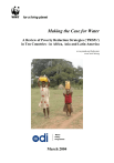 Making the Case for Water A Review of Poverty Reduction Strategies (‘PRSPs’) in Ten Countries - in Africa, Asia and Latin America www.panda.org/freshwater www.wwf-uk.org Water Policy Programme March 2004 2 ACKNOWLEDGEMENTS This is a Report of the review of ‘Water & PRSPs’ (Poverty Reduction Strategy Papers) which was commissioned by the WWF Global Freshwater Programme and carried out by Peter Newborne of the Overseas Development Institute-ODI’s Water Policy Programme between October 2003 and February 2004. It forms part of the research project on Water, Poverty and Development initiated by WWF. For inputs to this document, including during the discussions leading up to it, thanks to Jamie Pittock and John Barker of the WWF Global Freshwater Programme, Hervé Lefeuvre of the WWF European Policy Office, Belinda Calaguas of WaterAid and the other participants at the Workshop held at ODI on 19th January, 2004, as well as to ODI colleagues, particularly Tom Slaymaker and Marialivia Iotti of the Water Policy Programme, as well as Zaza Curran of the Poverty and Public Policy Group (PPPG) on behalf of the PRSP Monitoring and Synthesis project. CONTENTS I. INTRODUCTION .............................................................................................................. 4 II. INTERNATIONAL CONTEXT ....................................................................................... 9 III. THE PRSP “CYCLE”; PROGRESS IN PRODUCTION OF PRSPS ....................... 10 IV. NATIONAL CONTEXTS................................................................................................ 12 V. KEY PRSP ELEMENTS: Managing Resources for Poverty Reduction .................... 14 VI. STATUS OF INCORPORATION OF WATER IN SELECTED PRSPS .................. 16 VII. INTRA- AND INTER-SECTORAL COORDINATION ............................................. 23 VIII. MAKING THE CASE FOR WATER .......................................................................... 25 APPENDIX 1. HOW IS WATER INCORPORATED IN THE PRSPS? - the Status in each of the Ten selected Countries ......................................................................................... 27 Appendix 2. Positioning of Water Objectives in the Selected PRSPs ................................ 51 Appendix 3. Targeting of Water Interventions: Status under the Selected PRSPs .......... 52 Appendix 4. Budget Cycle: the theory; Linking Policy, Planning and Budgetting .......... 53 Appendix 5. List of References .............................................................................................. 55 3 EXECUTIVE SUMMARY This is the report of the review, based on desk study and some existing research in-country, of the status of water issues under Poverty Reduction Strategy Papers (PRSPs) from three continents Africa, Asia and Latin America - relating to ten countries, selected for the wide range of their human development rankings and differing national contexts. National and international efforts at addressing poverty reduction in low income countries are focused on the process of preparation and implementation of PRSPs. An estimated US Dollars 25.1 billion (at net present value) has been committed in debt relief under the Highly Indebted Poor (“HIPC”) Countries initiative, as well as ongoing donor support. Poverty is exacerbated by poor water management. An estimated 1.5 billion people worldwide are currently without sustainable access to safe drinking water, and 1.87 billion without basic sanitation. Intensifying competition for water resources in many regions is increasing problems of water scarcity and “stress”, threatening supply for both household use and productive activities. Issues of water supply and sanitation, and water resource management, are inter-related; if water-related poverty is to be effectively reduced, objectives relating to both must find their place within PRSPs. The findings of this review are, however, that water issues have to-date been inadequately and inconsistently incorporated in PRSPs - including articulation of the links between water supply & sanitation and water resources management, as well as - also importantly - in budgetary processes. This means that that there are, at least currently, limited prospects under PRSPs for effective action to address water management challenges - key issues such as how to target and deliver new water facilities to the “unserved”, how to protect poor communities from vulnerability to shocks (such as drought or flood), how to overcome information and capacity constraints relating to measurement and monitoring of rates of depletion (and pollution) of ground and surface waters, and how to make best use of available resources (financial, natural and other) so as to combine economic growth and social protection. Above all, an effort of coordination is required to respond to these challenges. Governments, supported by donors and civil society, need to engage actively in processes of review and reform of the water sector which bring together stakeholders around themes which are of relevance and interest to all, and which overcome the habitual preoccupations and divisions of existing “sub-sectors”. Once water objectives are planned in a concerted manner, and donor support better aligned with those plans, the sector will be mobilised to “make the case for water” to colleagues in ministries of finance and other departments, including voicing strongly how water investments, executed as integrated programmes, can contribute to poverty reduction and stimulation of economic growth. 4 I. INTRODUCTION This is the report of the review of the status of incorporation of water issues under Poverty Reduction Strategy Papers (PRSPs) in ten developing countries from three continents - see Box 1.:- Box 1. AFRICA Niger Zambia Tanzania Uganda Kenya Madagascar Countries covered in this Review ASIA Pakistan Vietnam LATIN AMERICA Nicaragua Mexico (South) The relevance of 