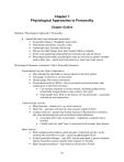 Chapter 7 Physiological Approaches to Personality Chapter Outline Sheldon’s Physiological Approach to Personality Argued that body type determines personality Ectomorph (skinny): Thoughtful, introverted Mesomorph (muscular): Assertive, bold Endomorph (fat): Sociable, fun-loving Did not use blind ratings, most later research failed to replicate Some work suggesting relationship between body type and job choice Physiological personality psychologists today do not focus on global variables such as body type—much more fine-tuned (e.g., heart rate, brain waves) Physiological Measures Commonly Used in Personality Research Electrodermal Activity (Skin Conductance) Most obtained by electrodes or sensors placed on the skin surface Advantage: Noninvasive, no discomfort Disadvantage: Movement constrained Electrodermal activity (EDA)—due to increased sweat with arousal, skin conductance of electricity increases Can measure responses to various stimuli, including sudden noises, emotionally charged pictures, pain, anxiety, fear, guilt Some people show EDA in the absence of external stimuli—associated with anxiety and neuroticism Cardiovascular Activity Blood pressure—measure of, e.g., stress reactivity Heart rate—increases with anxiety, fear, arousal, cognitive effort Cardiac reactivity—greater than normal increase in blood pressure and heart rate when performing task such as backward serial subtraction Associated with Type A personality—impatience, competitiveness, hostility Cardiac reactivity (and Type A) associated with coronary heart disease Brain Activity Brain spontaneously produces small amounts of electrical activity; can be measured by electrodes on scalp—electroencephalograph (EEG) Evoked potential technique—uses EEG, but the participant is given a stimulus and the researcher assesses specific brain response to stimulus Brain imaging techniques—map structure and function of brain 95 Positron emission tomography (PET) Functional magnetic resonance imaging (fMRI) Other Measures: Biochemical analyses of blood and saliva Physiologically Based Dimensions of Personality Extraversion–Introversion Measured by Eysenck Personality Questionnaire (EPQ) High extraversion: Talkative, outgoing, likes meeting new people and going to new places, active, sometimes impulsive, bored easily, hates routine Low extraversion: Quiet, withdrawn, prefers being alone or with a few friends to large crowds, prefers routines and schedules, prefers familiar to unexpected Eysenck’s theory Introverts have a higher level than extraverts of activity in the brain’s ascending reticular activating system (ARAS) People strive to keep ARAS activity at optimal level—introverts work to decrease it and avoid stimulation; extraverts work to increase it and seek out stimulation Research indicates that introverts and extraverts are NOT at different resting levels, but introverts ARE more reactive to moderate levels of stimulation than extraverts This work led Eysenck to revise his theory—the difference between introverts and extraverts lies in arousability, not in baseline arousal When given a choice, extraverts prefer higher levels of stimulation than introverts Geen (1984): Introverts and extraverts choose different levels of stimulation, but equivalent in arousal under chosen stimulation Introverts and extraverts perform task best under their chosen stimulation level, poor when performing under a stimulation level chosen by other group Sensitivity to Reward and Punishment Personality based on two hypothesized brain systems Behavioral Activation System (BAS): Responsive to incentives (cues to reward) and regulates approach behavior Behavioral Inhibition System (BIS): Responsive to cues to punishment, frustration, uncertainty, and motivates ceasing, inhibiting, or avoidance behavior Active BIS produces anxiety, active BAS produces impulsivity Integration with Eysenck’s model: Impulsive = high extraversion, moderate neuroticism; Anxious = moderate introversion, high neuroticism According to Gray, impulsive people do not learn well from punishment because of weak BIS; learn better from reward—supported by research 96 Sensation Seeking Tendency to seek out thrilling, exciting activities, take risks, avoid boredom Early sensory deprivation research Hebb’s theory of optimal level of arousal Zuckerman: High sensation seekers are less tolerant of sensory deprivation; require much stimulation to get to optimal level of arousal Zuckerman’s Sensation Seeking Scale Moderate positive correlation between extraversion and sensation seeking Physiological basis for sensation seeking Neurotransmitters—chemicals in nerve cells are responsible for the transmission of nerve impulse from one cell to another Monoamine Oxidase (MAO)—enzyme that maintains a proper level of neurotransmitters Too little MAO = too much neurotransmitter; too much MAO = too little neurotransmitter High sensation seekers have low levels of MAO, producing a need for stimulation to reach the optimal level of arousal Neurotransmitters and Personality Dopamine—associated with pleasure Serotonin—associated with depression and other mood disorders Norepinepherine—associated with fight or flight response Cloninger’s Tridimensional Personality model Novelty seeking—low levels of dopamine Harm avoidance—low levels of serotonin Reward dependence—low levels of norephinepherine Morningness–Eveningness Being a “morning-type” or “evening-type” of person is a stable characteristic Due to differences in underlying biological rhythms Many biological processes fluctuate around a 24–25 hour cycle—circadian rhythm; e.g., body temperature, endocrine secretion rates But wide individual differences are in the circadian rhythm, identified through temporal isolation studies Individuals with shorter circadian rhythms hit peak body temperature and alertness earlier in day, get sleepy earlier, than individuals with longer rhythm Individual