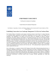 UNDP PROJECT DOCUMENT The Royal Government of Cambodia United Nations Development Programme The Ministry of Agriculture, Forestry and Fisheries, Ministry of Environment and Provincial Authority of Preh Vihear Province Establishing Conservation Areas Landscape Management (CALM) in the Northern Plains The Northern Plains of Cambodia are the largest remaining extensive intact block of a unique landscape of exceptional global importance for biodiversity conservation. The area is either a last refuge for, or maintains a key population of 36 species on the IUCN Red List, including six listed as Critically Endangered. The project addresses the problem of escalating biodiversity loss across the Northern Plains, caused by increasing human land and resource use. This is achieved through a seven-year, three-pronged approach: (1) the introduction of biodiversity considerations into provincial level land use processes; (2) the demonstration of specific mainstreaming interventions at four key sites (including community landuse tenure, community contracts and incentives for biodiversity supportive land-use practices, as well as work to mainstream biodiversity into the forestry and tourism productive sectors); and (3) strengthen biodiversity management by government at the four key sites. The Landscape Species Approach has been used to identify the four sites. The CALM project is consistent with the GEF Strategic Priority BD-2 (Mainstreaming Biodiversity in Production Landscapes and Sectors). The project intervention will work to introduce biodiversity values into landscape level land-use planning processes. Implementation will focus particularly on building the capacity of provincial departments and authorities and integrate specific projects initiatives established provincial planning processes (supported through the Seila/PLG Programme).The project will mainstream biodiversity conservation in relevant sectors such as tourism, forestry, agriculture etc within that landscape. 1 Table of Contents SECTION I : ELABORATION OF THE ANALYSIS ............................................................. 5 PART I: SITUATION ANALYSIS ............................................................................................ 6 Background ..........................................................................................................................................................6 Problem to be Addressed .....................................................................................................................................9 Underlying Causes ............................................................................................................................................. 11 Current Situation (Baseline) .............................................................................................................................. 13 PART II: STRATEGY .............................................................................................................. 17 Project Rationale (The Alternative) ................................................................................................................... 17 Relevance to UNDP Outcomes .......................................................................................................................... 23 National Support for the Alternative .................................................................................................................. 23 Project Sustainability, Partnerships and Linkages ............................................................................................ 26 Implementation Strategy .................................................................................................................................... 33 Risks and Risk Management Strategy ................................................................................................................ 34 Result Frameworks ............................................................................................................................................ 45 PART III: MANAGEMENT ARRANGEMENTS ................................................................... 49 Execution............................................................................................................................................................ 49 Implementation (see Annex 7 for Terms of Reference) ...................................................................................... 49 Adaptive management ........................................................................................................................................ 51 Audit ................................................................................................................................................................... 52 PART IV: MONITORING AND EVALUTION PLAN AND BUDGET................................. 54 Conservation Impact Monitoring ....................................................................................................................... 54 Project Inception Phase ..................................................................................................................................... 55 Monitoring responsibilities and events .............................................................................................................. 56 Work plan and Reporting requirements ............................................................................................................. 57 Evaluation .......................................................................................................................................................... 59 Learning and Knowledge Sharing...................................................................................................................... 59 PART V: LEGAL CONTEXT .................................................................................................. 6