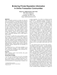 online transaction community, where a system called GossipMonger brokers a trusted exchange of private reputation