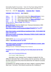 Intermediate English Conversation Notes for Class Topics Spring 2014/2/25 Jessie Ho (To be updated throughout this semester March~June) Feb 2014 Name Lists 各組名單 Spring 2014 Calendar 102-2 English Calendar Citation Machine Time magazine. Daily 1 Ca Midterm Ca Daily 2 Ca Final Ca Debate Abortion Cb Please look for topics from Ideas and Issues or news. Cb Guided Topics Guided Topics 2014/3 More, 5 Cb Please look for topics from Ideas and Issues or news Cb Final Guided Topics 2014/3 More, 5 Roe vs. Wade 羅伊訴韋德案 This link goes to P. 18. Ideas and Issues Advanced, Martin Hunt. Chancerel International, 2000. IEC Notes e-learning Spring 2010 https://www.dropbox.com/sh/mbokziuo0nj6gkh/j7KwEKHT3Y Final PPT https://www.dropbox.com/sh/335mmp1neuf4dmw/xYy6Q_J7Uf?n=82481198 Daily 2 Fall 2013 ppt https://www.dropbox.com/sh/z8ae116hhea2wyr/YEWN-ZYp3S?n=82481198 Mid-term Presentations 英檢評分對照表: http://www.flc.pu.edu.tw/flc/PUFLC-R06.pdf 修課指引: http://web.pu.edu.tw/~pu1420/ https://www.youtube.com/watch?v=pTGjY6wSFwA&feature=youtube_gdata _player#aid=P8HA-WCcDNQ Waking Universe: Vibrational Healing Flower Essences Framework for 21st Century Learning (For the whole picture see the web page) http://www.21stcenturyskillsmn.org/ 21st Century Skills Minnesota Education must change how it prepares students for the different demands that a 21st century service economy will place on them and ensure they have the skills they will need for success. Global Competition Competition for skilled workers at lower wages is growing faster than ever. Formerly Third World countries are investing in infrastructure and education to become competitive giants in the 21st century global economy. http://www.youtube.com/watch?v=HB3felEq3yo&feature=related 全國英語大賽亞軍 China English Speaking Contest of national college students--She rocks http://www.youtube.com/watch?v=BXrVtZu5TGU&feature=related 10:55 Isn’t this too long? The champion of the 2007 CCTV CUP English Speaking Contest 1 http://www.youtube.com/watch?v=gYWCE44Or4o&feature=related If you were the government of the country, how would you solve the water problem? Are people educated overseas entitled to a higher salary? http://www.youtube.com/watch?v=AyzEwXd22hI&feature=related (She never let the debater lead her away. She stayed focused.) What’s more important in a leader –- specialist knowledge or people management skills? http://www.youtube.com/watch?v=9VrQF0mKhBQ&feature=related CCTV-9 English Speech Contest Q: Meeting challenges, pleasure and pain https://sites.google.com/site/2014rctesc/speech-topic 講題 (三選一) Choose one from below :Contestants must deliver a prepared five minute speech in English from one of the following three topics 1.How can we engage in community service, and can it change lives? 2.Life is what you make it. 3.What is beyond the beauty of Taiwan? Successful contestants will advance to the second, semi-final round where they will deliver the same prepared speech. Eight contestants will then progress to the final round. FINAL ROUND SPEECHES Finalists will compete in the third round, where they will be asked to deliver a three minute impromptu speech on a given topic or video. The objective is for students to demonstrate their competency in spoken English and ability to think and respond creatively. Contestants will have up to five minutes to prepare for the impromptu speech. Contestants must prepare their impromptu speech themselves: coaches, relatives or friends must not help contestants prepare for this final round nor should students contact anyone by mobile phones or tablet computers to ask for assistance. maneuver - 演習 何老師,您好 抱歉我還是用中文給您回信了,我看了您的評論,好細致,真的謝謝您,我也看了您最 後留的兩個網址,那個 PDF 文件真的很棒。 您每次都給我們印講義,可以看出來您都很認真的準備每一堂課程,謝謝。其實我一直 有一個疑惑,為什麼大家都是英文系的,上臺演講還要拿稿,我知道我英語不好,發音 不標準,但我會認真準備,我覺得只有我自己滿意自己的報告了,我才有可能打動別人。 我就在想這應該不是英語能力的問題,應該是態度的問題,如果每個人都不嚴格要求自 己,可能英語永遠也不會提高。抱歉,這只是我個人的一些想法,我自己很喜歡您的課 程。 Best wishes, Ice Dear Ice, 沒拿稿是最標準的演講,有 PPT Outline 報告當準則, 才不會離題,我真該嚴格規定不帶稿才對,謝謝你的提醒。 我知道大陸的學生都不帶稿,我們有老師也這樣要求, 因我自己記憶不好,我不這樣要求。在最後提問時, 就真的不用稿子回答了,你們那場內容多,討論時間 不多,否則會多點練習說的機會。 有些時候總統看前面 Monitor 的稿子,因為不犯錯。 有些時候 稿子是在提醒作用,像我記下問題針對 多人時,我就會瞄一下我紙上寫下的問題。 何老師 Which 5 are the most important for you? Fewer hesitations, better pronunciation, less self-correction, better interaction skills, more fixed expressions, fewer errors, more confidence, ability to speak at length, strategies for when you don’t know the right word (Global) http://www.guardian.co.uk/society/2013/may/14/angelina-jolie-mastectomy-b reast-cancer Angelina Jolie's mastectomy account raises awareness of gene testing http://www.sparknotes.com/lit/hours/canalysis.html#Virginia-Woolf Analysis of the Major Characters http://www.bookrags.com/studyguide-the-hours/characters.html Richard Brown the winner of the Carrouthers Prize –Richie an extremely sensitive little boy, Richie realizes, even before his mother realizes, that she intends to commit suicide. http://www.ethesis.net/Dalloway/Dalloway.htm A Thesis “There Are Still the Hours”. Time in Mrs Dalloway and The Hours. (Marlies de Vos) My thesis would be about literature and adaptation 